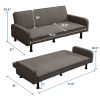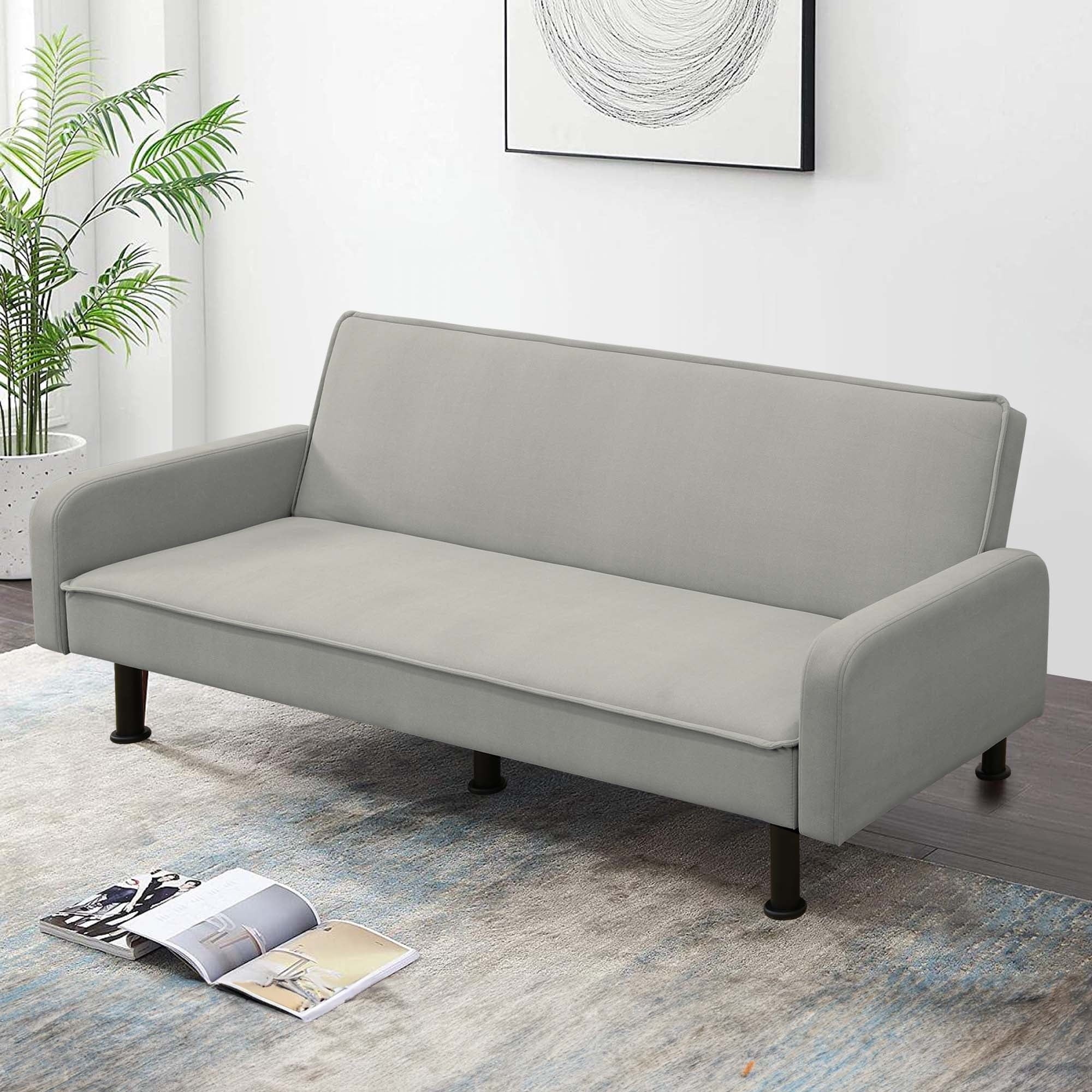 Home Futon Frames & Sets Aukfa 78″ Square Arm Futon Sofa Bed Upholstered 3 Seat Couch for Home Office, Flannel, Light Gray