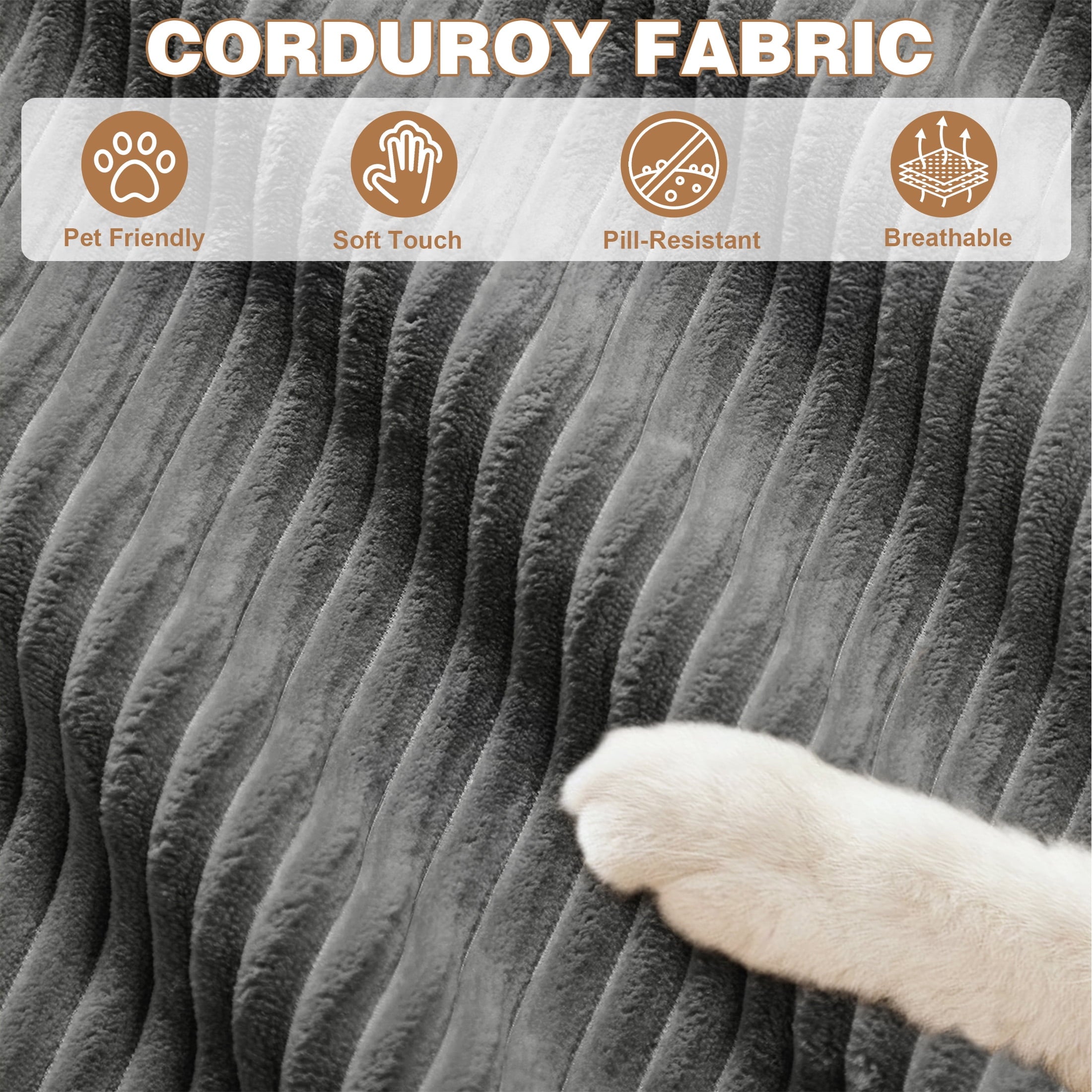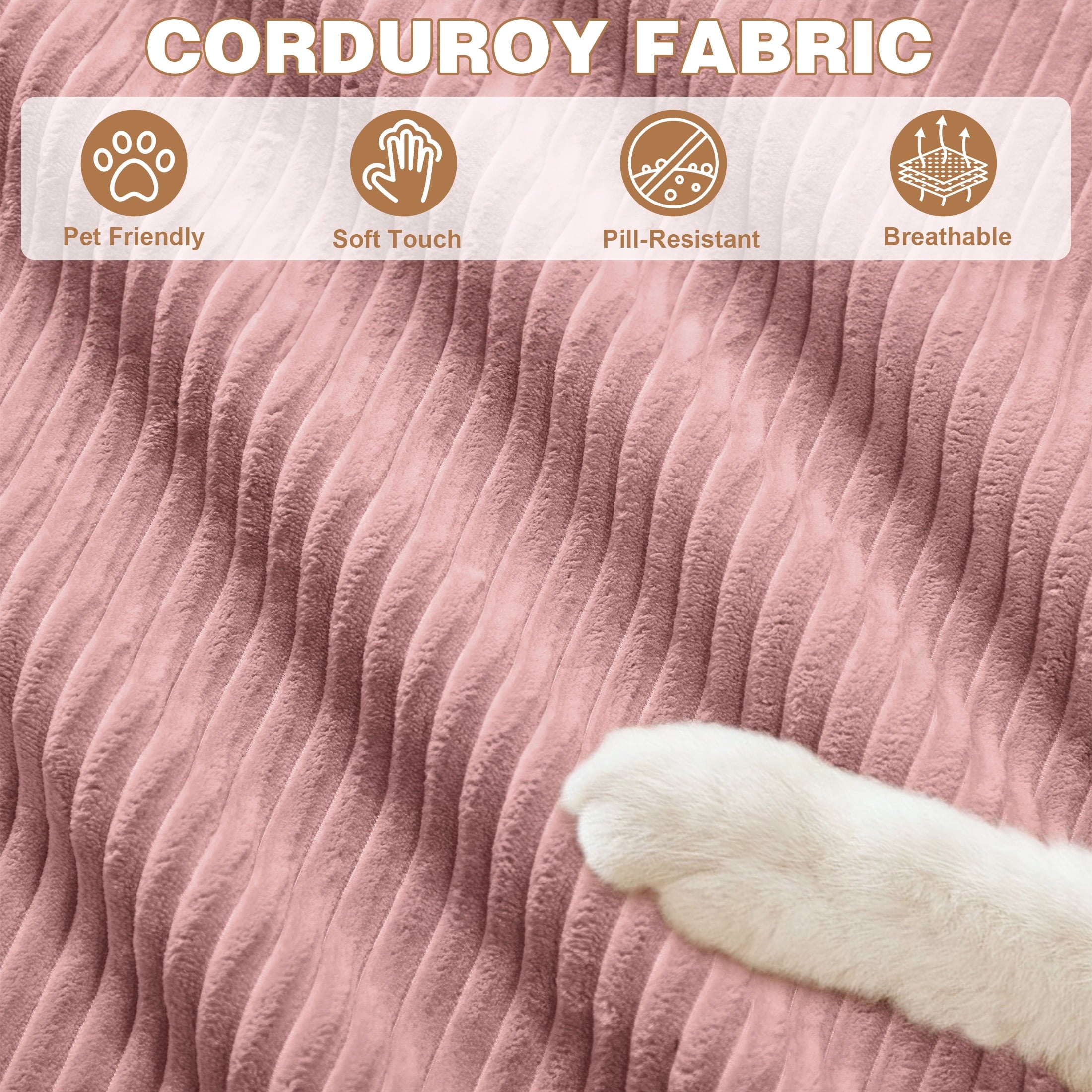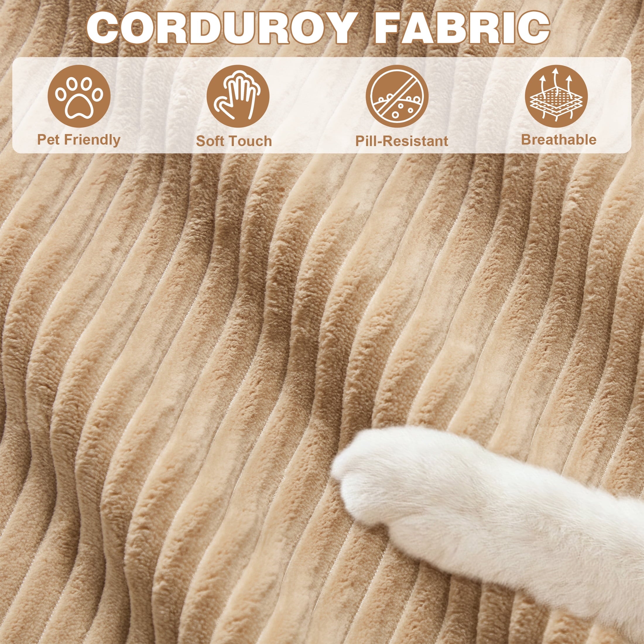 ✅ Durable Corduroy — Soft ribbed fabric resists pet claws, stains, and wear.