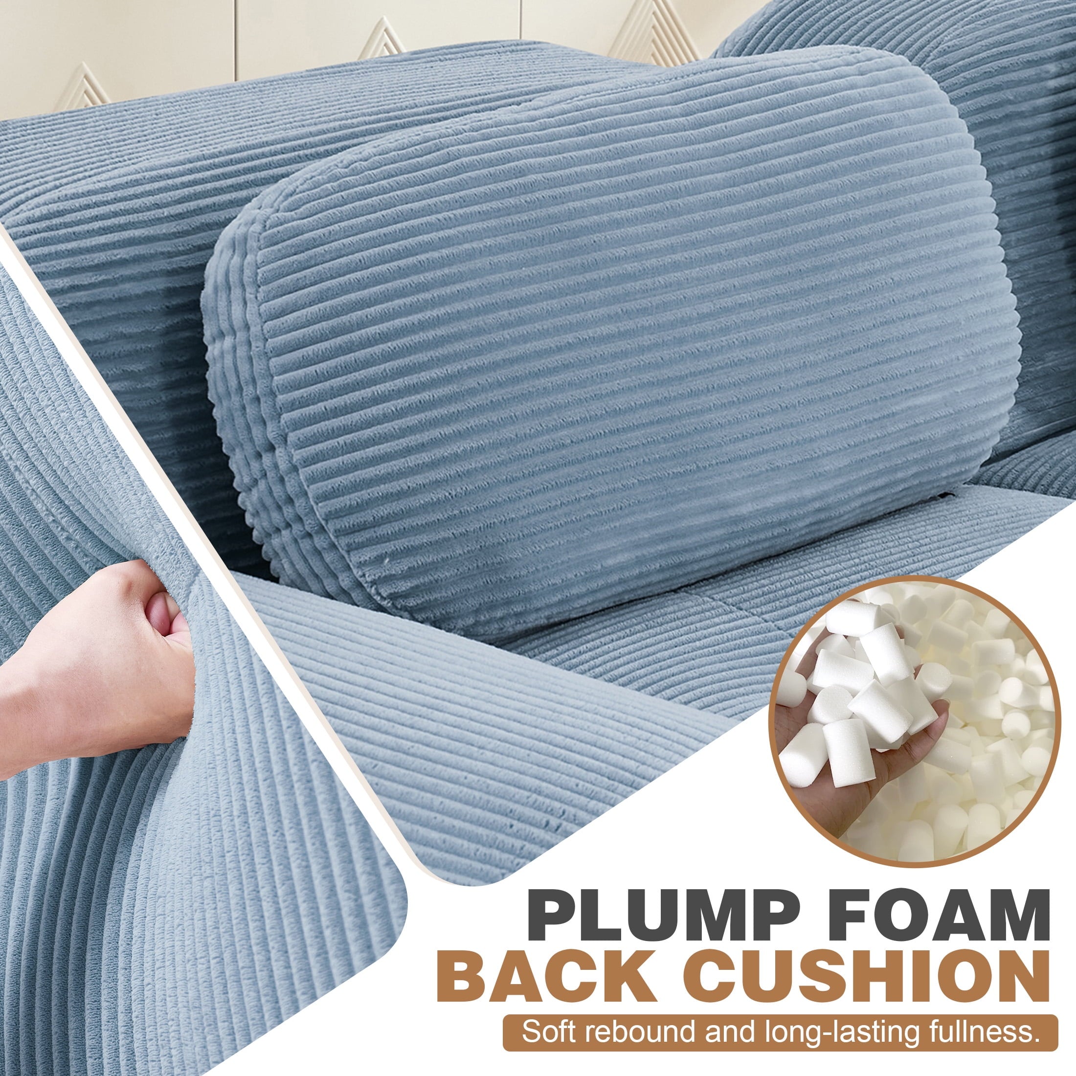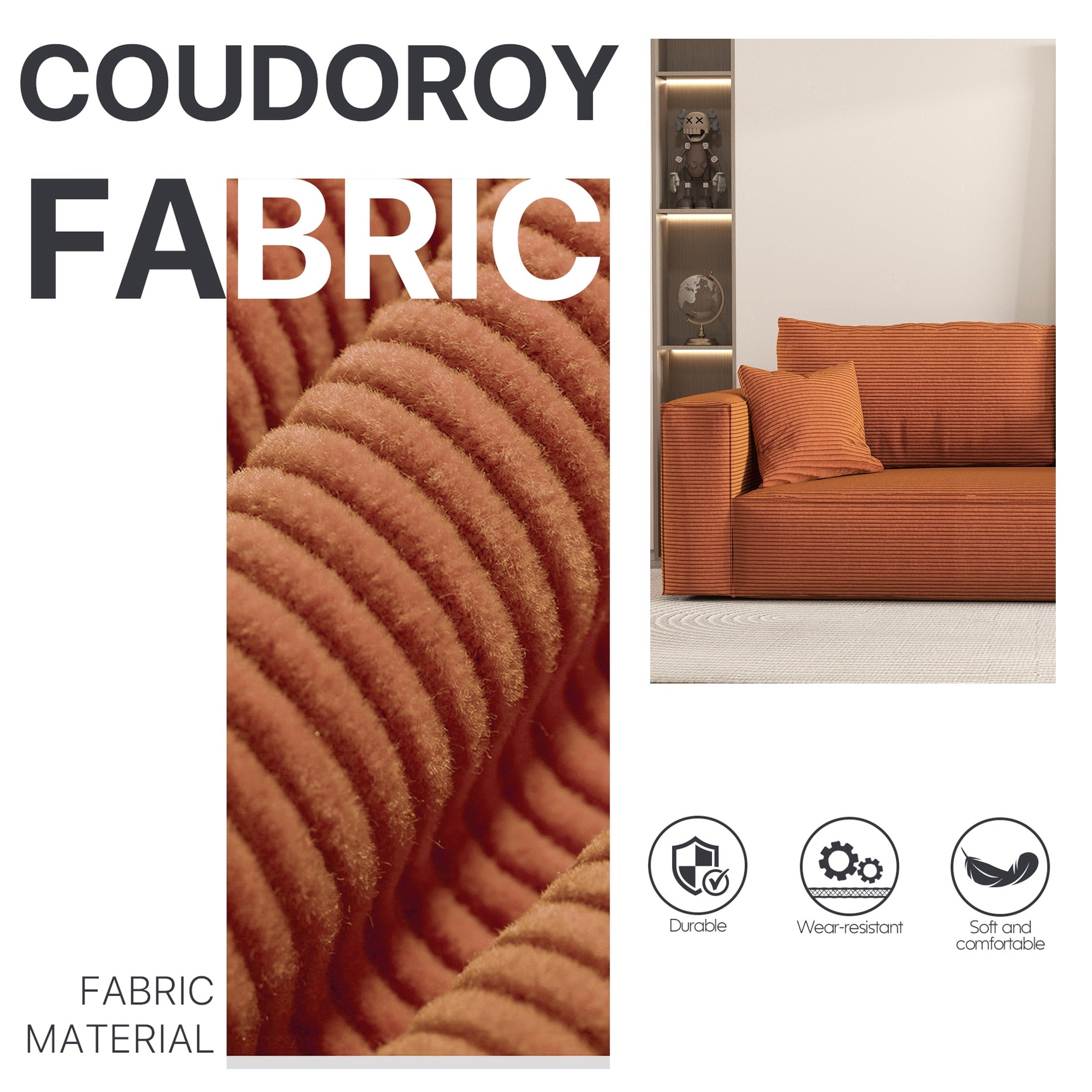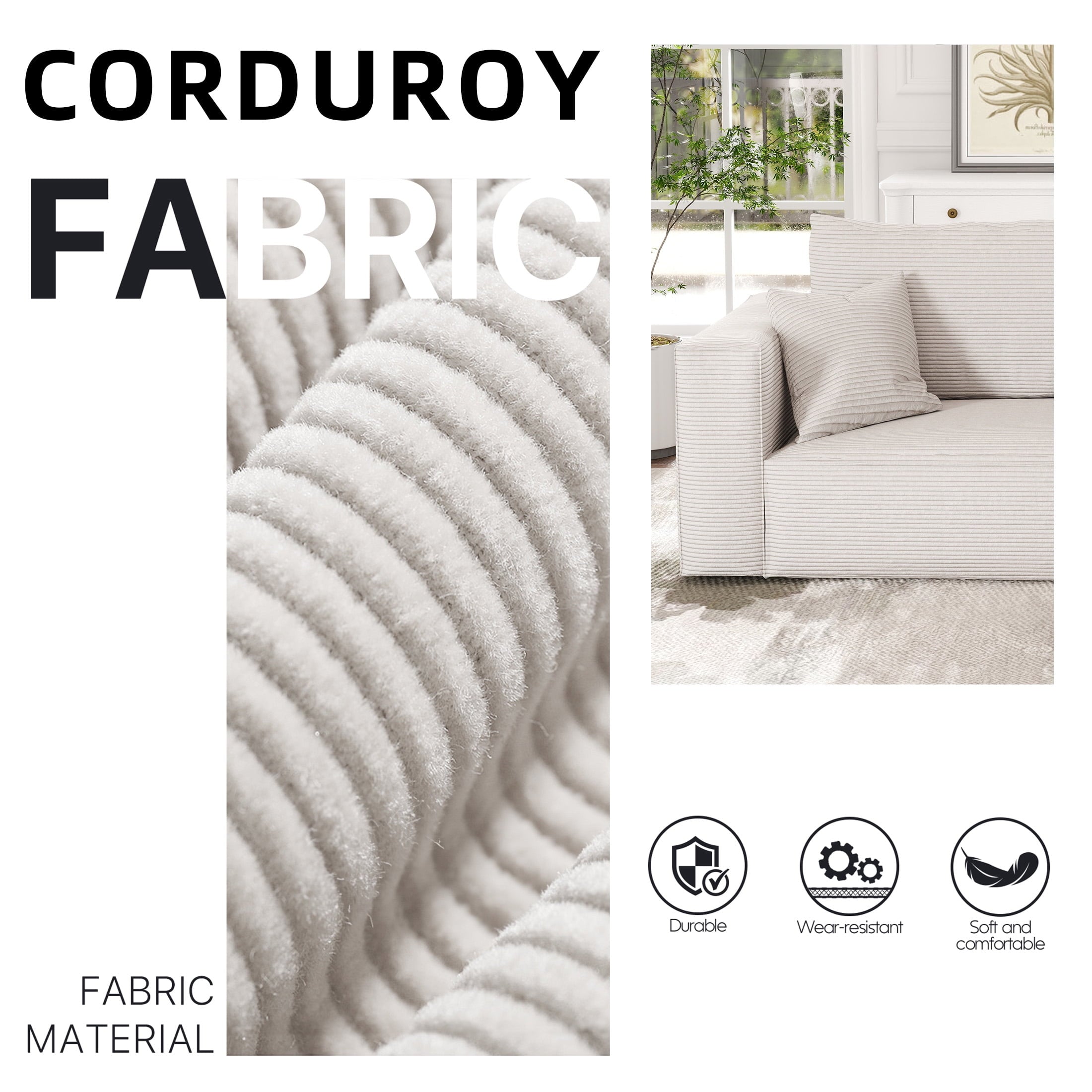 • Pet-Friendly Corduroy Fabric: Premium corduroy sofa upholstery blends a velvety hand feel with everyday durability. The ribbed weave resists claws and abrasion, repels light stains, and makes pet hair easy to brush off. Perfect for families who want stylish, low-maintenance seating that stands up to pets.