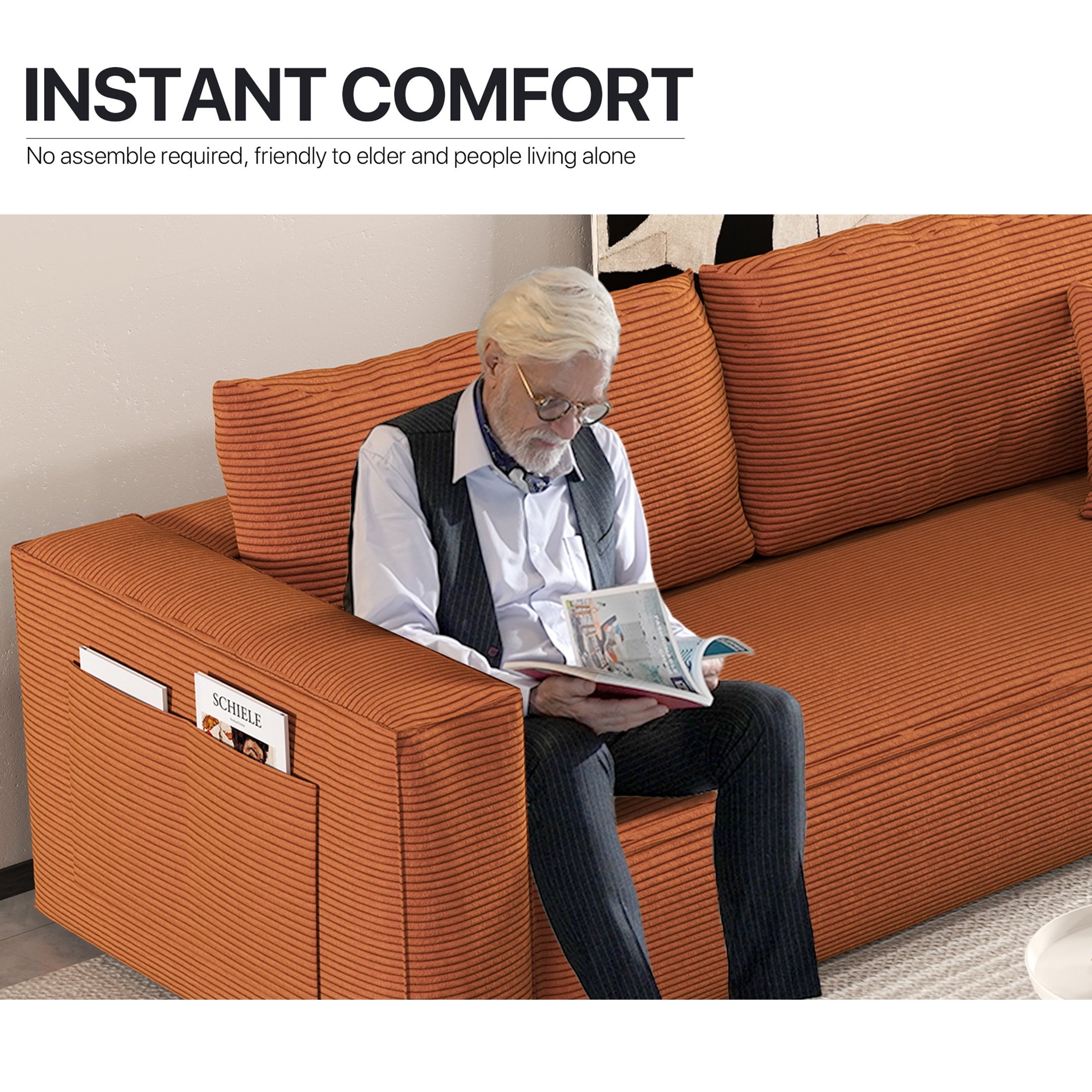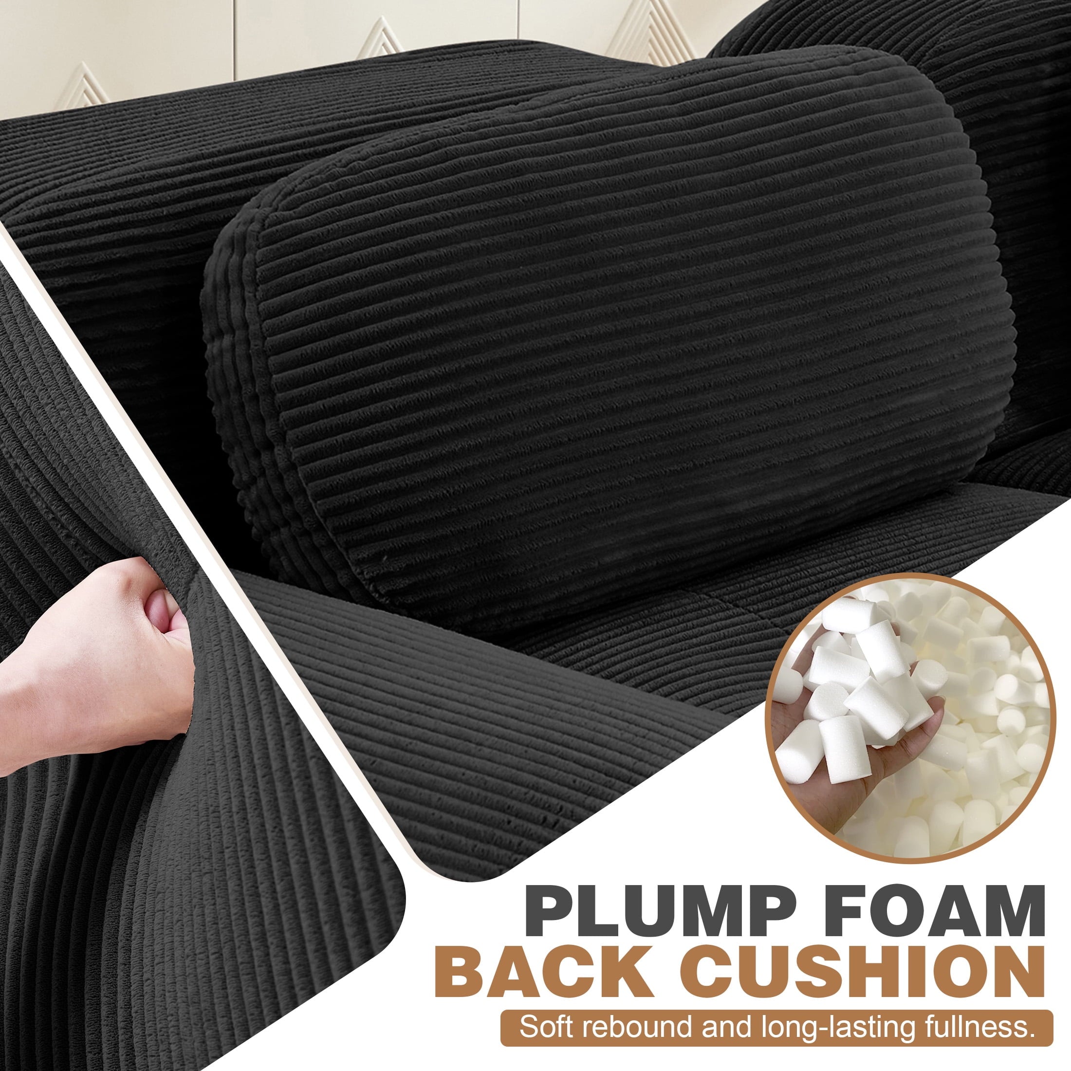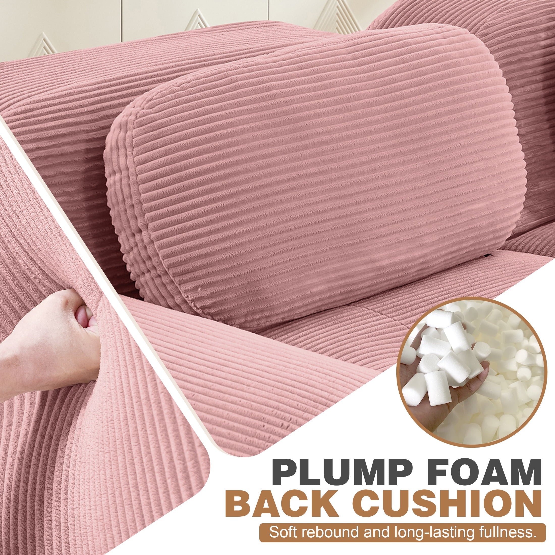 • Pet-Friendly Corduroy Fabric: Premium corduroy sofa upholstery blends a velvety hand feel with everyday durability. The ribbed weave resists claws and abrasion, repels light stains, and makes pet hair easy to brush off. Perfect for families who want stylish, low-maintenance seating that stands up to pets.