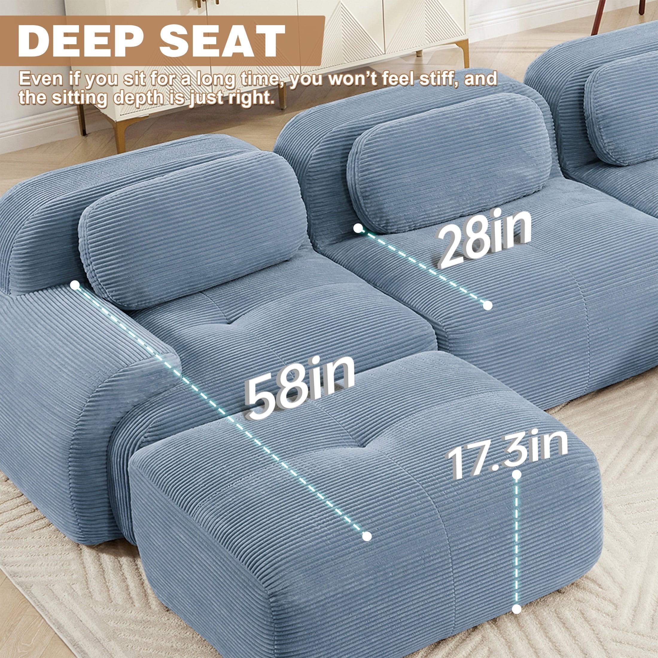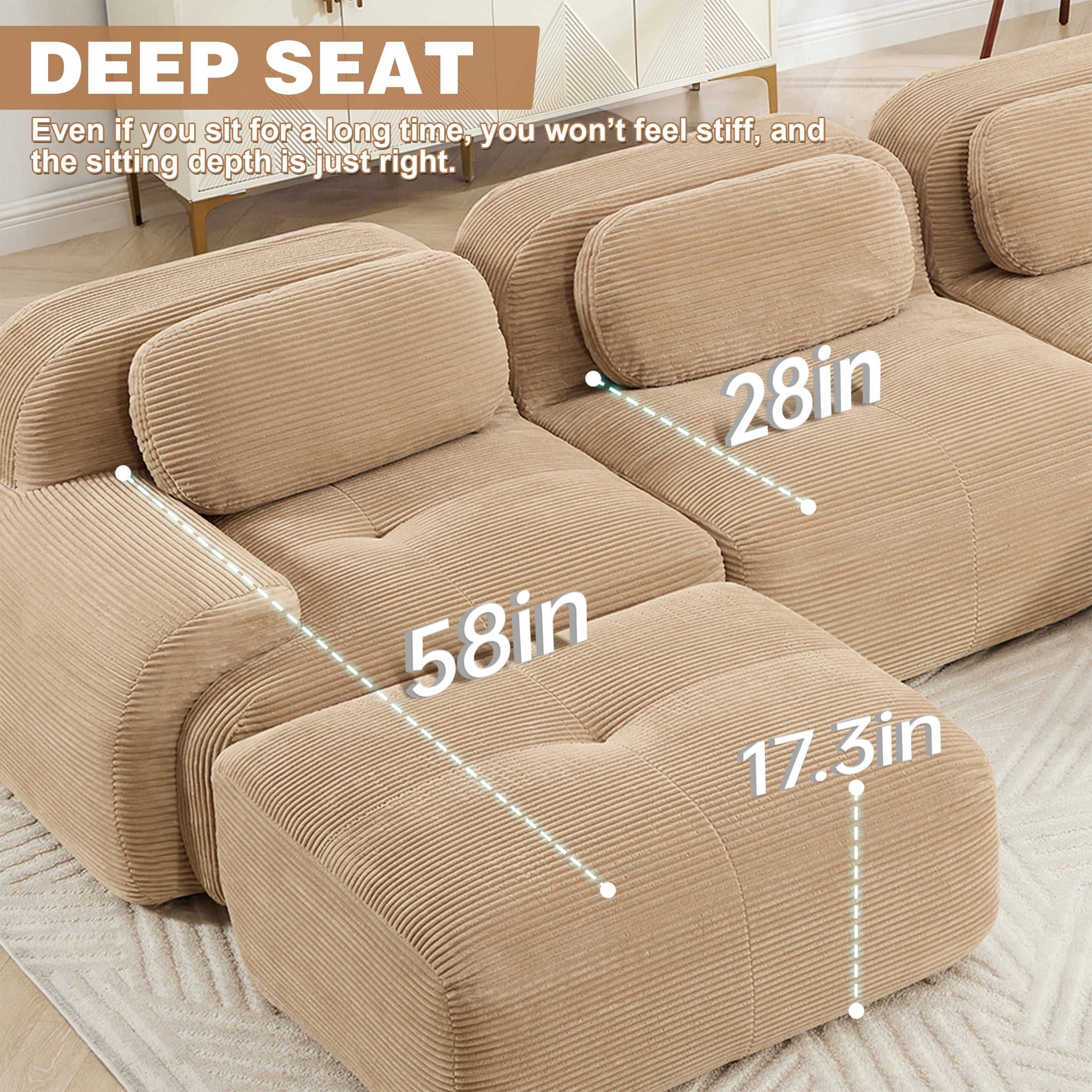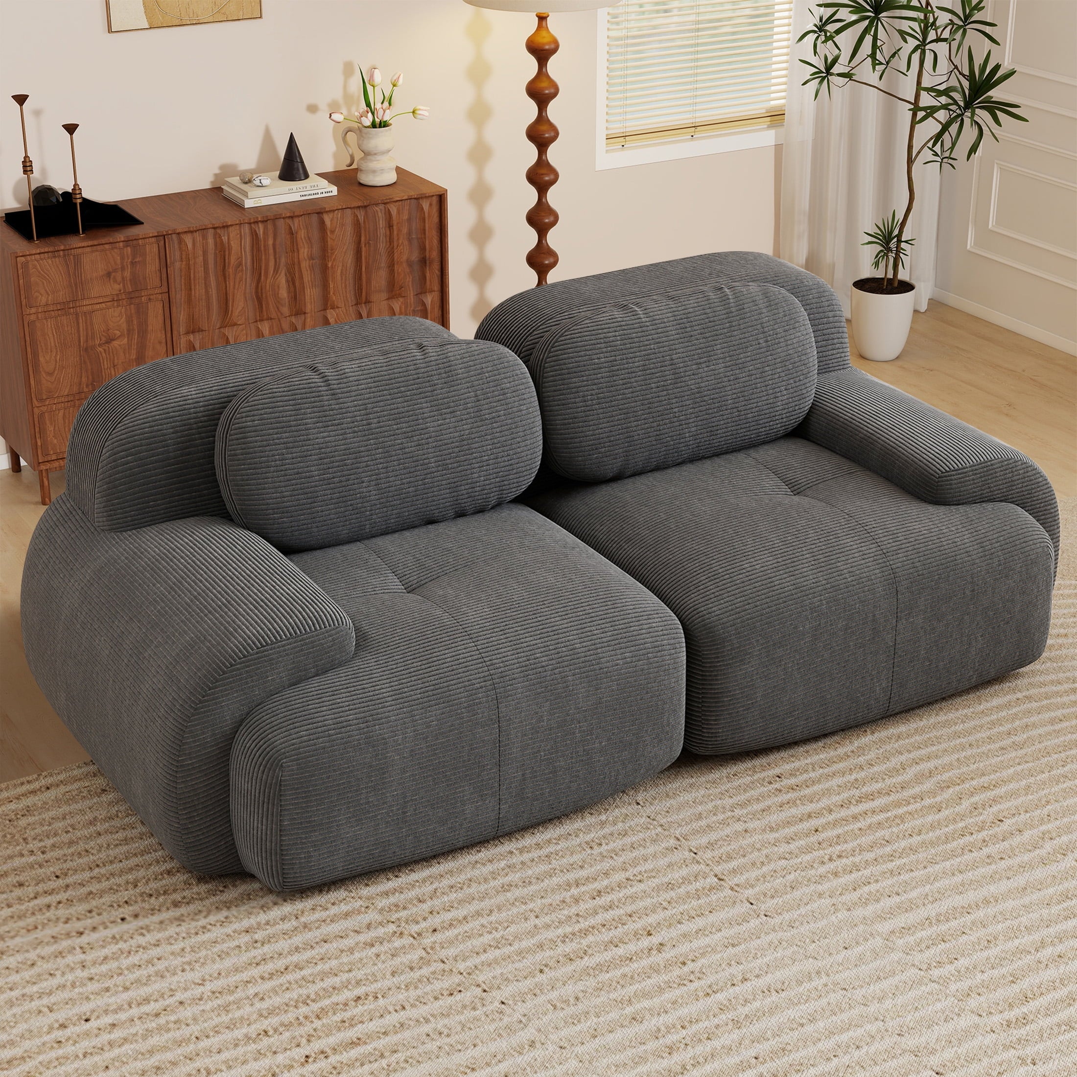 Aukfa 82″ Modular Sectional Sofa-28″ Deep Seats, Corduroy Fabric, Cloud-Comfort Loveseat