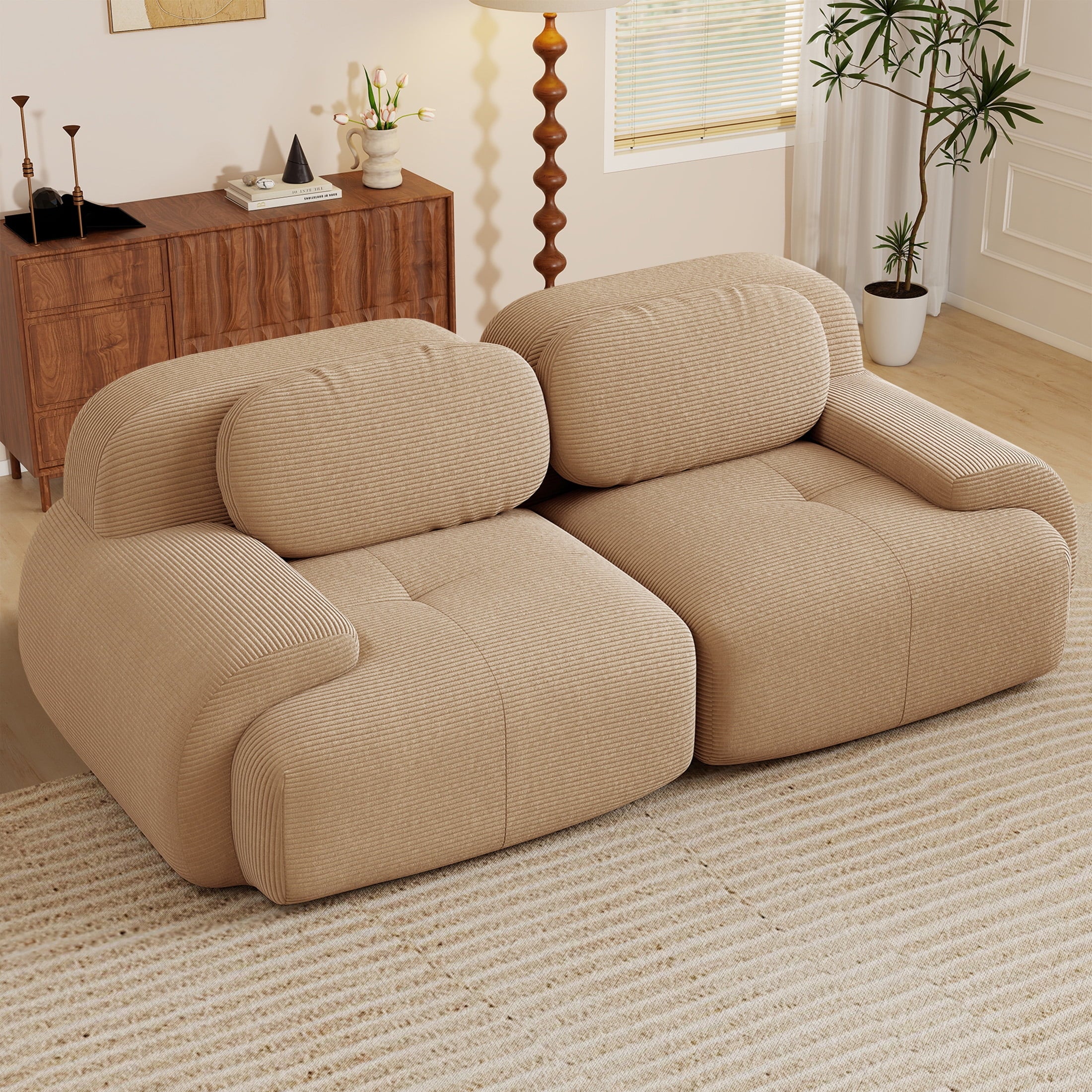 Aukfa 82" Modular Sectional Sofa, 28" Deep Seats, Corduroy Fabric, Cloud-Comfort Loveseat, Coffee