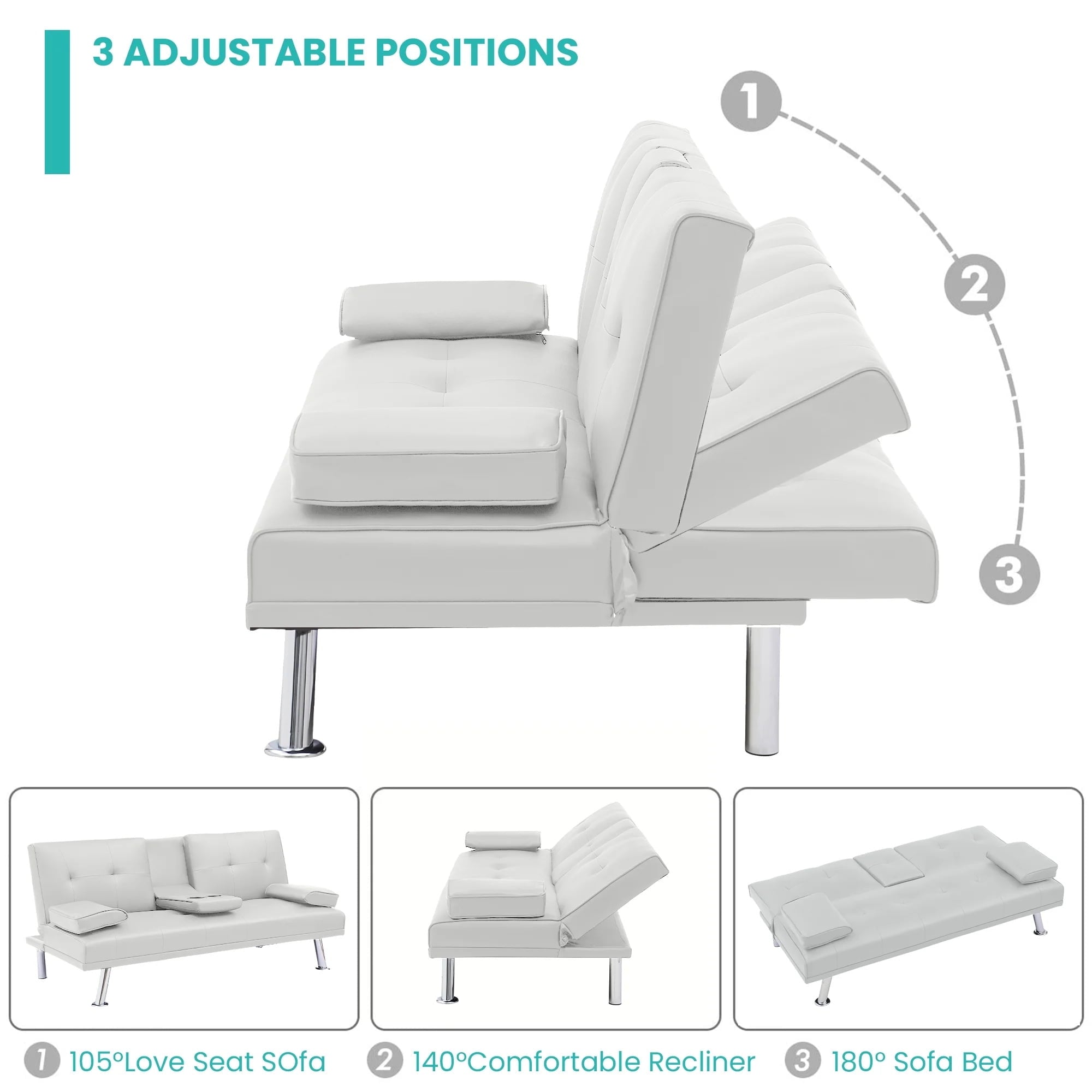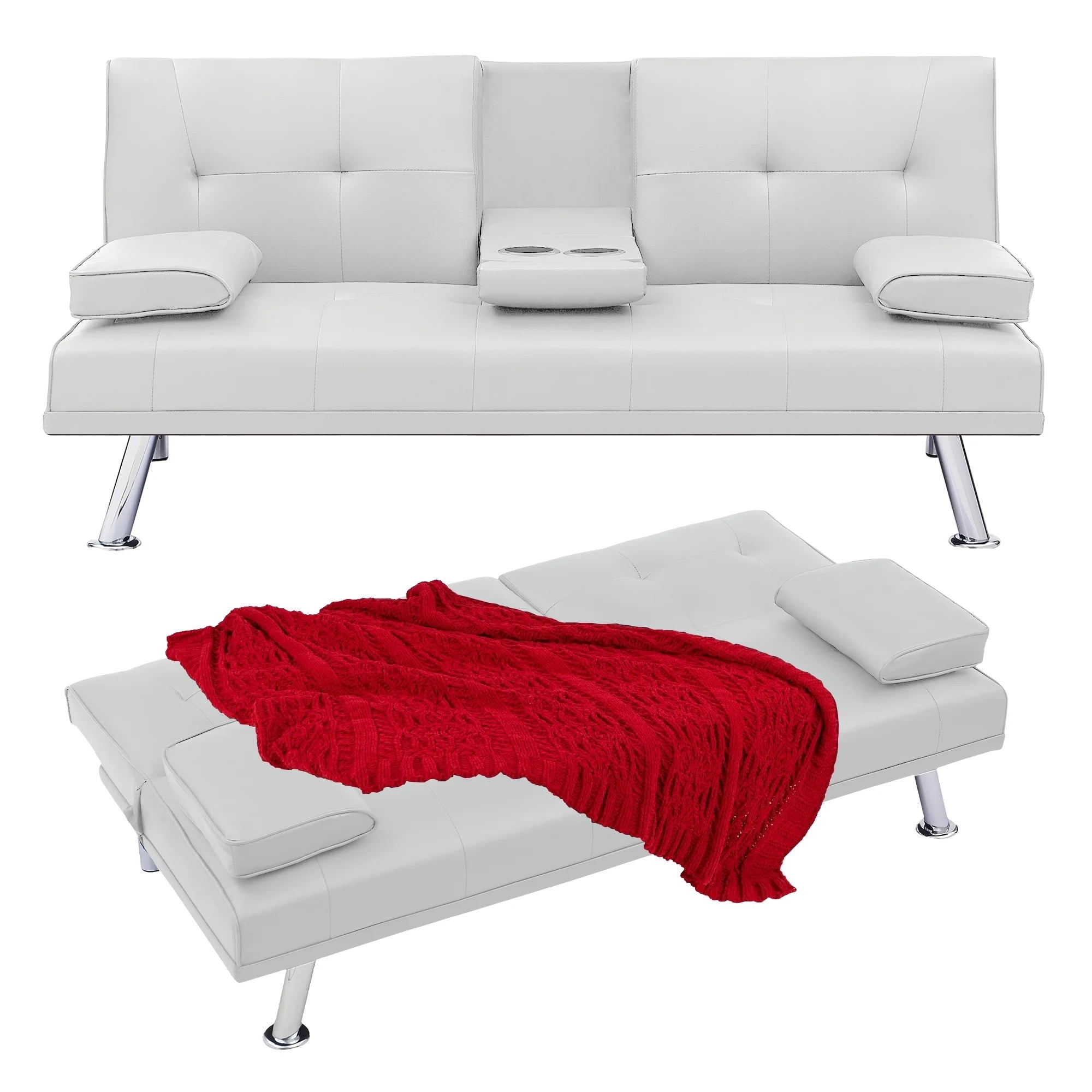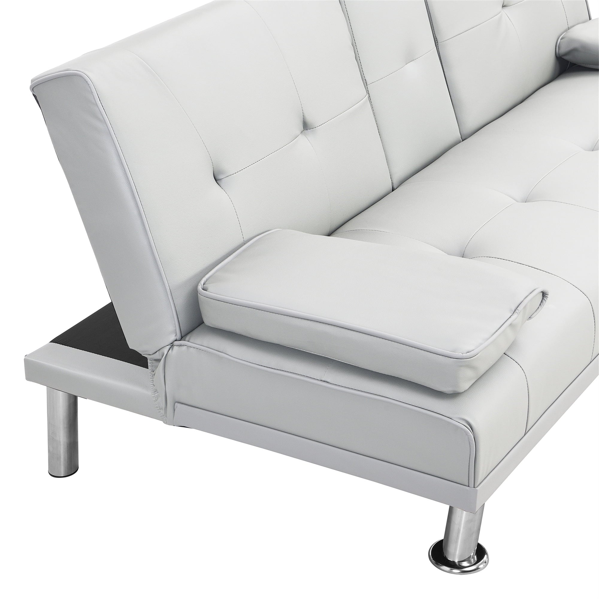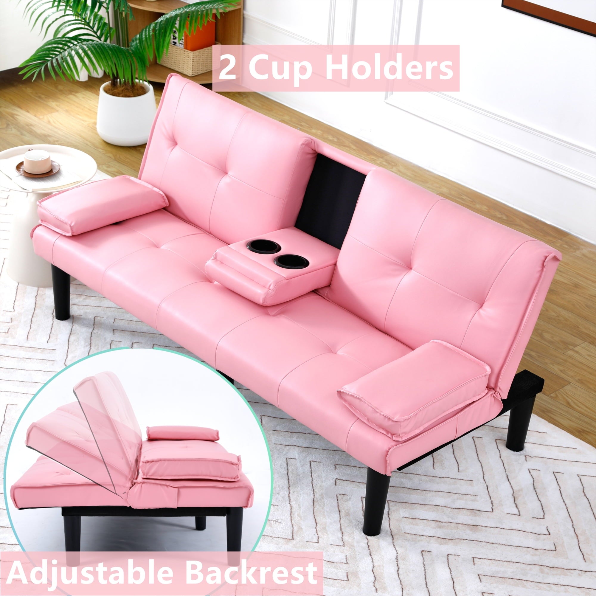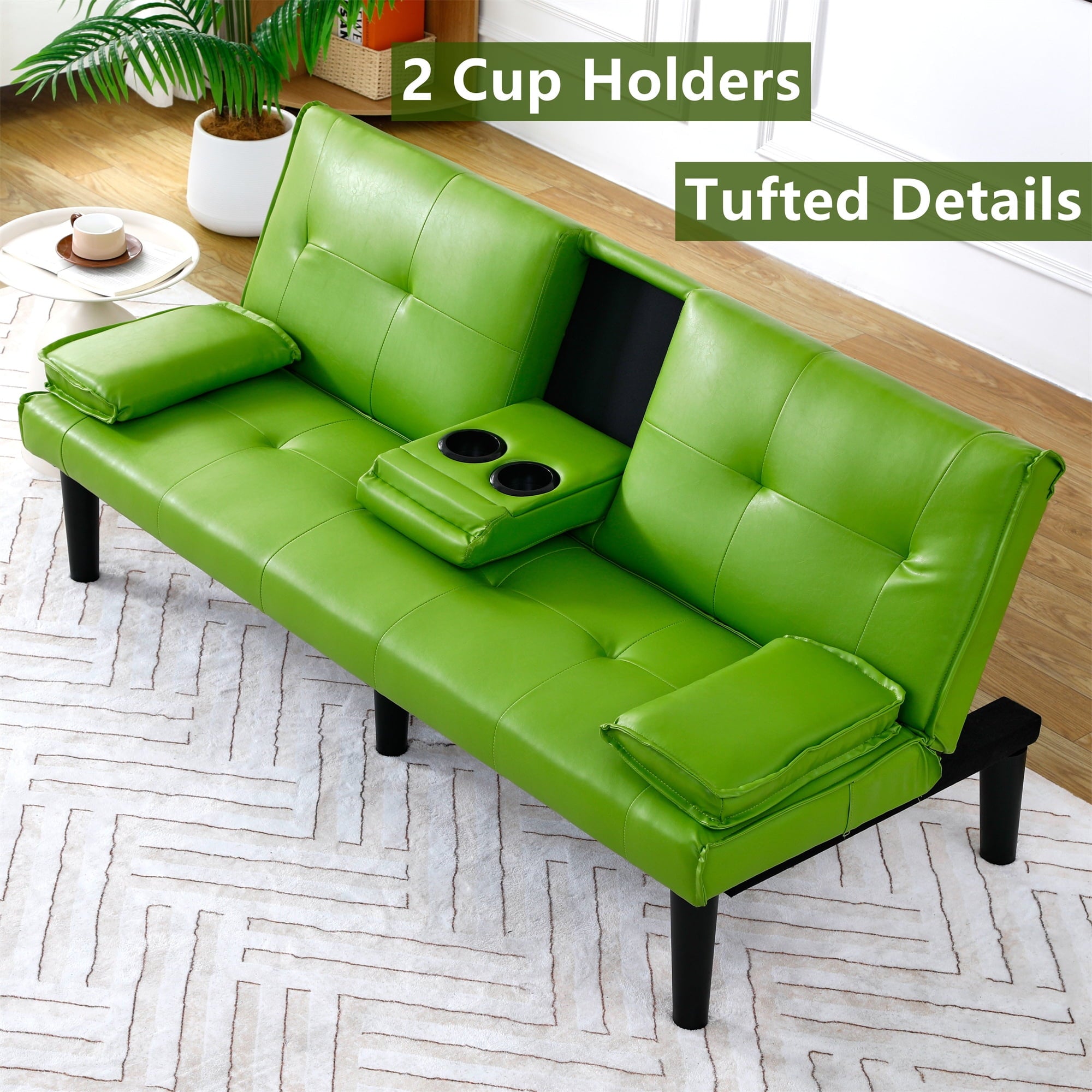 - FUTON WITH HIDDEN CUP HOLDER – Folding the middle armrest with 2 cup holders in the middle of the sofa allows you and your family and friends to enjoy drinks while relaxing. It can make it more convenient for you and your family to drink while watching a sports game.