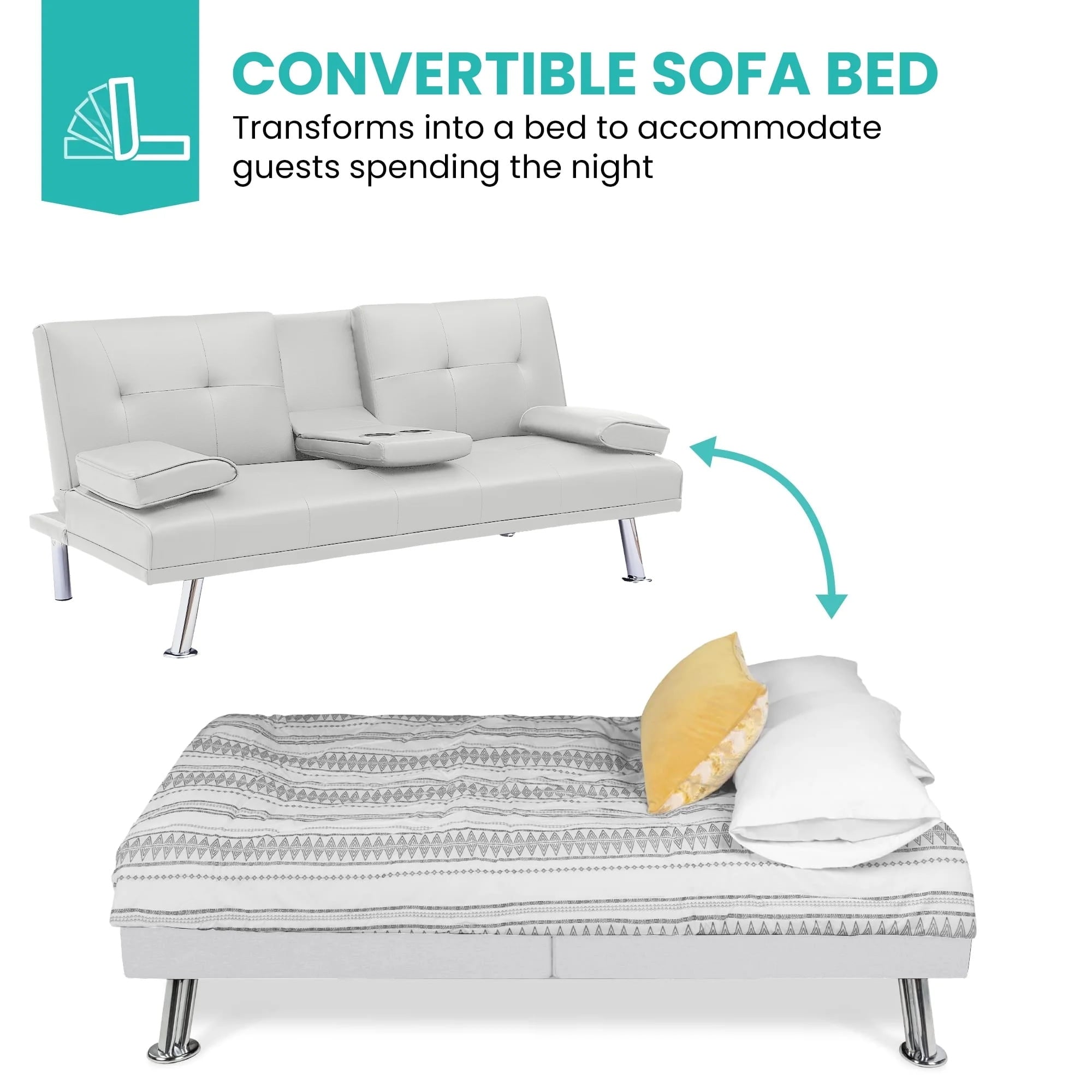 Its thick cushions and breathable design ensure a truly relaxing experience. Versatility is the key feature of this sofa bed, boasting hidden cup holders and pillow armrests for leisurely moments and the ability to effortlessly transform into