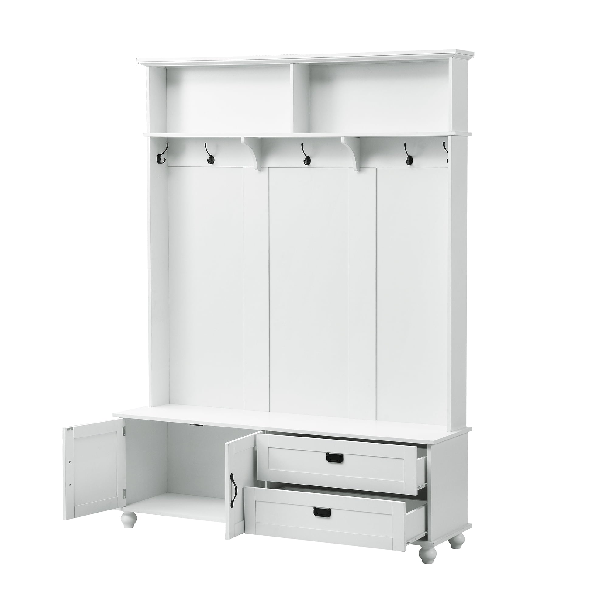 Aukfa Modern Entryway Hall Tree w/ Bench,5 Hooks & 2 Drawers,White