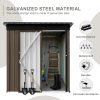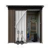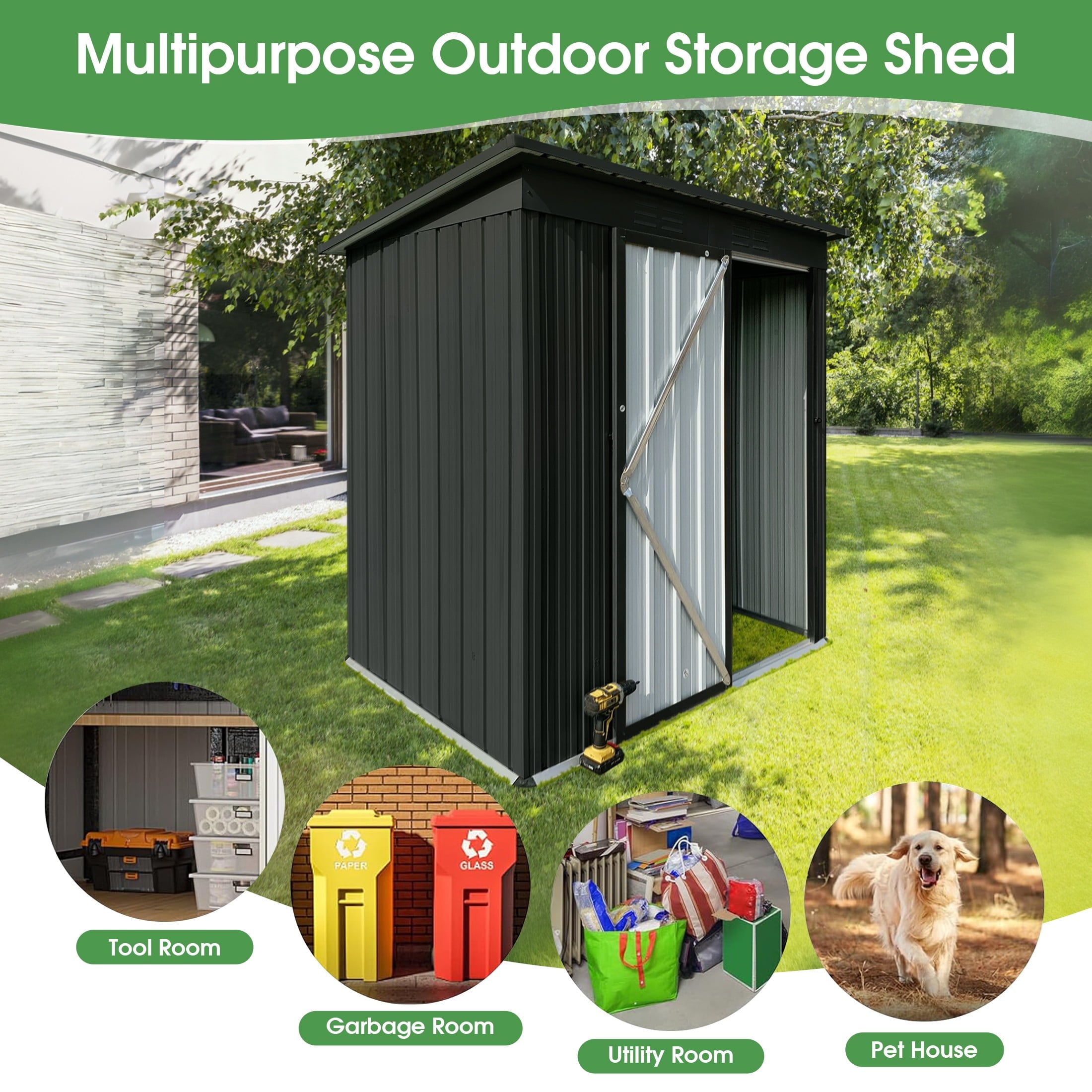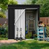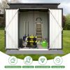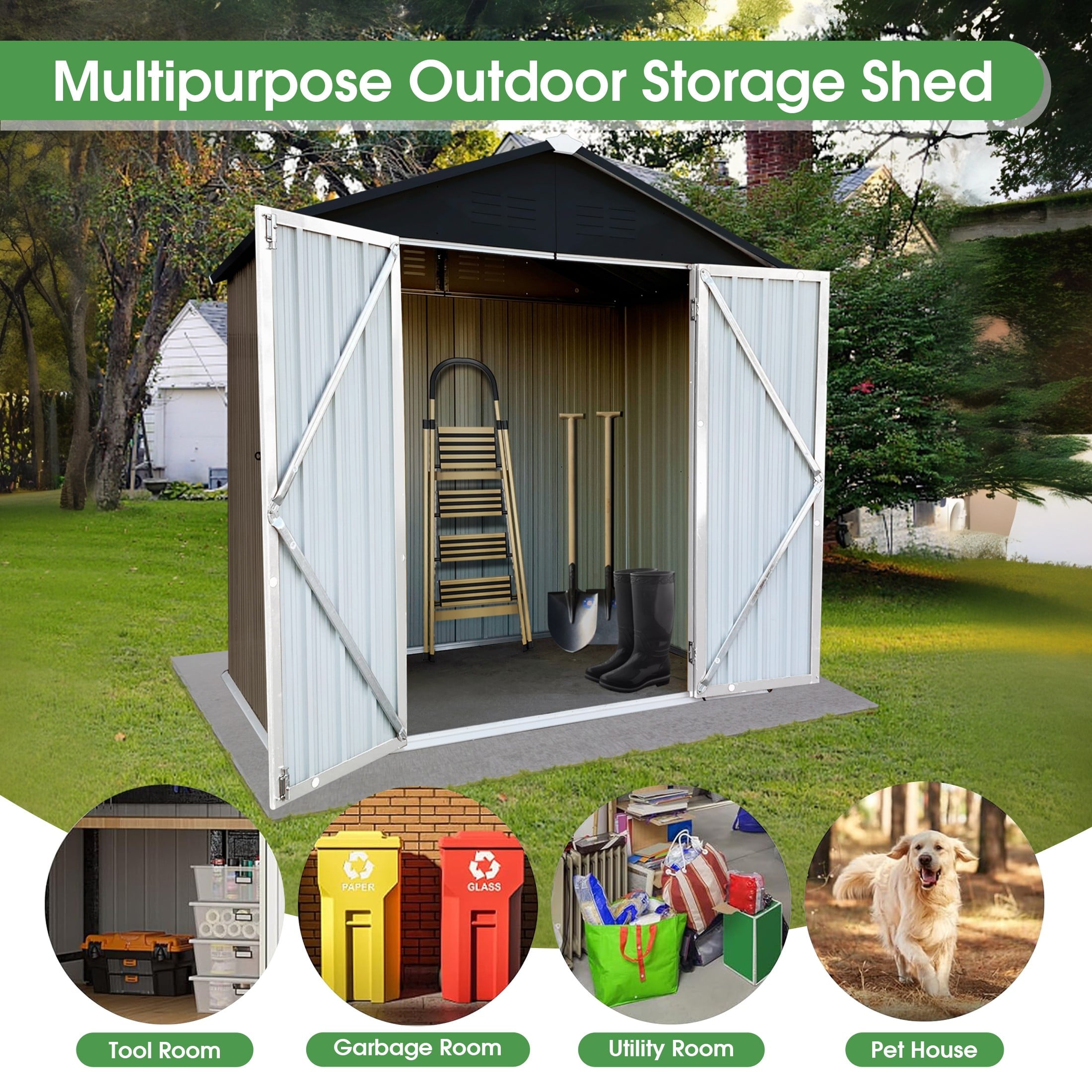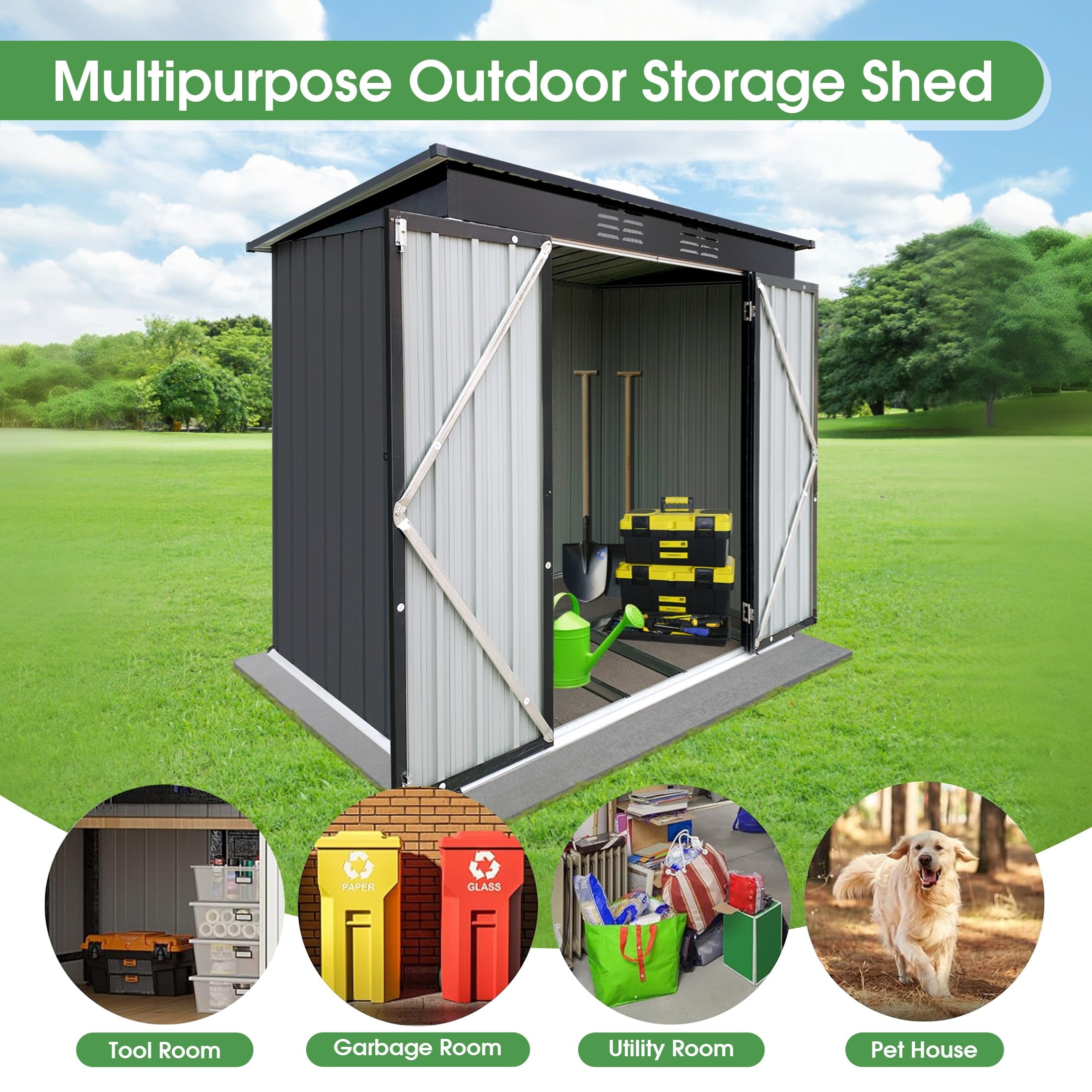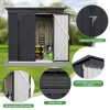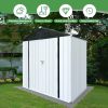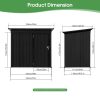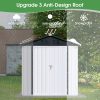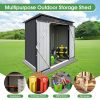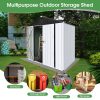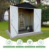 The Aukfa AK-SM01-008 metal storage shed is made from corrosion-resistant color plates and electro-galvanized steel panels, providing protection for your outdoor equipment and tools from various weather conditions and pests. With 5 ft. W x 4 ft. D of space, it offers ample storage for garden tools, bicycles, lawnmowers, and more. The high-positioned two vents ensure adequate ventilation. The sloped roof design prevents leaks even during rain. Its lockable doors keep your outdoor items secure and organized, while maintaining a clean, presentable look for your backyard. The outdoor shed can be used as a garbage shed, tool shed, pet shed, and more. Floor Not Included.