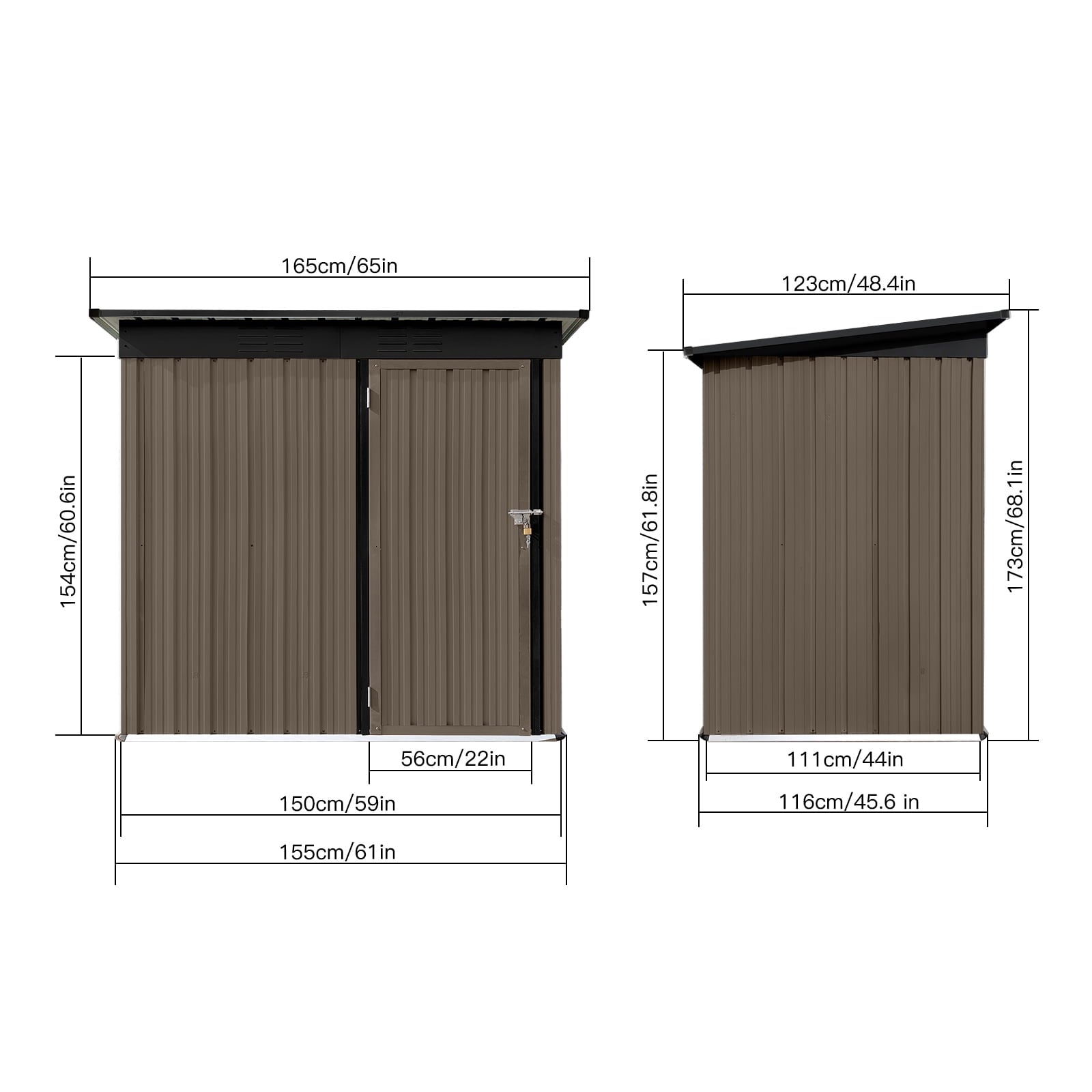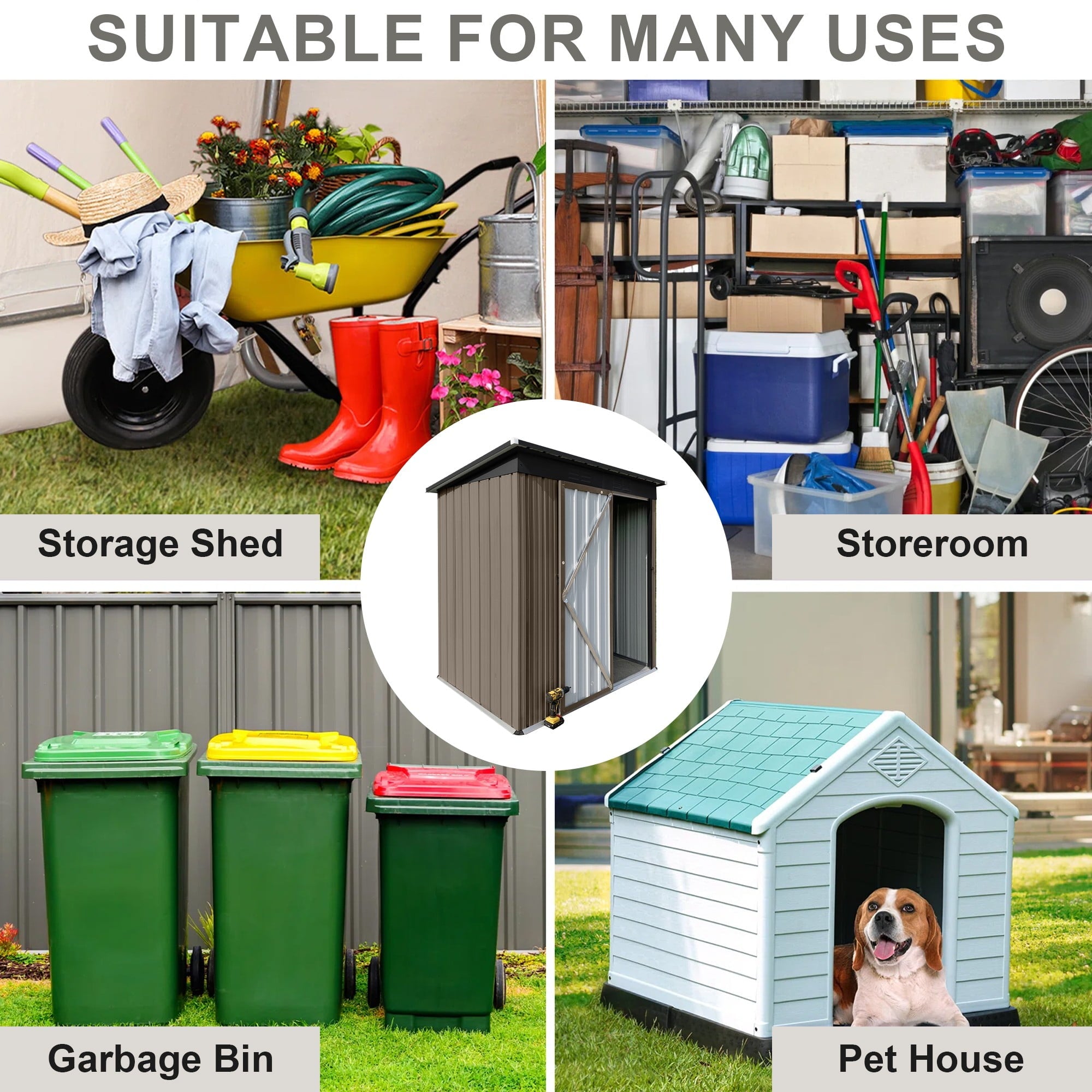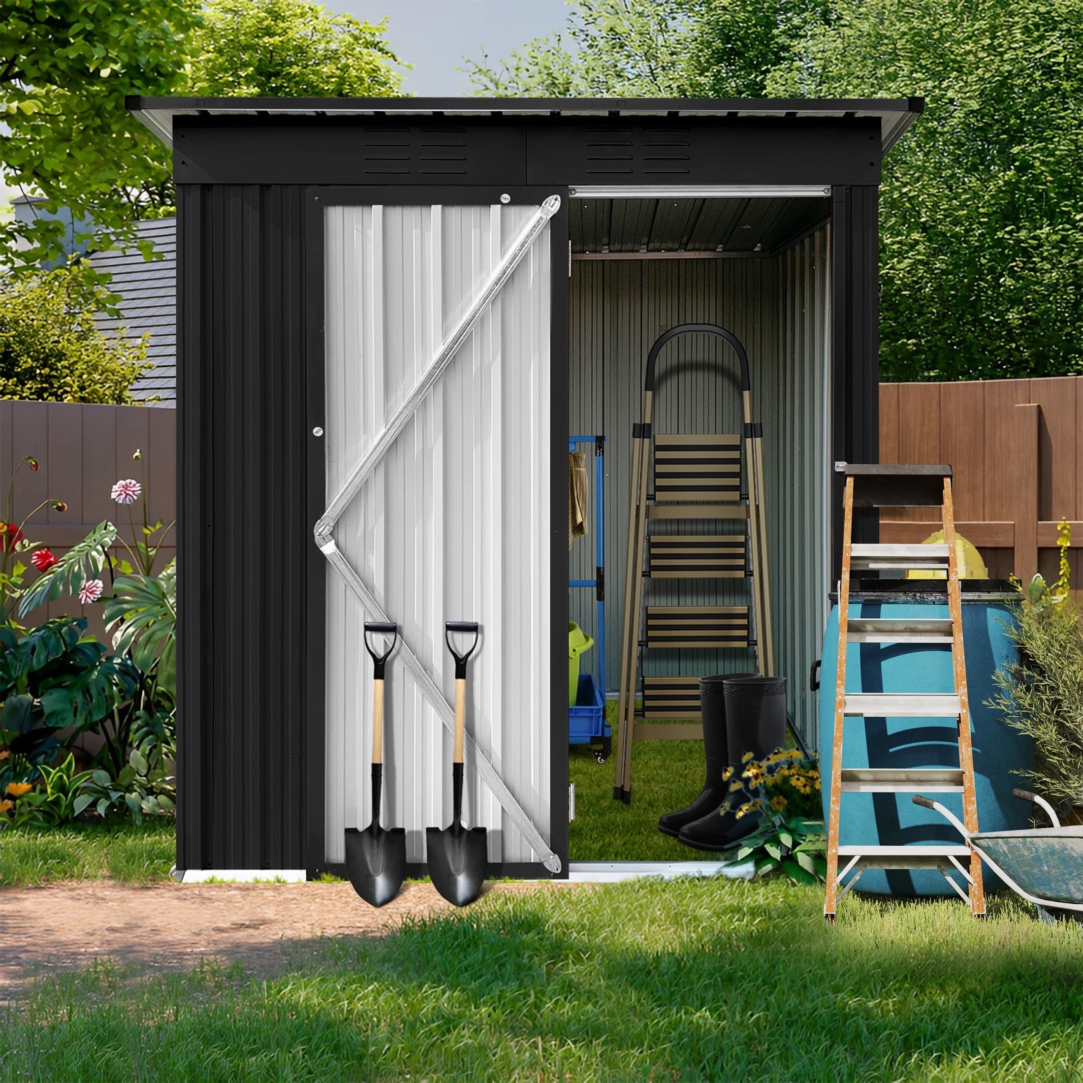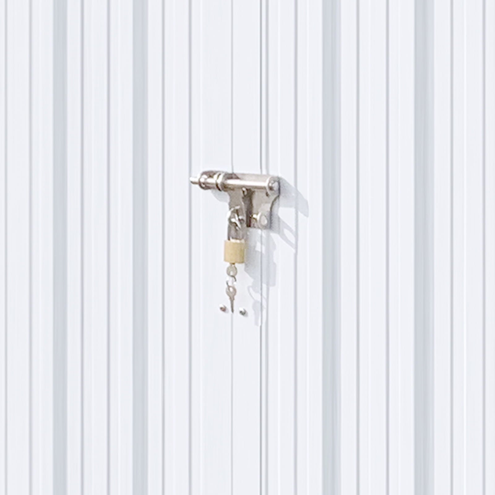 ENHANCED SECURITY AND EASY ACCESS – The backyard shed includes a sturdy hinged door for easier customization and access compared to sliding doors. A heavy-duty padlock is included for extra security, giving you peace of mind when storing valuable tools.