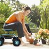 ROBUST, HEAVY-DUTY STEEL FRAME – Constructed with a premium, high-quality steel frame, this garden cart with seat is not just sturdy, but also durable and resilient. With an impressive weight capacity of up to 300 lbs, it is designed to hold all your heavy-duty gardening tools and equipment, ensuring no bending or sagging, making it a reliable partner for your gardening tasks.