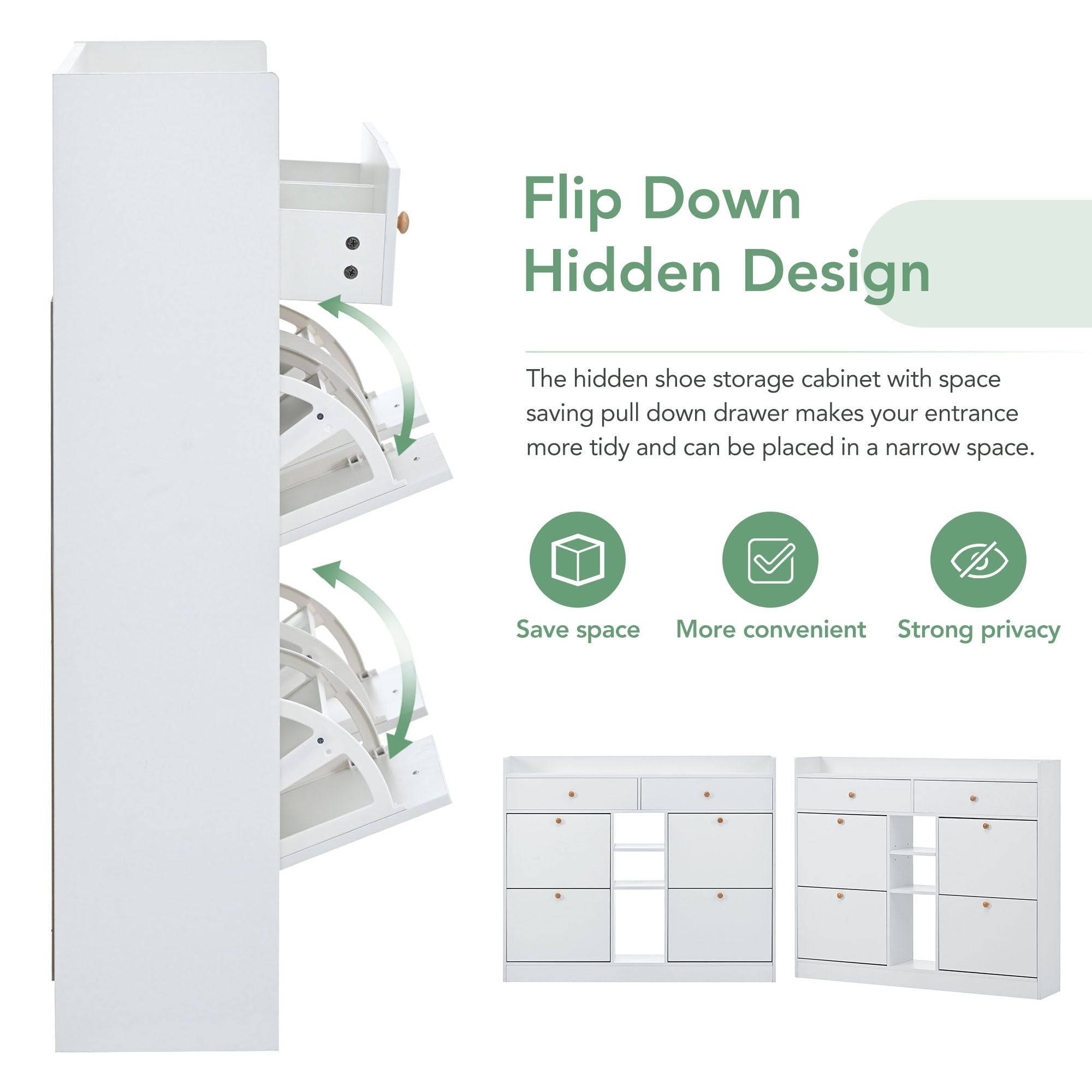 - FLIP DOWN HIDDEN DESIGN – The hidden shoe storage cabinet with space saving pull down drawer makes your entrance more tidy and can be placed in a narrow space.