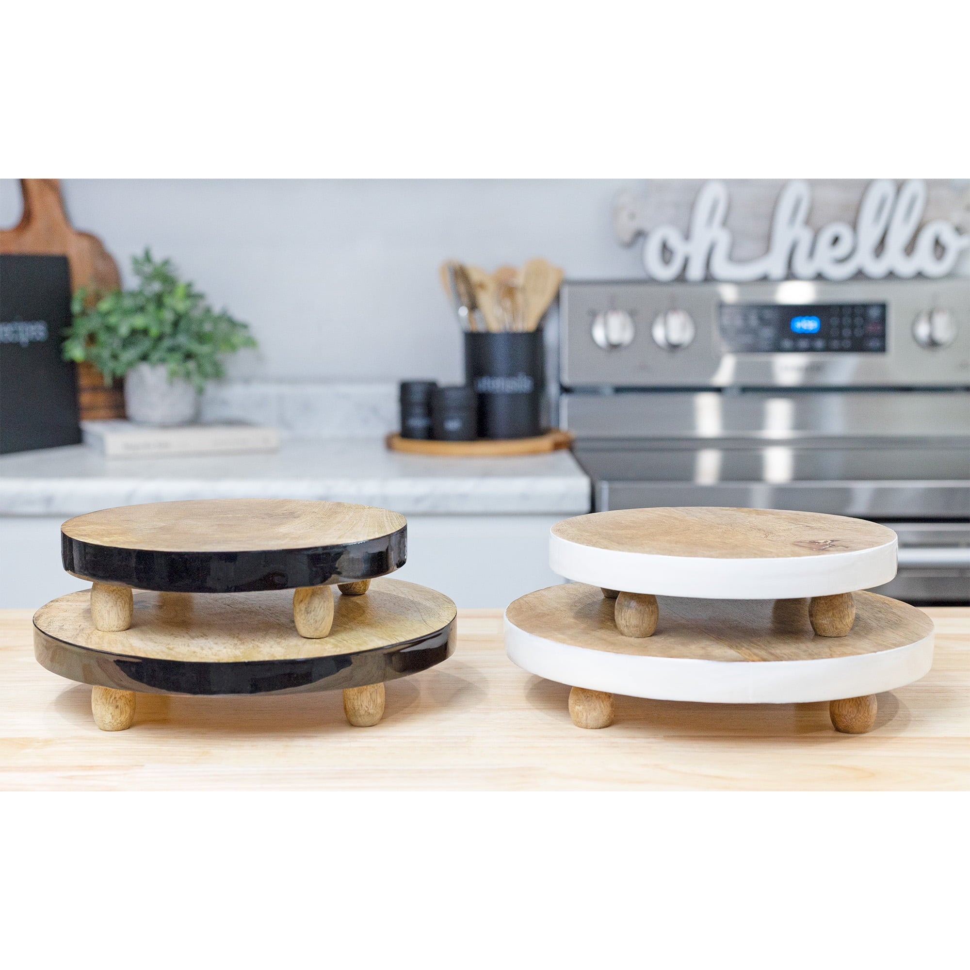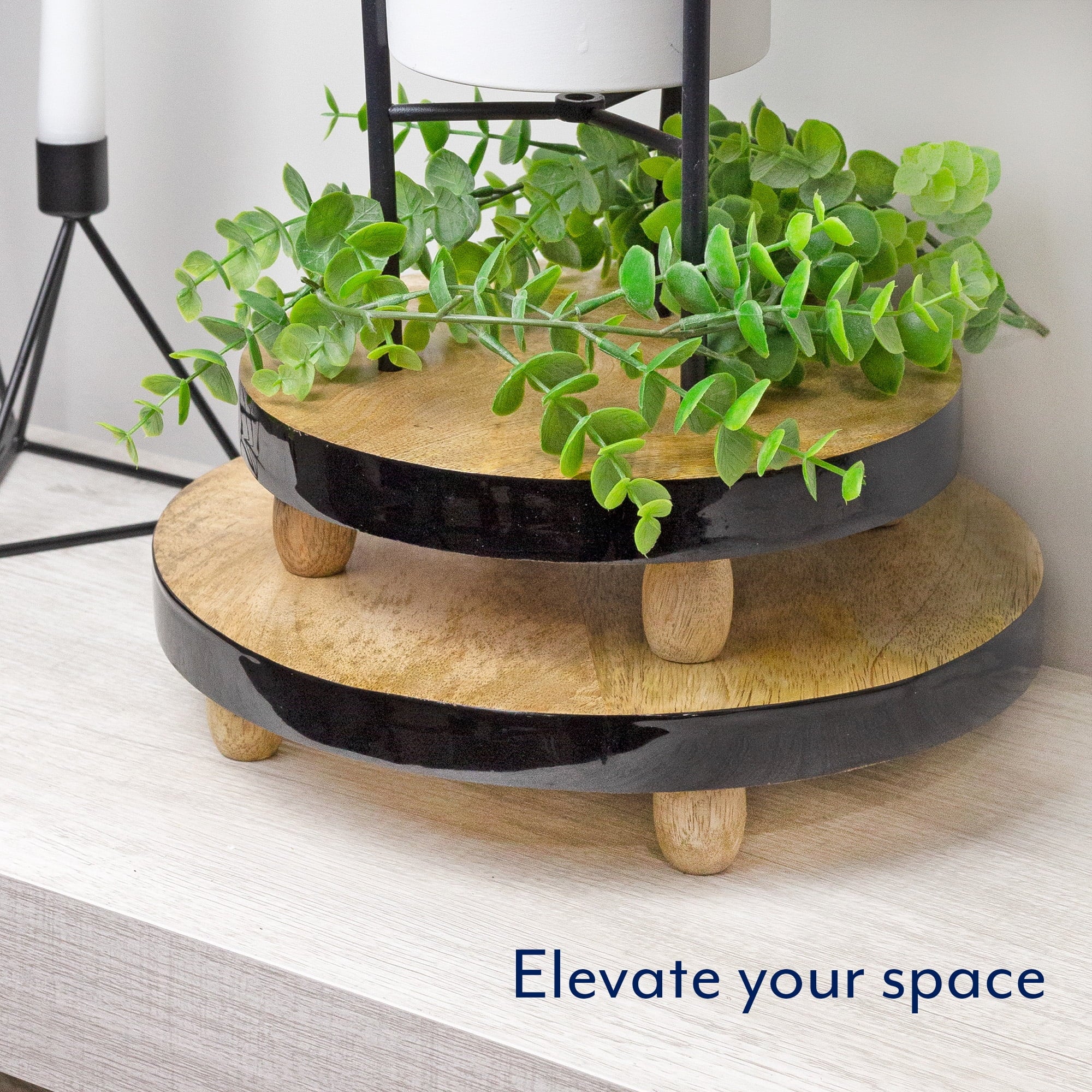 - 2-TIER SET: Two round footed risers, can be used as a tiered tray effect or for individual pedestal display
