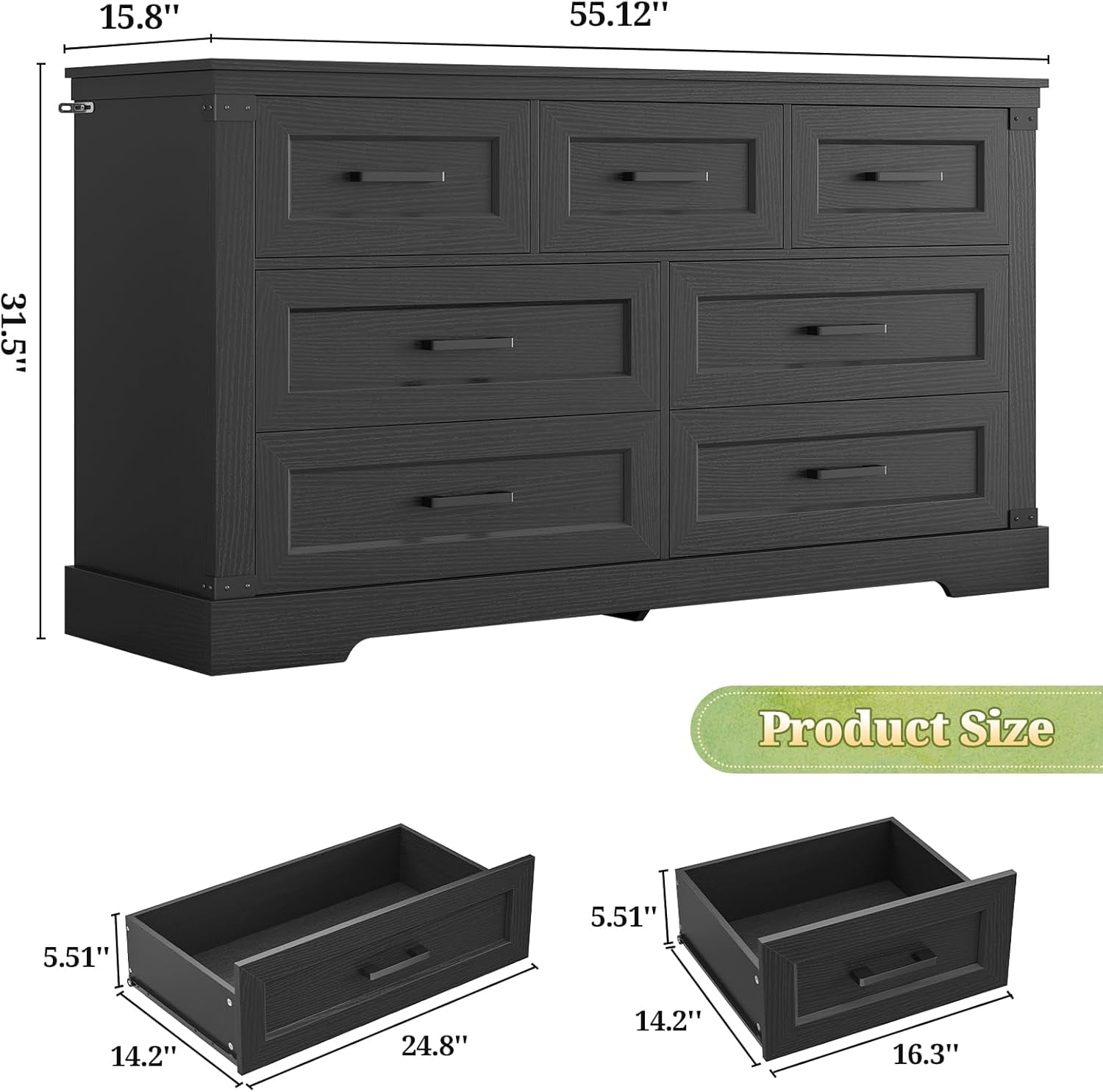 🔸This black dresser features 4 spacious large drawers and 3 small drawers, providing ample space for categorized storage of various items, from clothes to accessories.