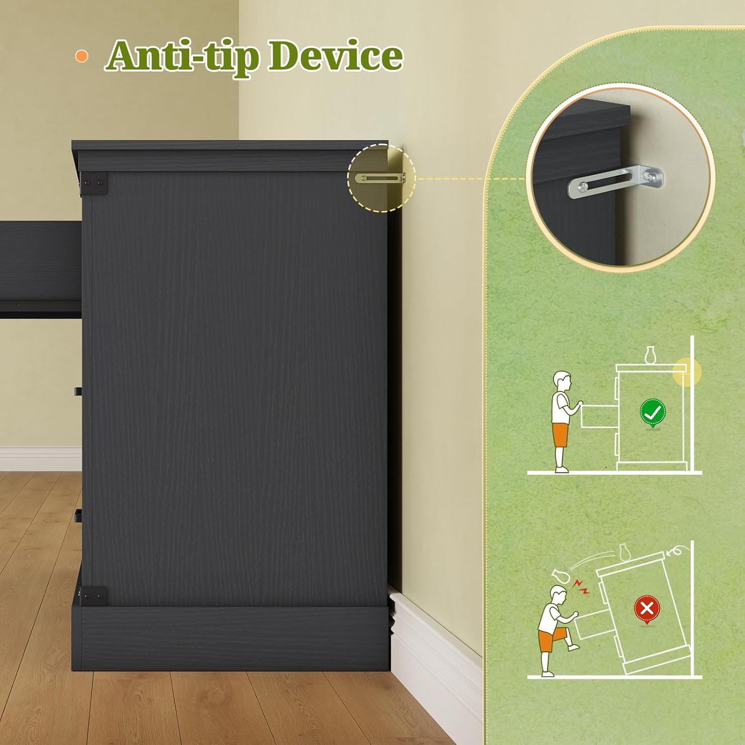 🔸An anti-tip kit is included to ensure the safety of you and your family. The stable base design makes the dresser less likely to shake.
