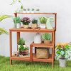 This versatile potting workbench not only provides a sturdy surface for potted plants, but also provides convenient open shelves for storing tools, POTS, and accessories. Upgrade your indoor/outdoor space today with our versatile potting workbench. Enhance your gardening experience with our quality garden potted bench table. Designed for functionality and aesthetics, this patio gardening workbench is a must have for any gardening enthusiast. This garden workbench is made from solid wood and teak oil to ensure your backyard or balcony is durable. The spacious tabletop provides plenty of room for potting and pruning, while the ergonomic height reduces back and knee strain during gardening tasks, making gardening more enjoyable. The slat design promotes airflow, prevents moisture buildup, and enhances leg stability while reducing water damage.