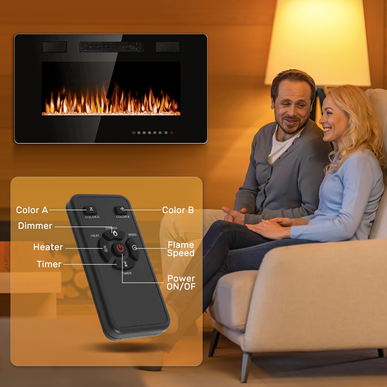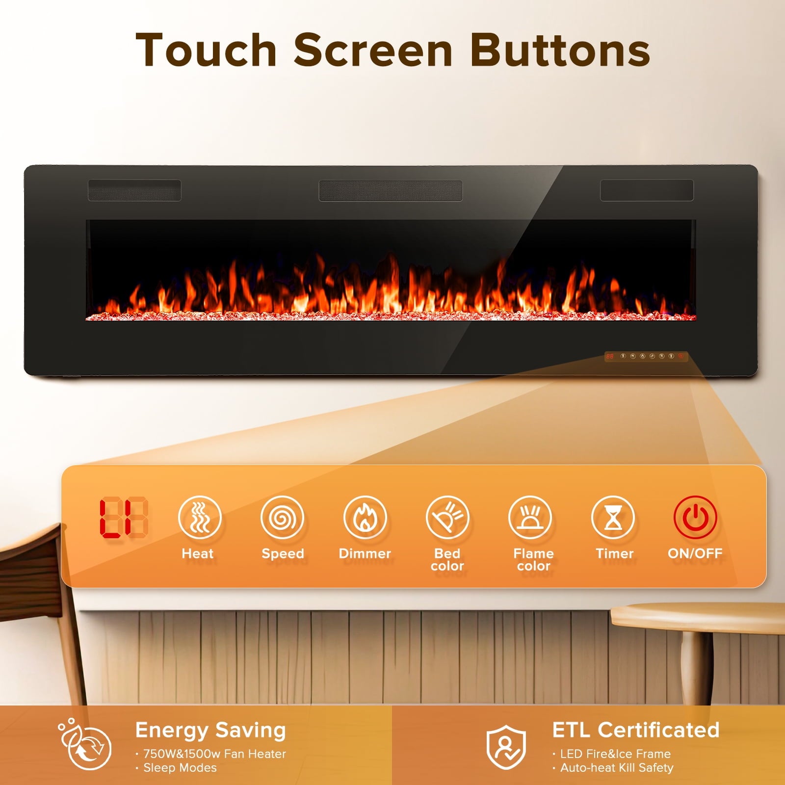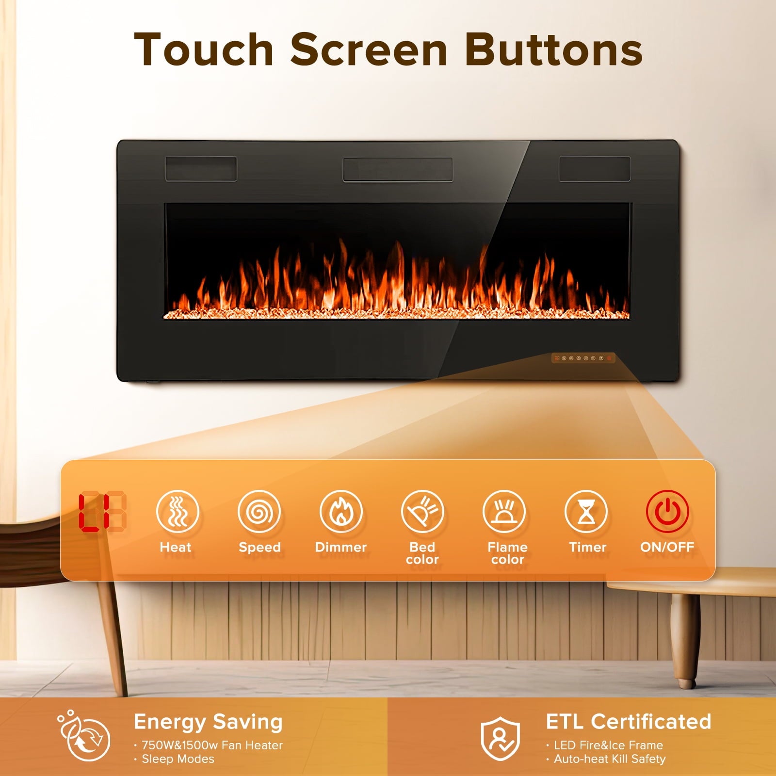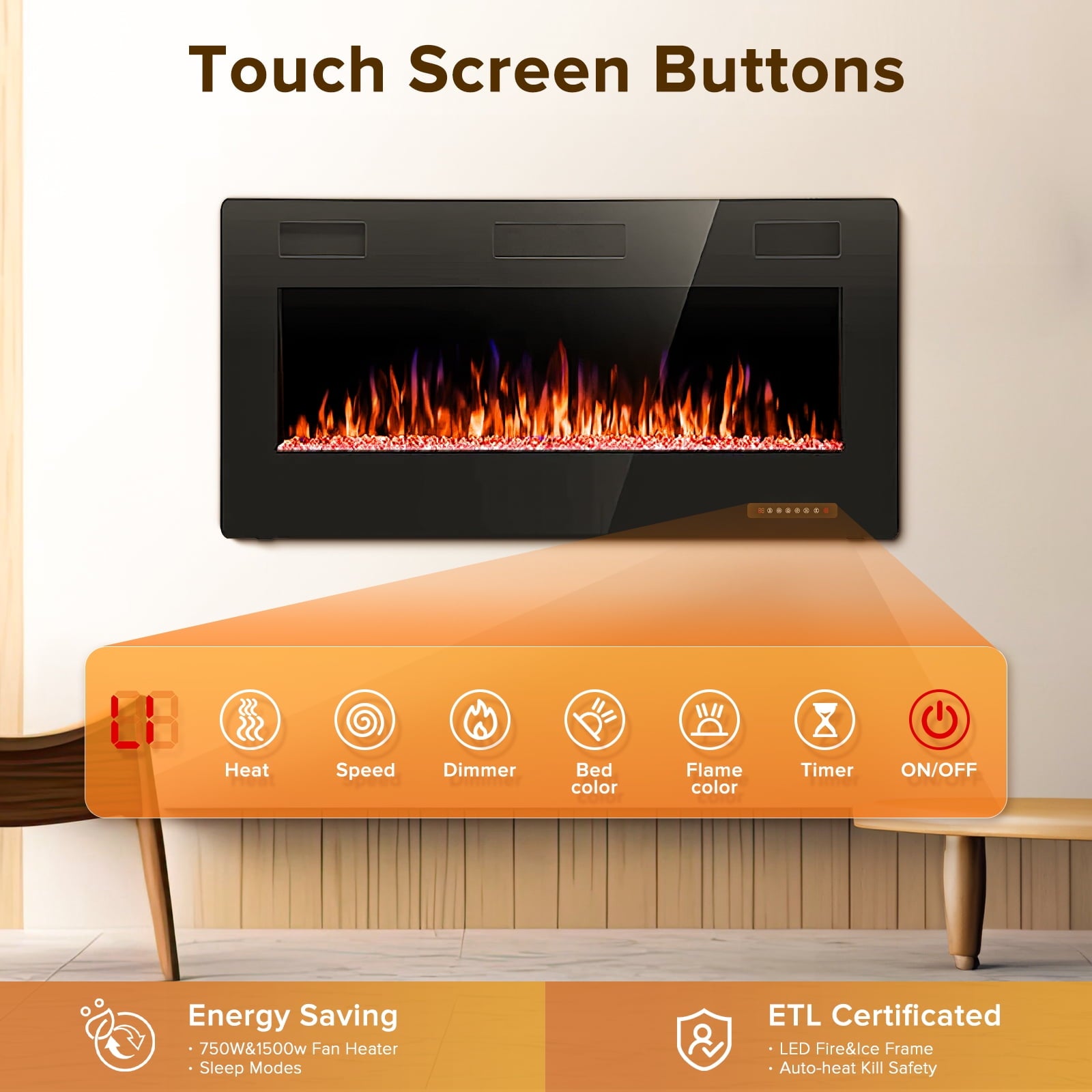 - While we have a touch screen, we also provide a remote control. So you can easily adjust 12 flame and flame bed colors, 5 optional modes of flame speed and brightness, and 2 heating Settings of 750W/1500W. Adapt to multiple needs.