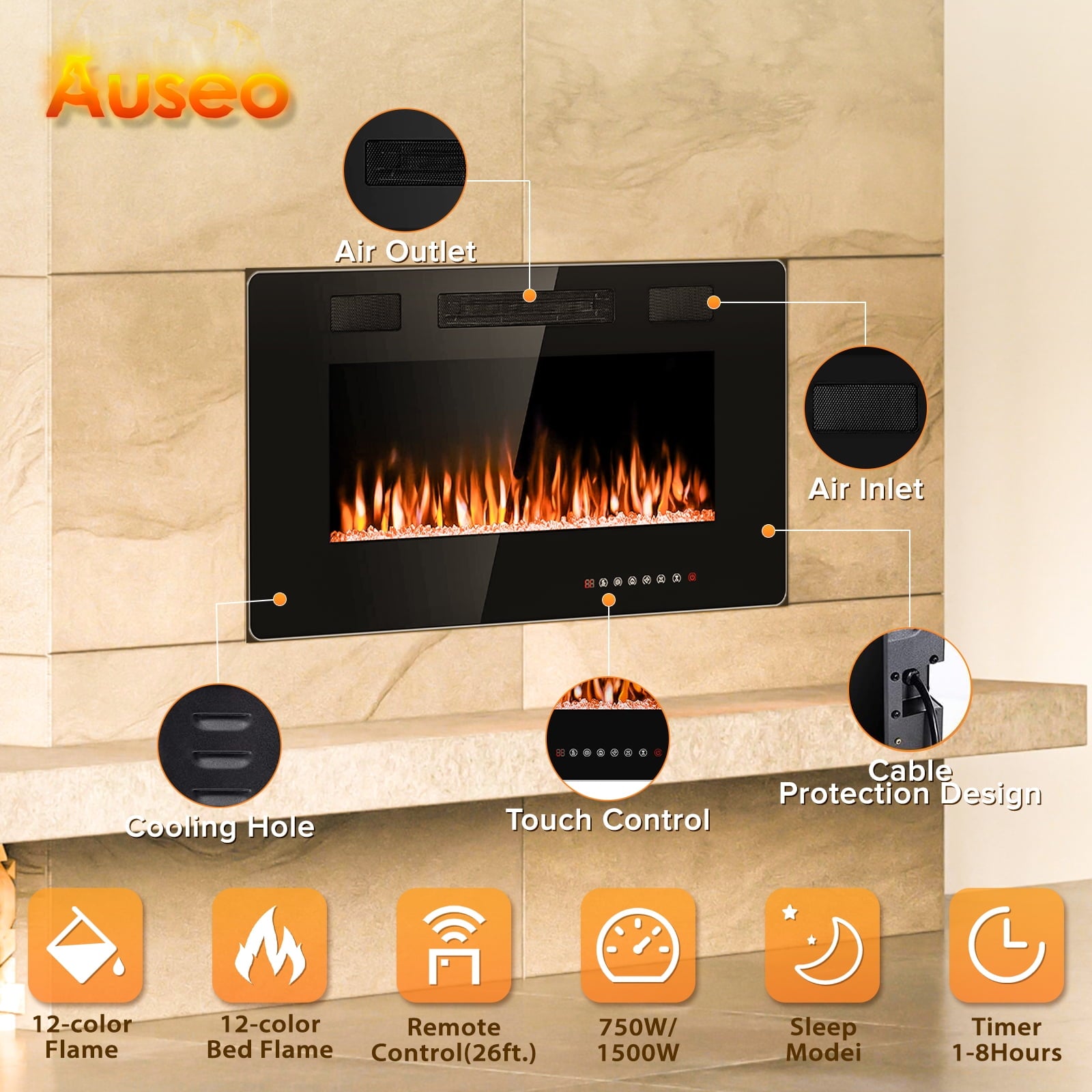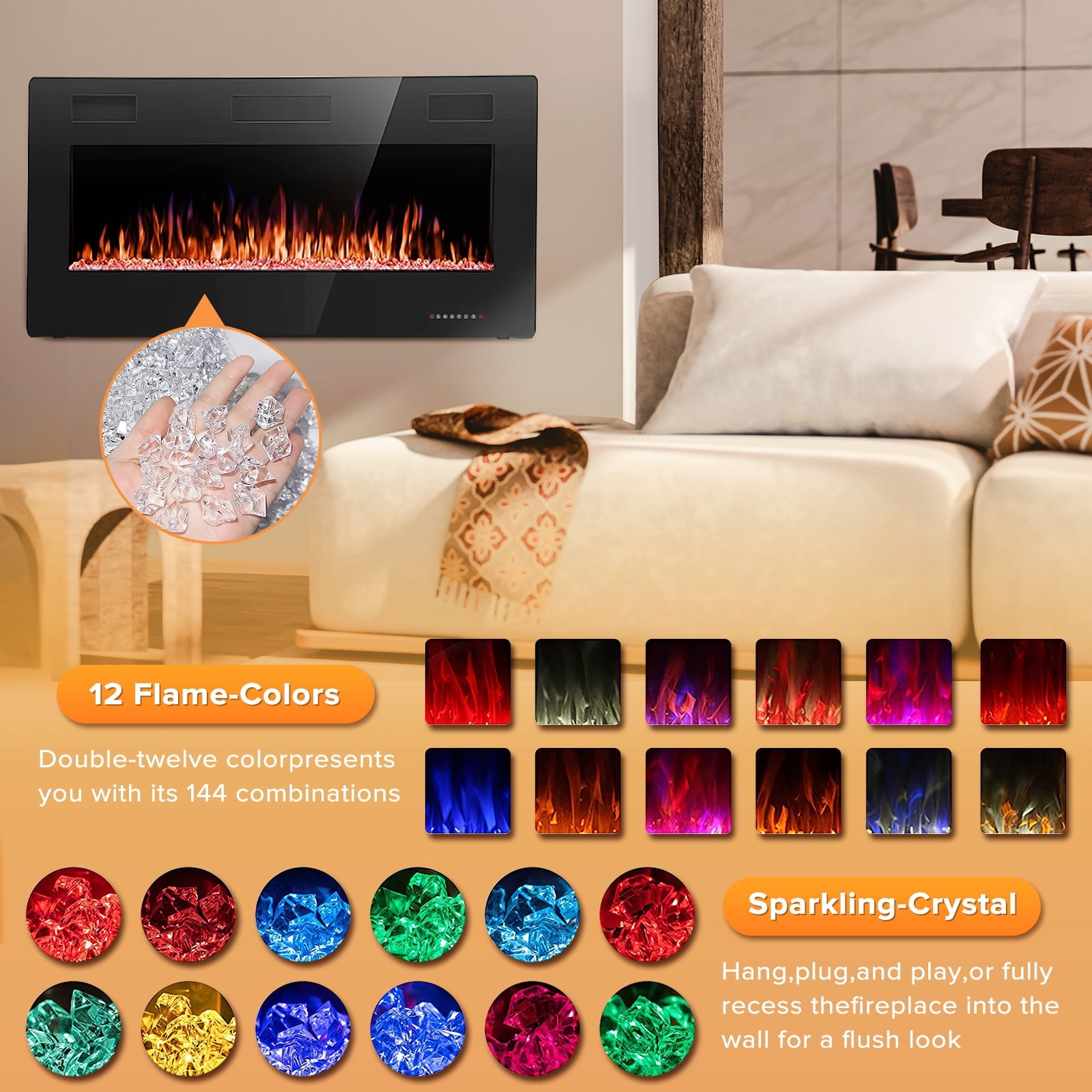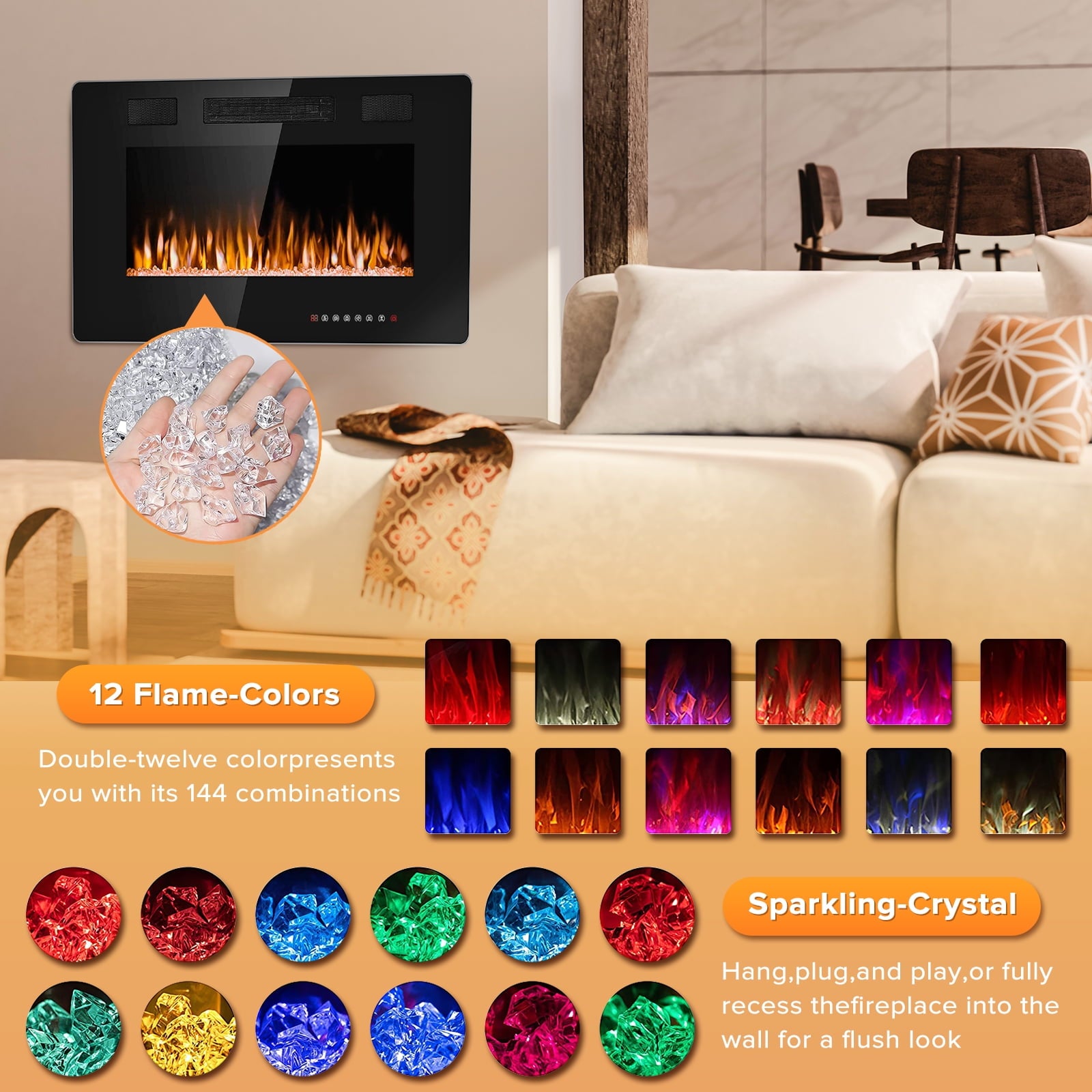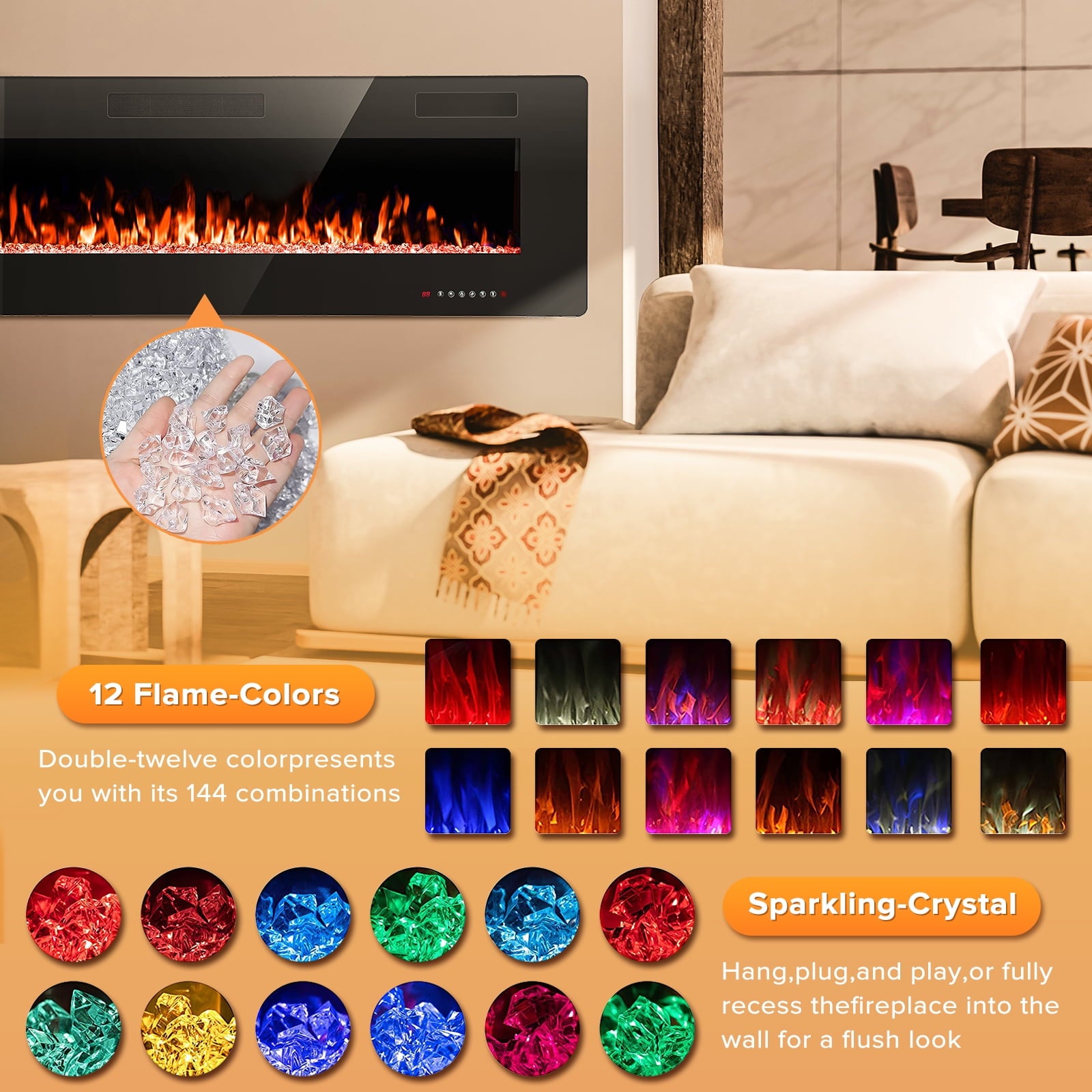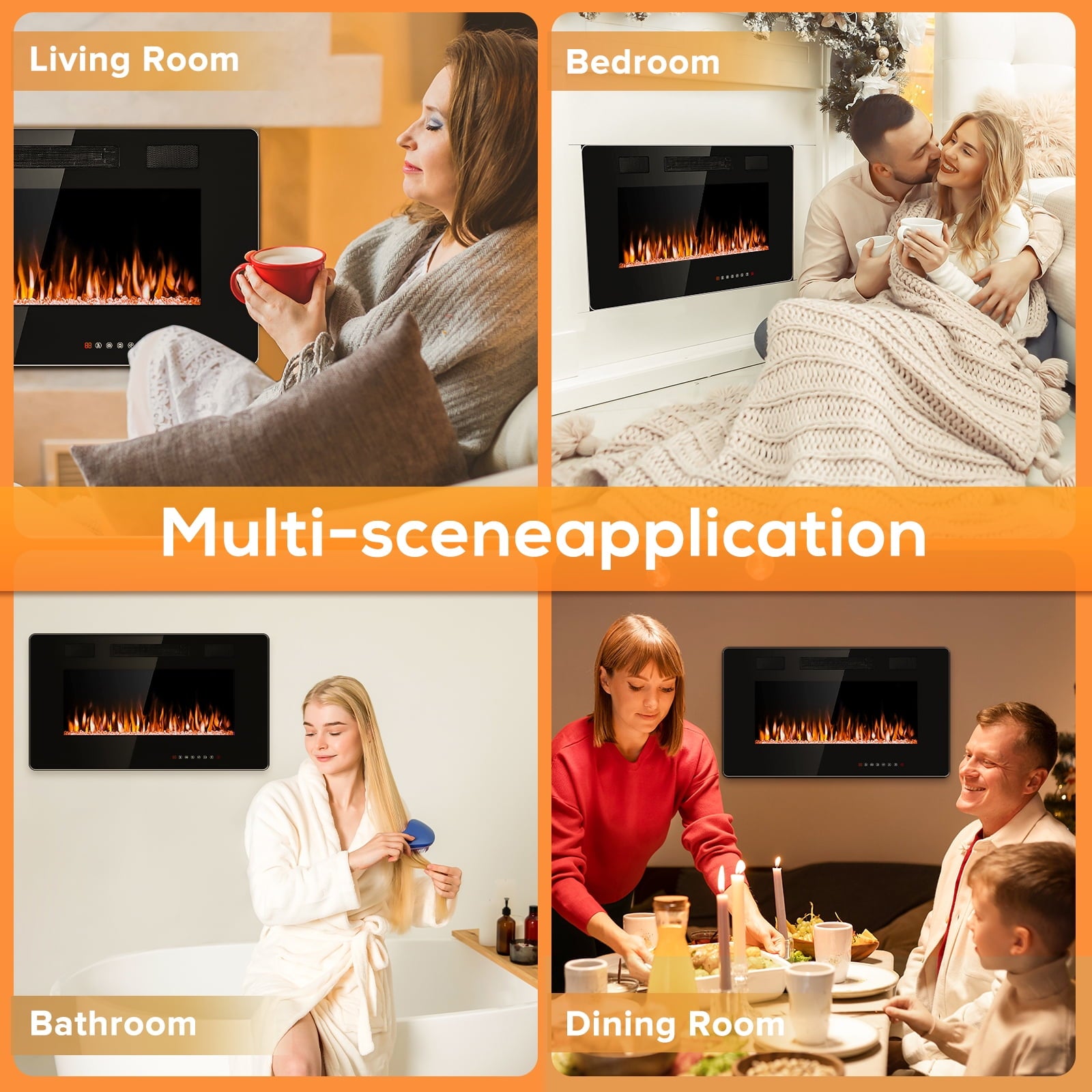 - While we have a touch screen, we also provide a remote control. So you can easily adjust 12 flame and flame bed colors, 5 optional modes of flame speed and brightness, and 2 heating Settings of 750W/1500W. Adapt to multiple needs.