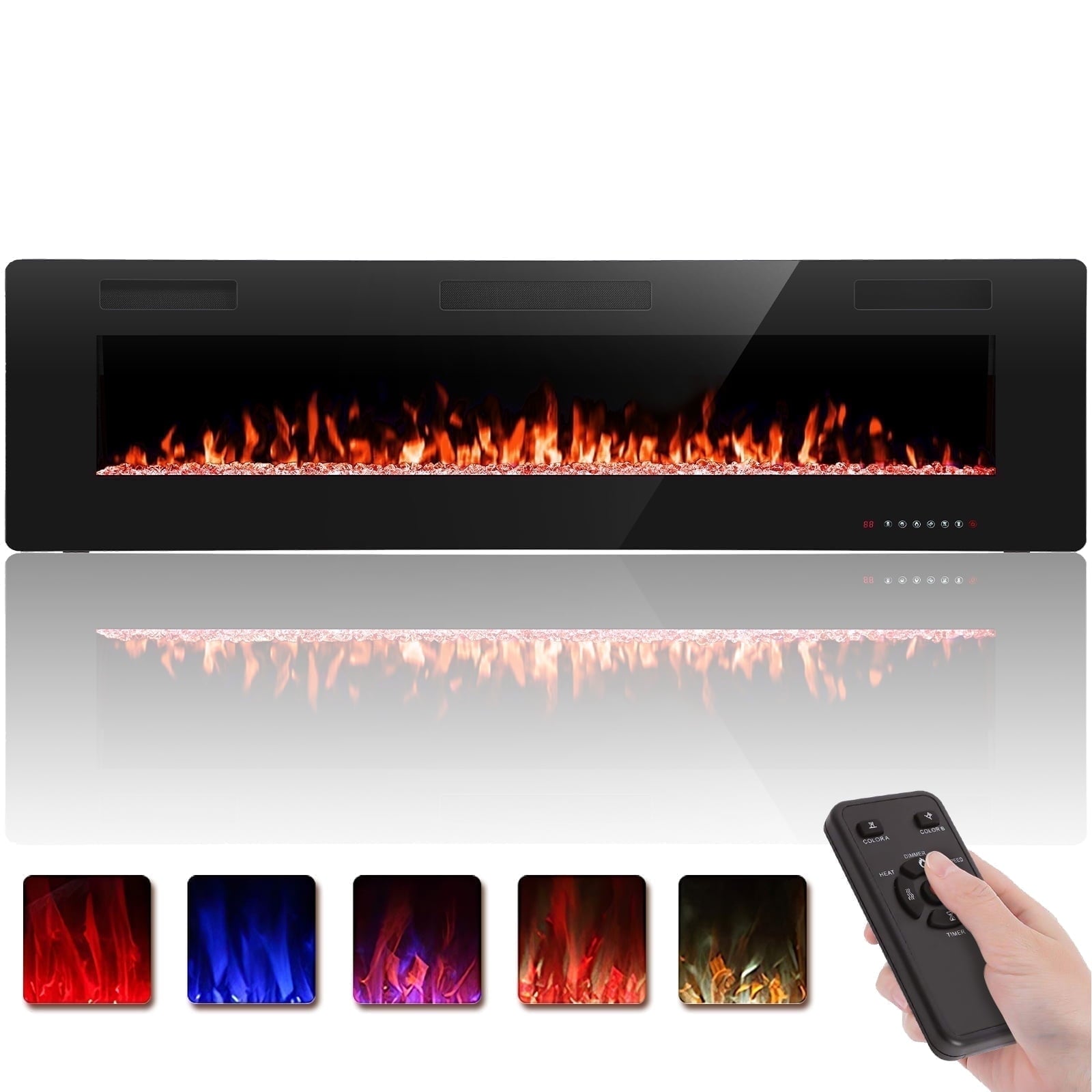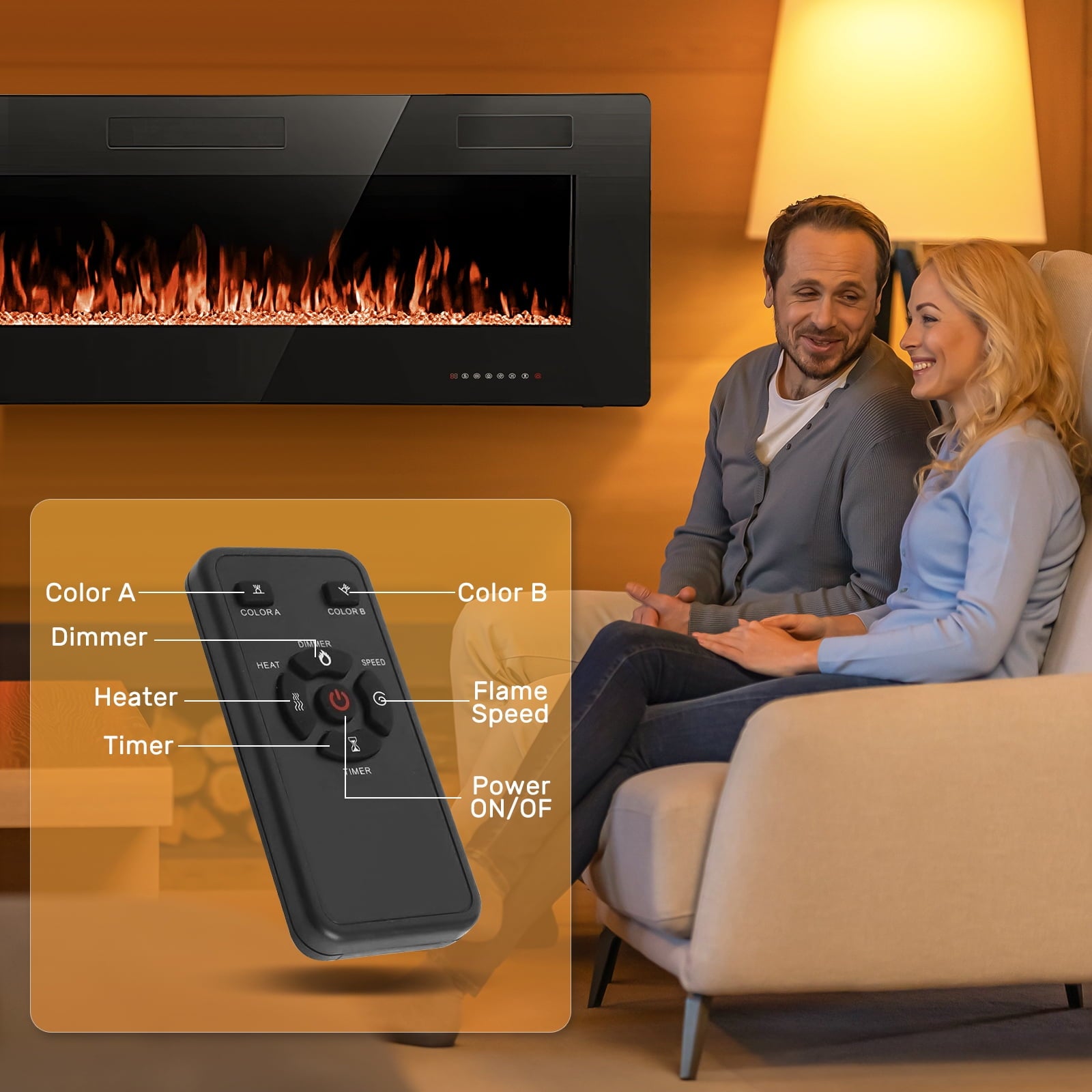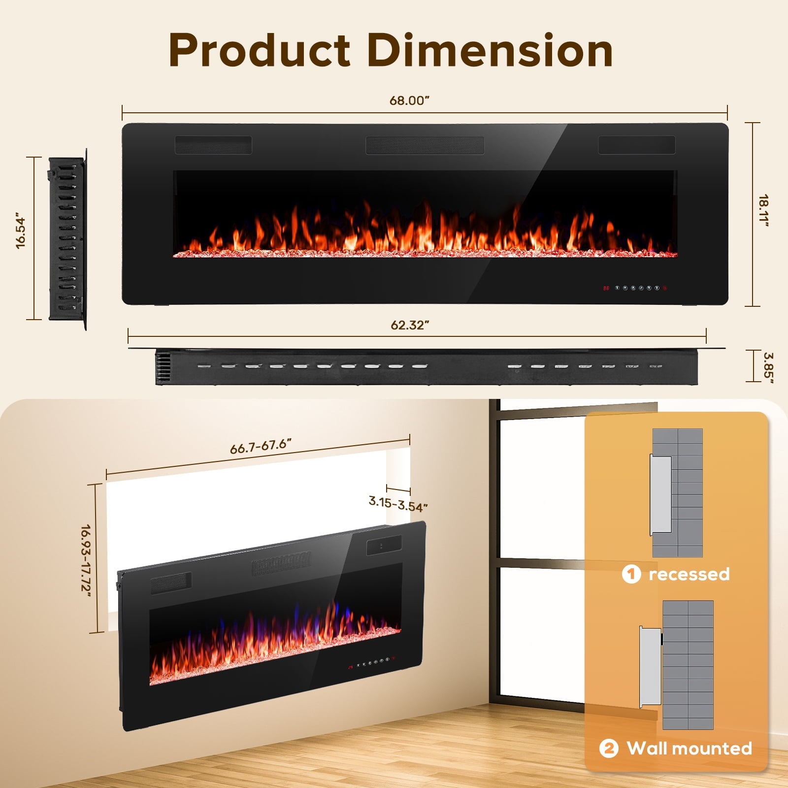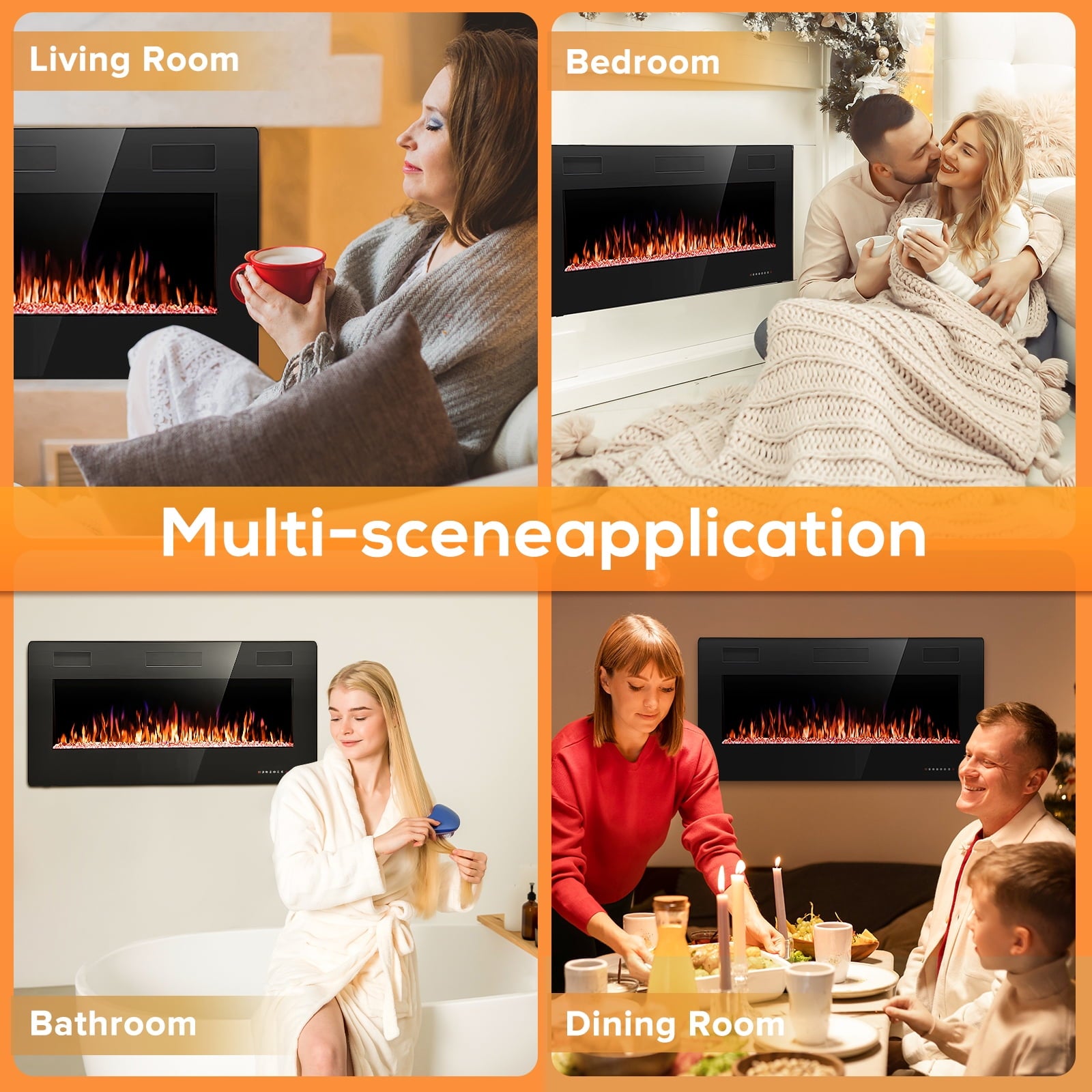 - Our electric fireplaces can be not only embedded or semi-embedded, but also wall-mounted. Size: 50*18.11*3.86 in. The ultra-thin thickness, only 3.85in, makes the overall style more beautiful, integrated into your decoration style.