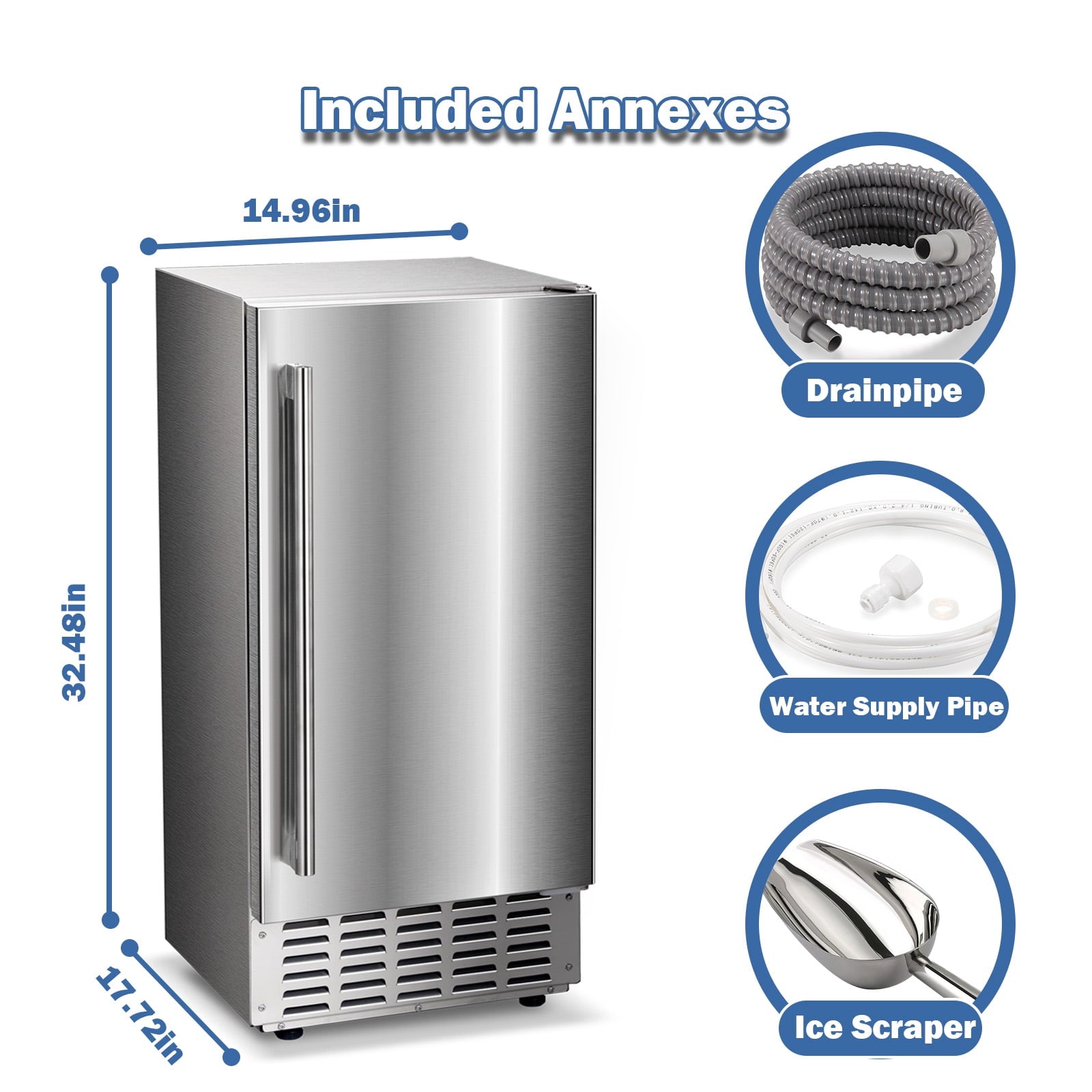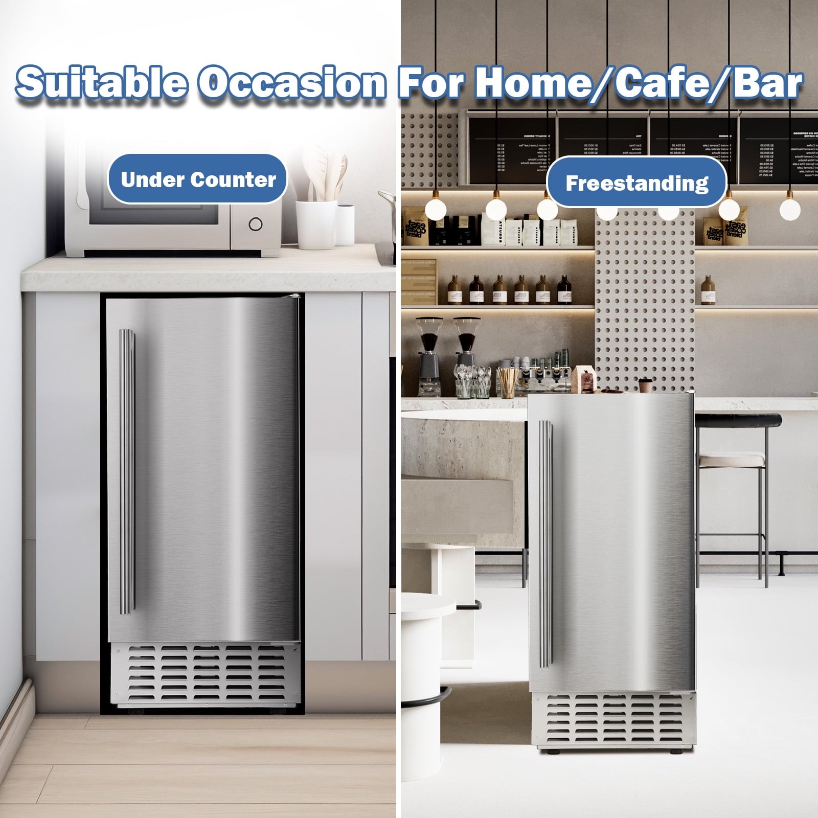 Auseo professional ice maker, with large-capacity ice storage design, completely bid farewell to the troubles of frequent ice adding, and can produce up to 66 pounds of high-quality ice cubes every day. Its multifunctional control panel makes it easy and quick to adjust the ice making time. It also adopts anti-fingerprint stainless steel door design, which is beautiful, easy to clean and maintain, and shows high-end texture. It is an ideal choice for family bars or small commercial spaces.