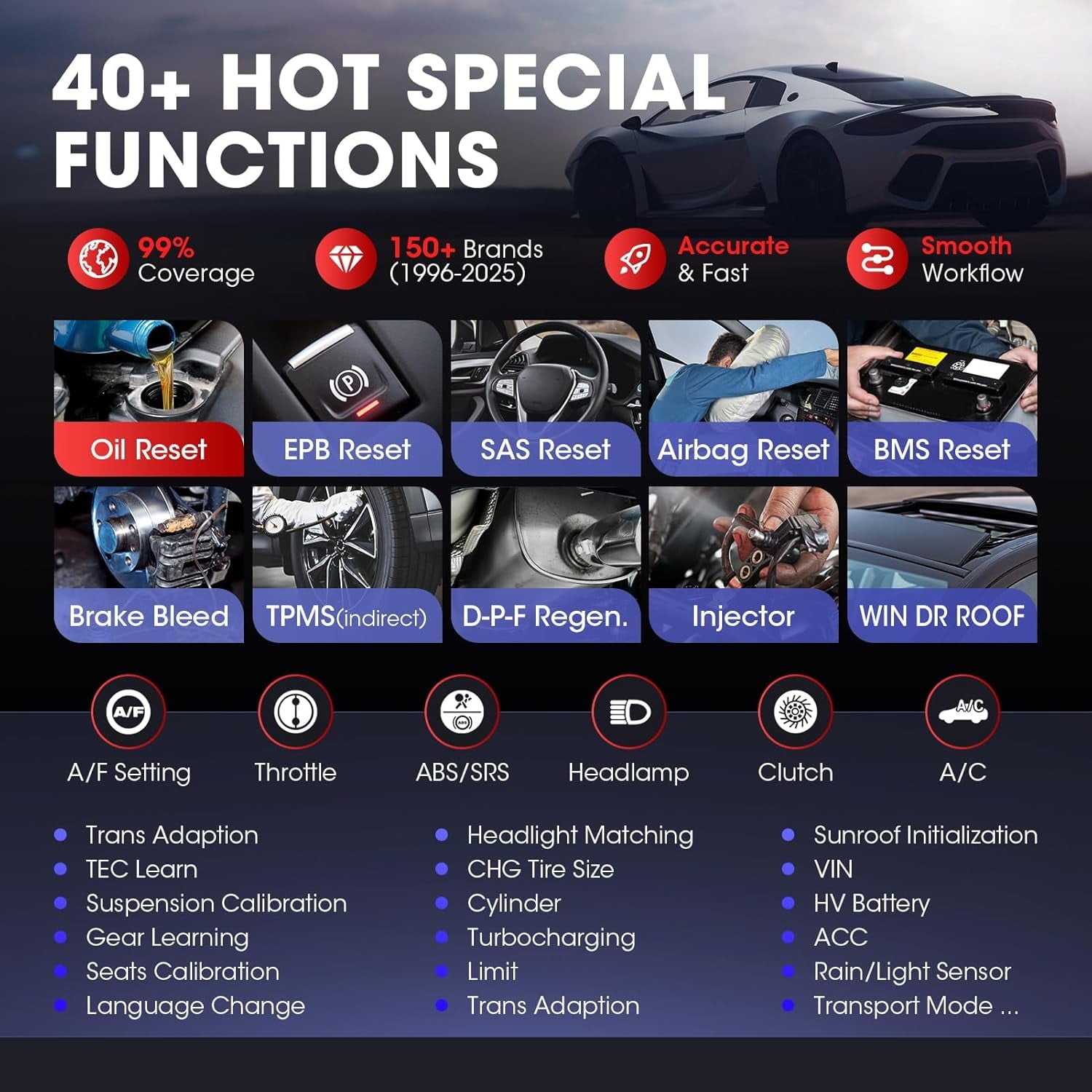 • All Systems diagnostics for U.S., Asian, and European vehicles, 1996 and newer • Extensive Service Menu, including EPB, SAS, Oil Light Reset, and BMS