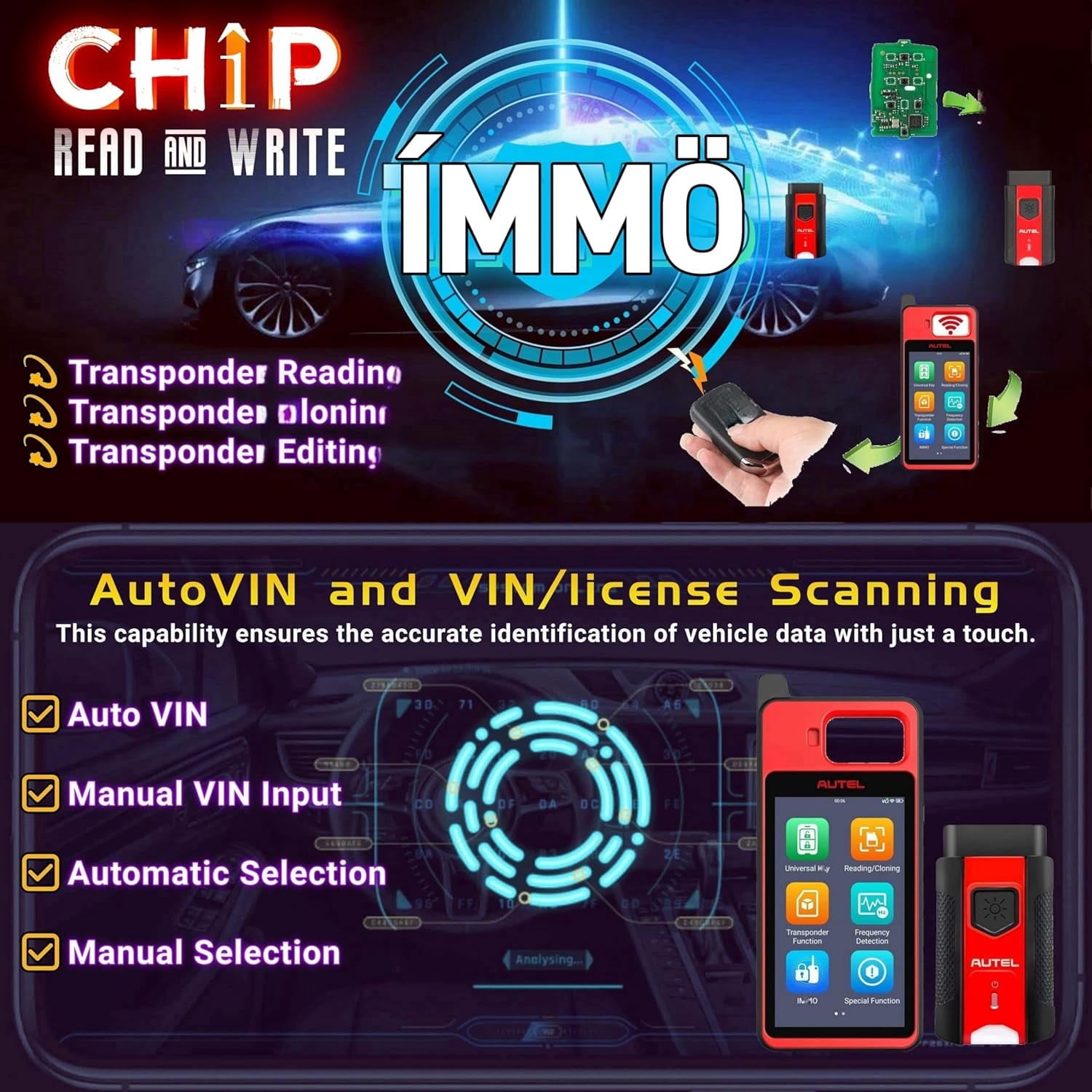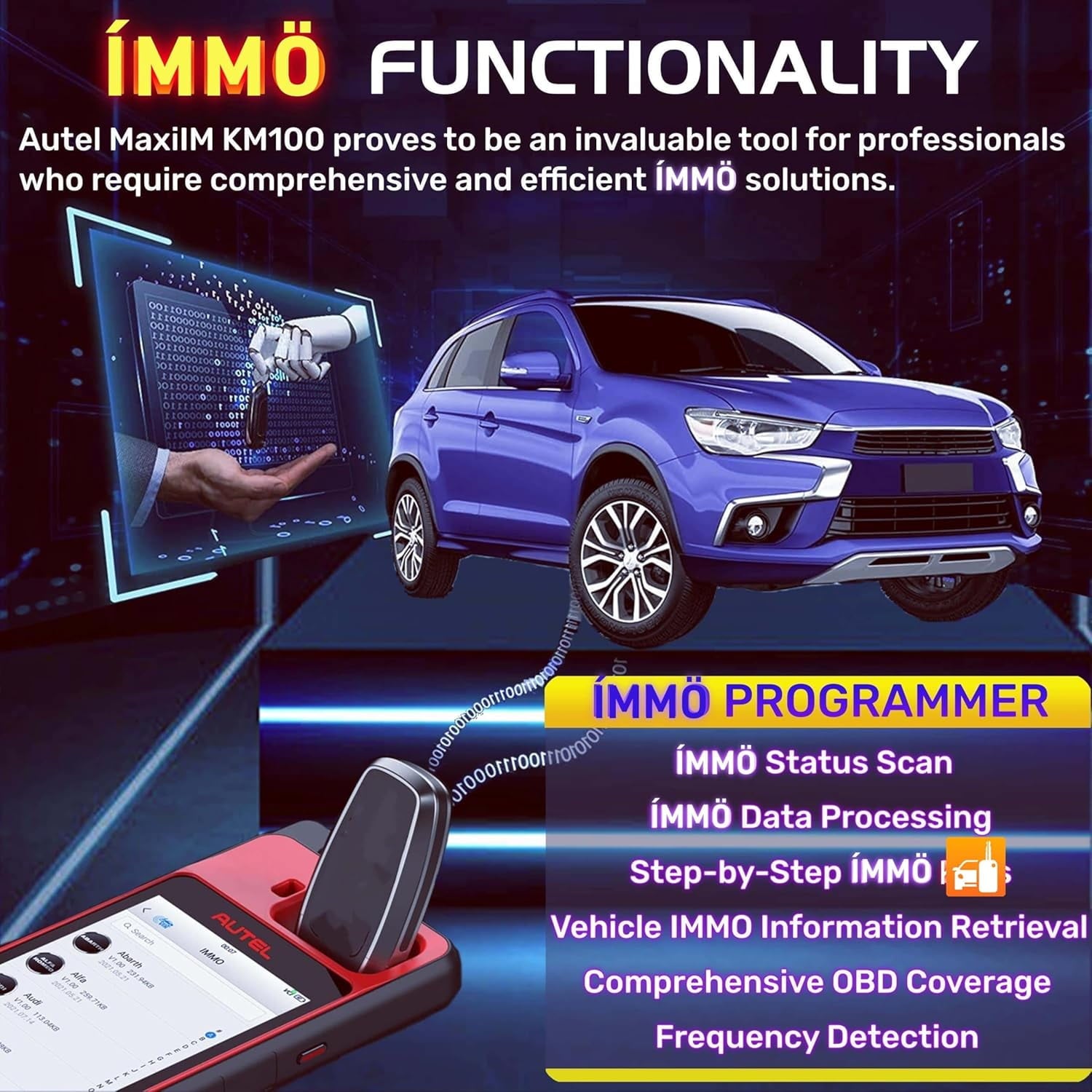 Autel MaxiIM KM100 Key Fob Programmer Immobilizer Tool with 2pcs Blank IKEY 60s Key Generation OBD IMMO/Key Learning Transponder Editing Chip Read/Write/Clone Frequency Detection Lite IM508 IM608 PRO