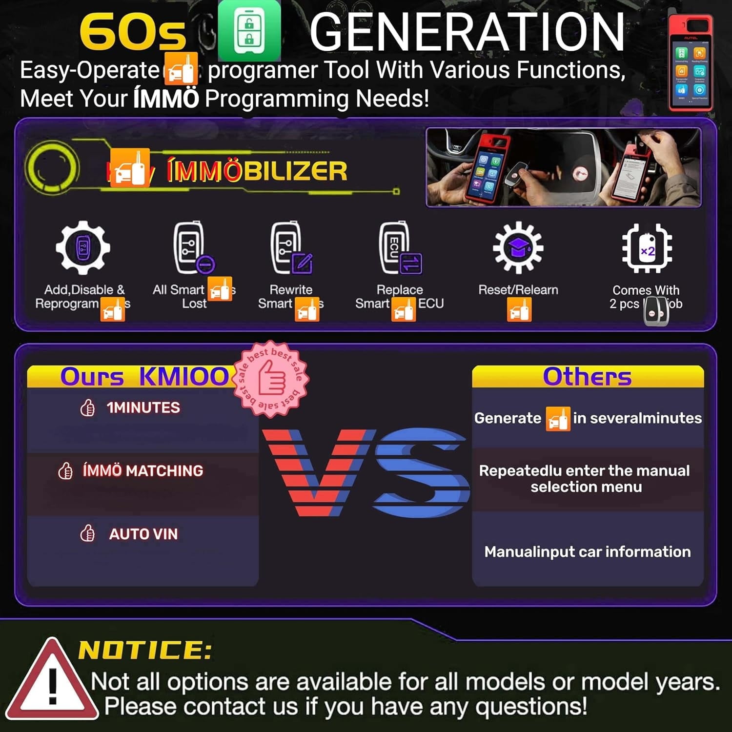 • ☆☆☆This 5.5-inch,KM100 Universal Key Generator Toolkit is Autel’s latest smart car key programming tool in 2022, professionally used for universal transponders and key generation, new keys, transponder write/read/clone, etc Advanced key function. Autel Ke-y Programmer KM100 can program Autel’s IKE-Y as smart ke-y replacement for more than 700 vehicles within 1 minute. Technicians can perform ke-y learning directly right after generation, ke-y programming efficiency has been increased at least 50%.