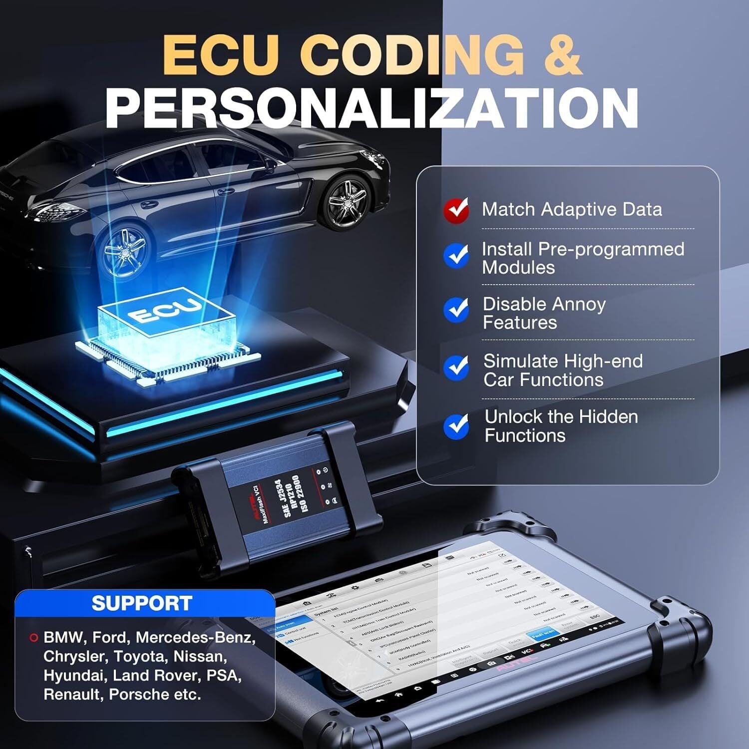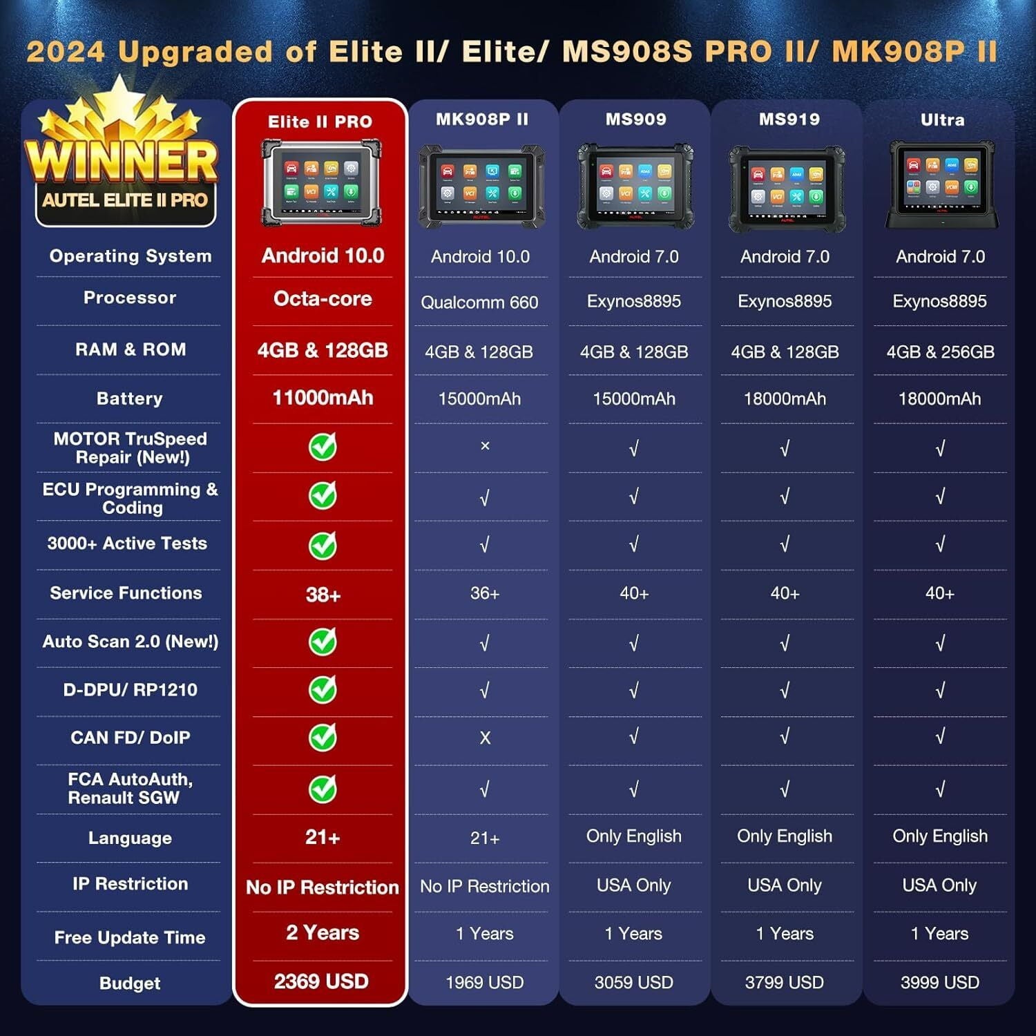 [8X Faster AutoScan 2.0 & 10+ Advanced Functions ] As Autel’s most cost-effective device, Elite II Pro combines 10+ high-end features (such as power balance, guided functions, pre&post scan, etc.)