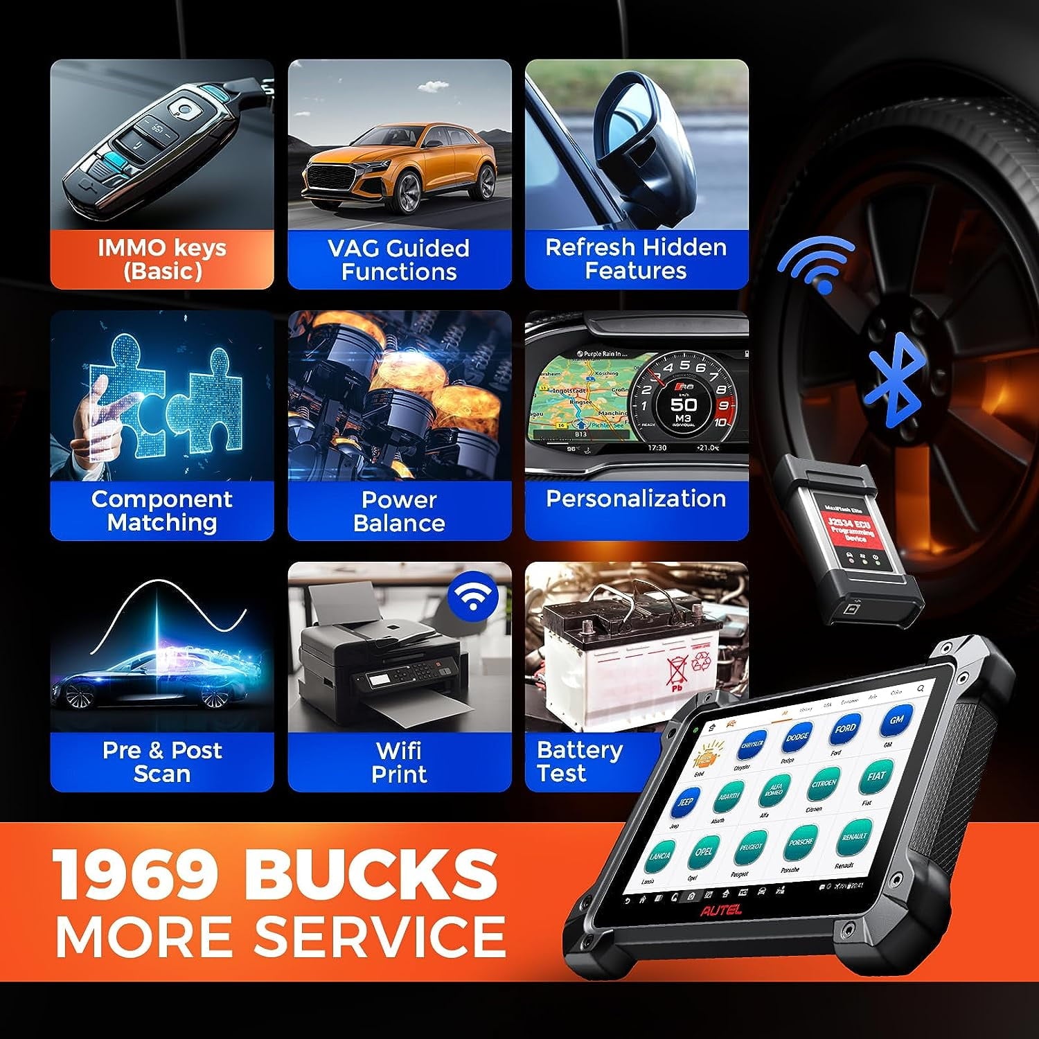 - ✅ PreSCAN & PostSCAN + Autel Cloud + Wi-Fi Printing: for more efficient repair work.