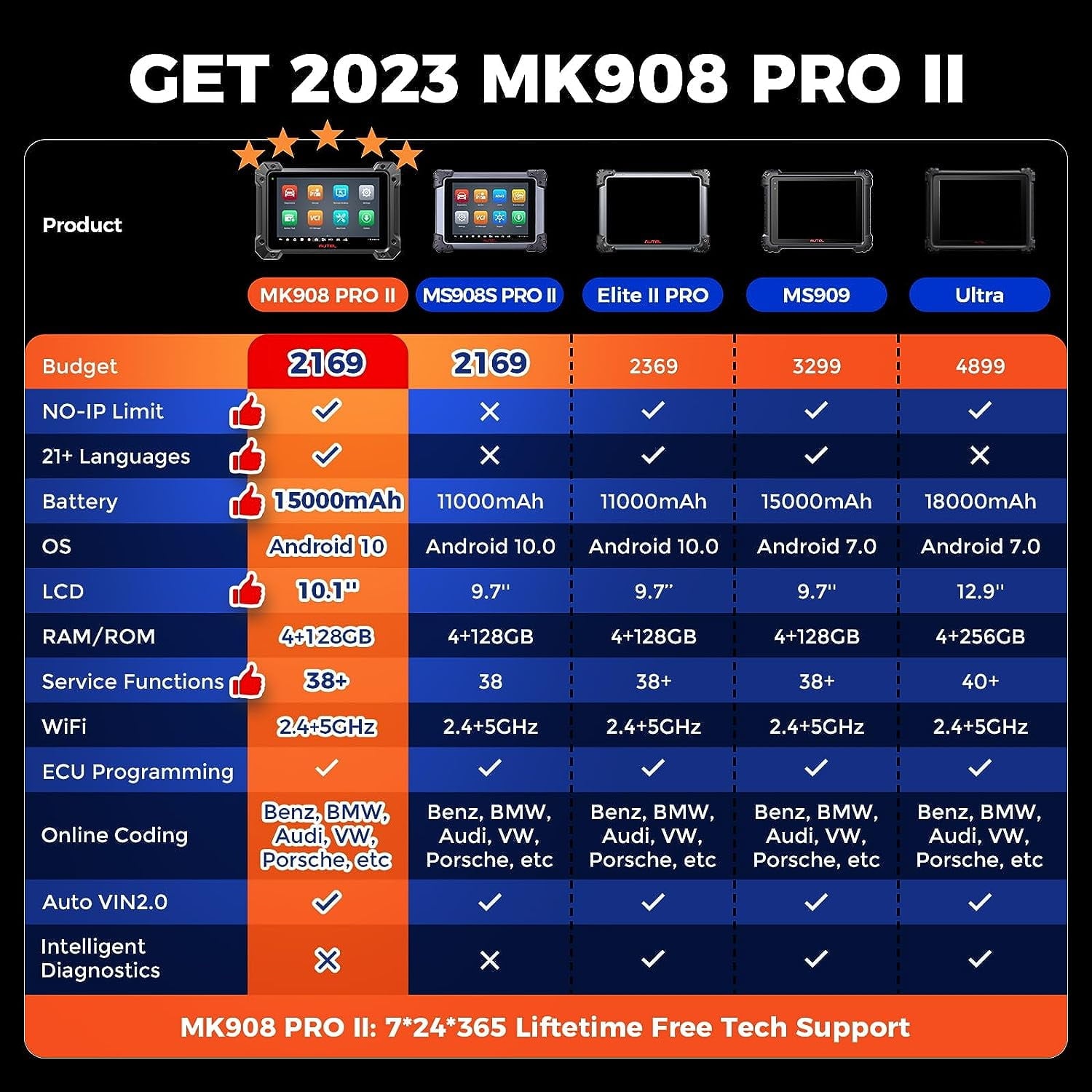- ✅ Overall by Function: MS909 > Elite II > MK908P II > MK908P > MS908S PRO > MS908 > MK906 PRO.