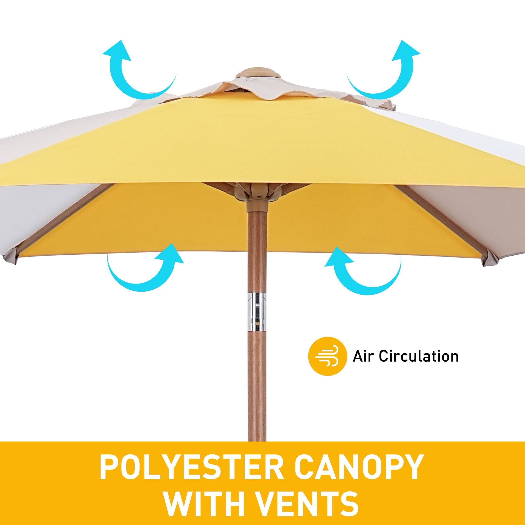 7.5 ft diameter patio umbrellas for extra strength, featuring heavy-duty fabric is especially designed to keep you cool and comfortable. Our 7.5 feet outdoor umbrellas are perfect for table with 2 to 4 chairs, is a perfect and essential for summer or sunny day to shade sunshine.NOTE: