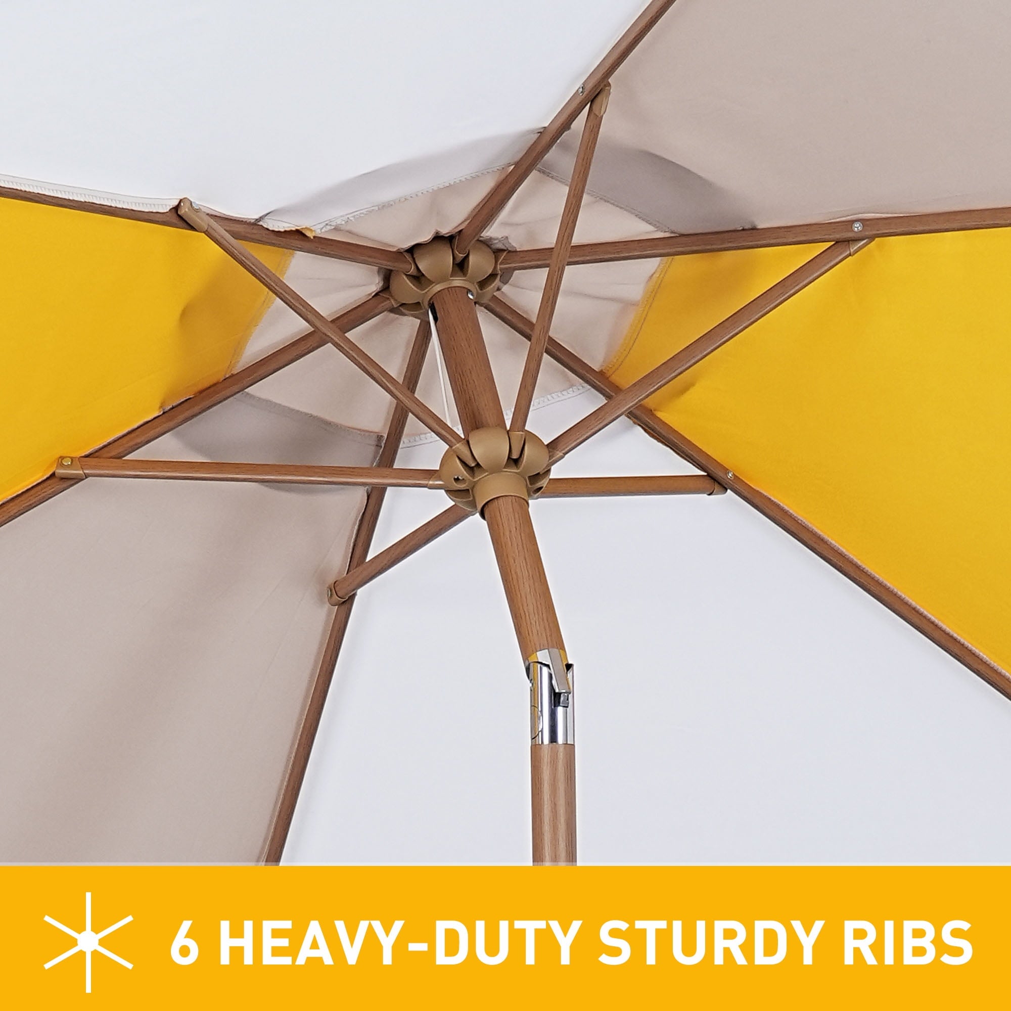For a seamless opening and closing system. The tilting component of this pool umbrella is made from zinc-alloy, a very light, strong and durable metal that will withstand the many tilting.Heavy-duty Umbrella Frame: