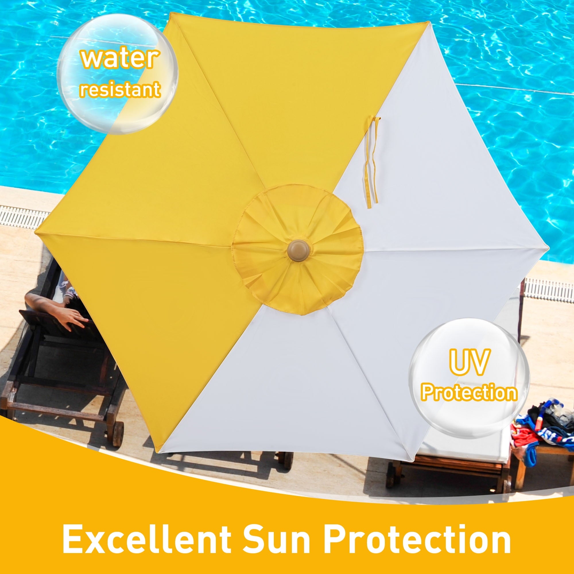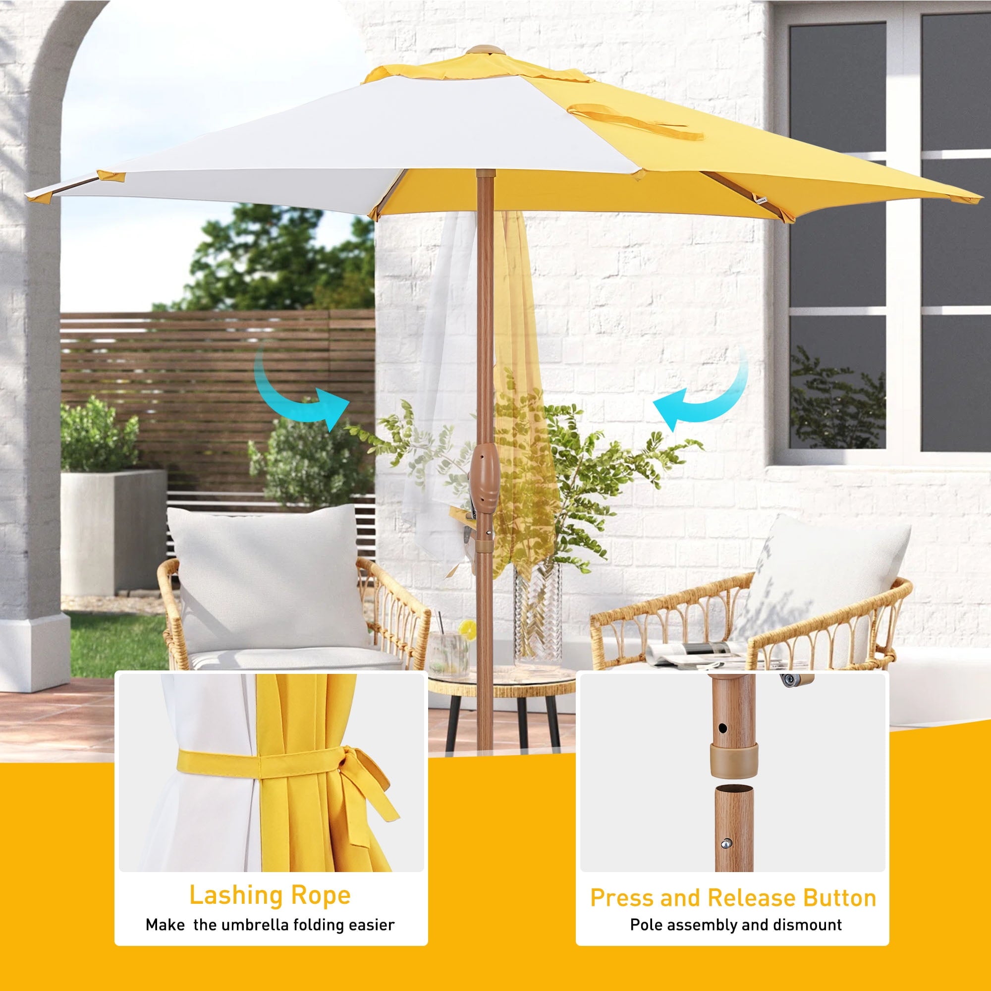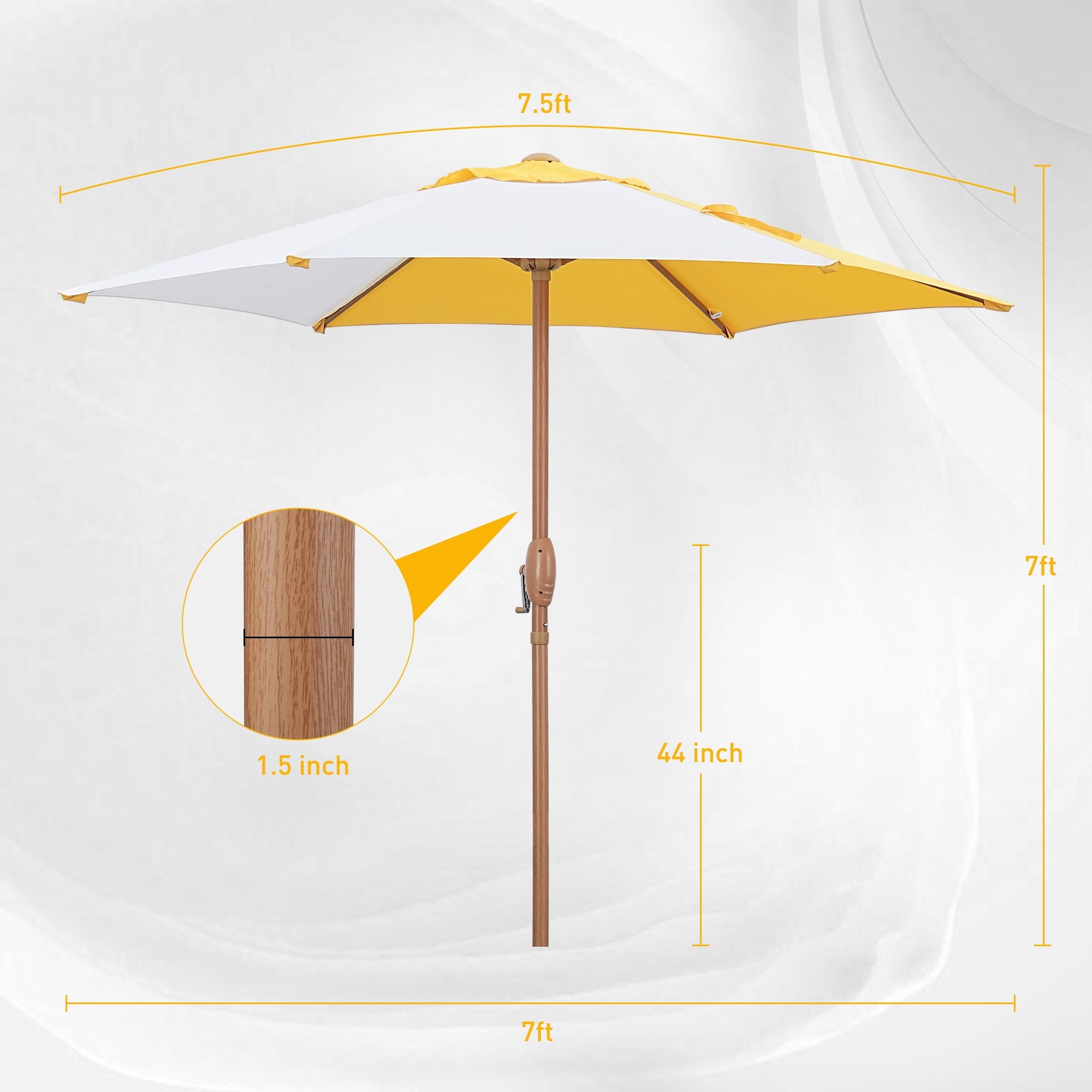 Autlaycil 7.5ft Patio Umbrella, Sun Shelter UV 50+ Plus Protection Beach Umbrellas Sunshade for Market, Patio, Pool, Garden Backyard (Yellow and White)