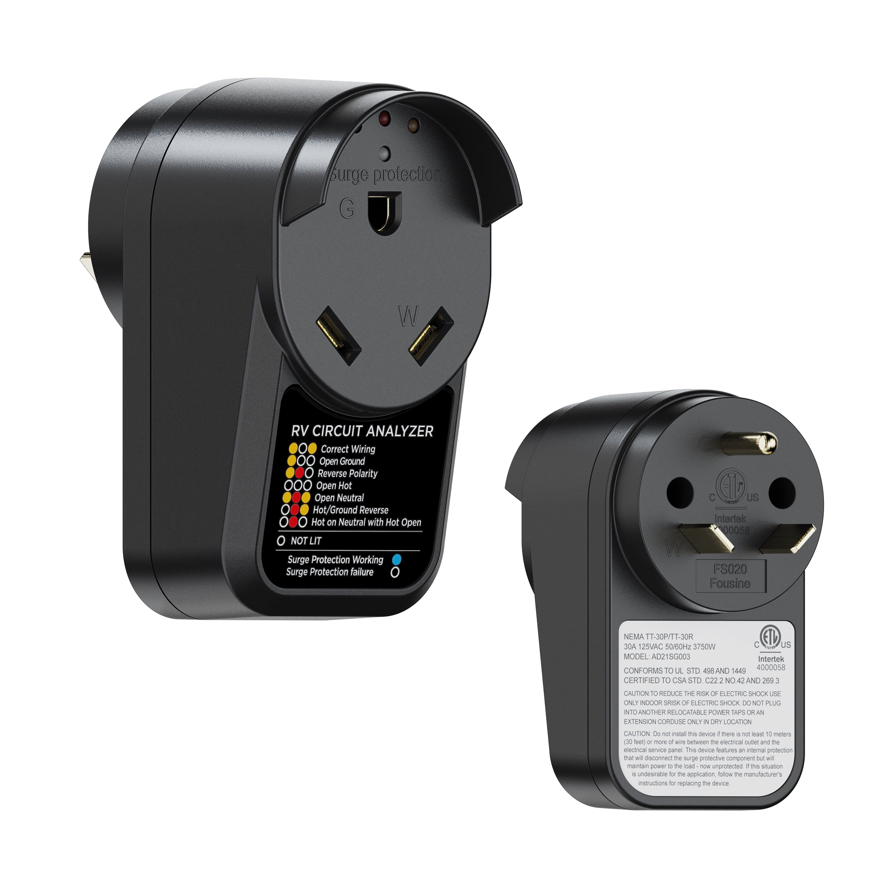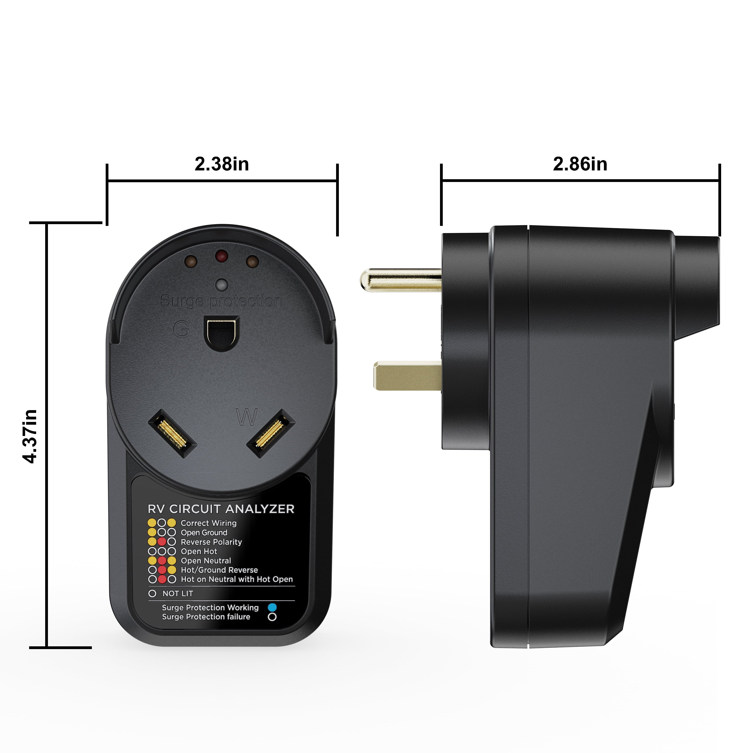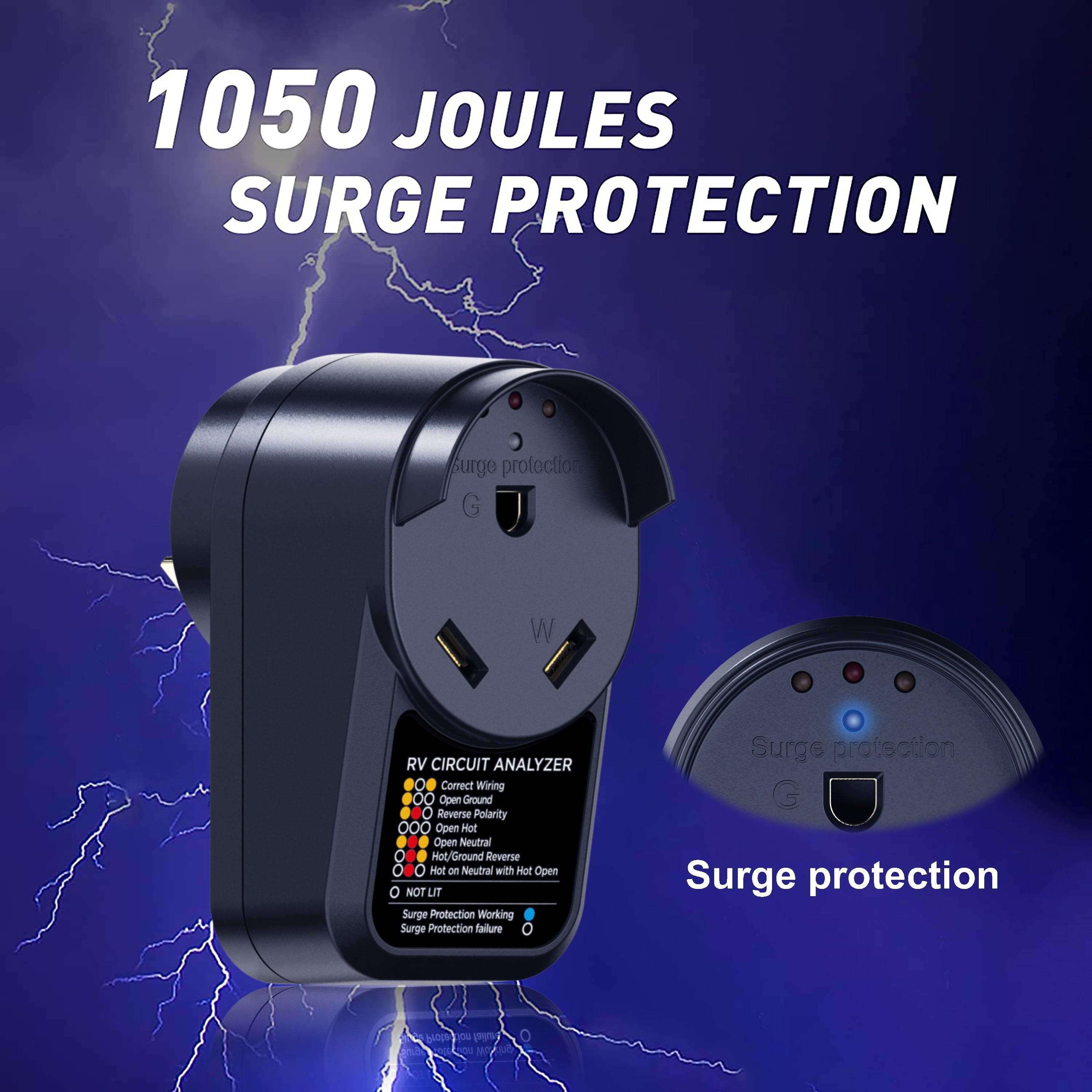 This RV adapter circuit analyzer are used to detect whether electrical piles in campground are wired wrong, ensure the safety of your electronics, surge protector up to 1050 joules, protect your RV from power surges. 30 Amp male to 30 Amp female adapter for you to convert the power at campground to fit for your 30 Amp RV, a easy power conversion, worry-free about the mismatching power at campground, more stable and safer wire connection. Plug circuit analyzer into the receptacle before plugging in the camper cord. The LED light illuminate to show power status, when the indicator light shows the wrong connection, it will remind you, avoid your RV from sustained permanent damage.