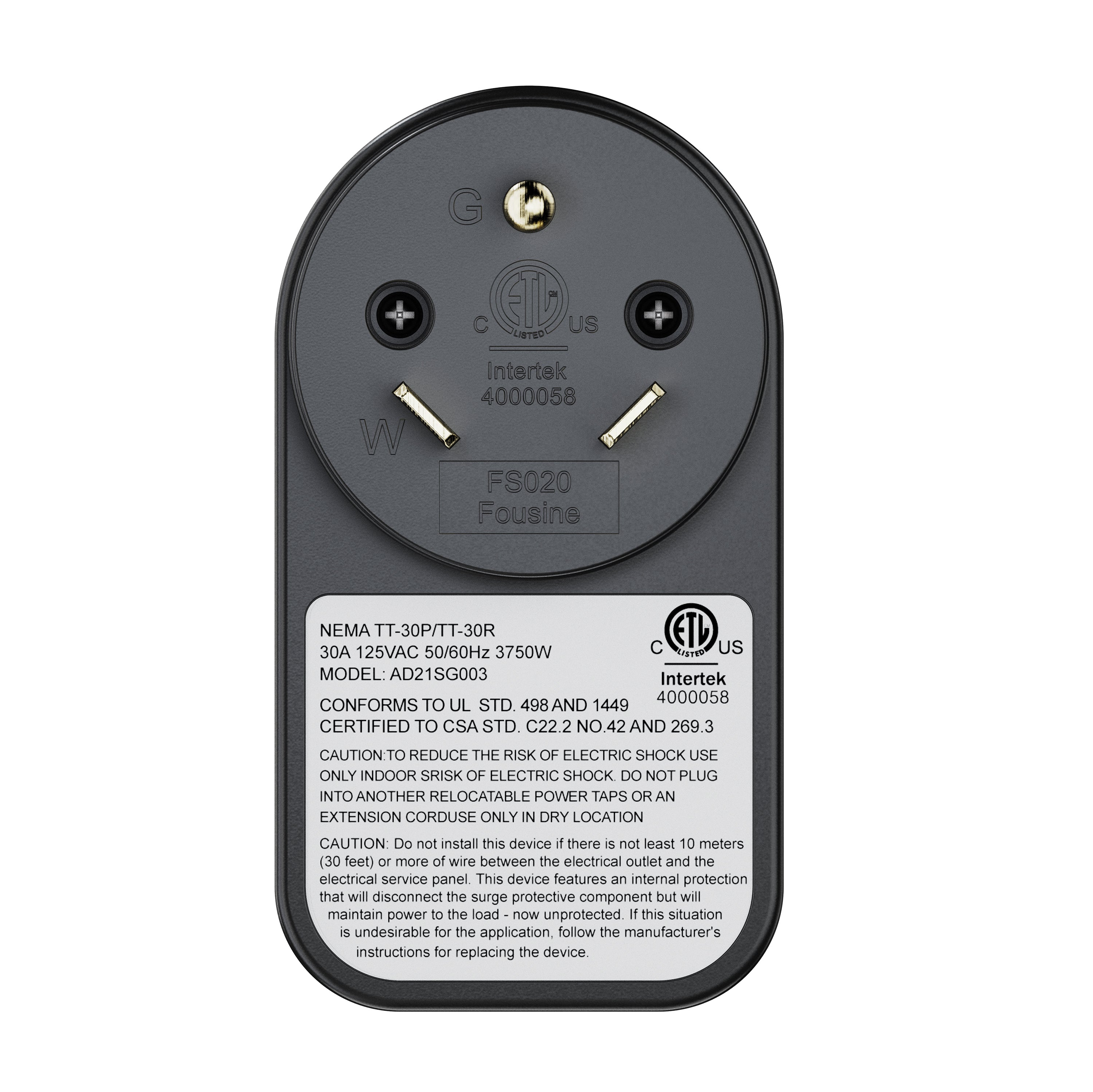 - 30-Amp male (NEMA TT-30P)/30-Amp female (NEMA TT-30R), 3750W