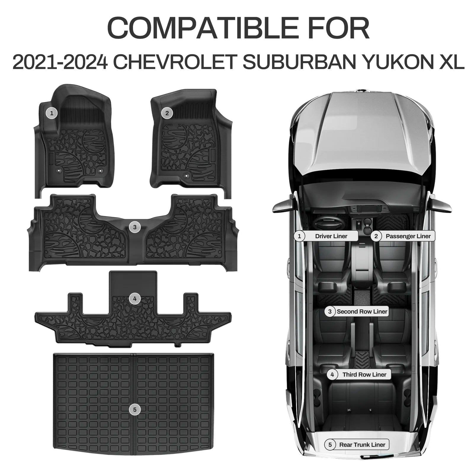 - Auto Drive Floor Mats Liner For 2021-2023 2024 Chevrolet Suburban GMC Yukon XL 2nd Row Bucket