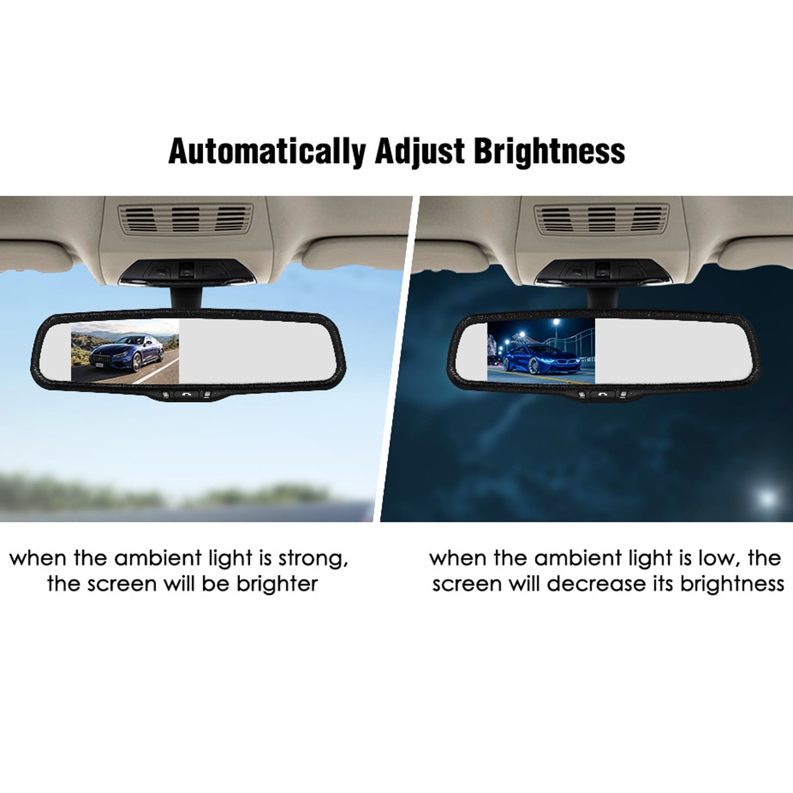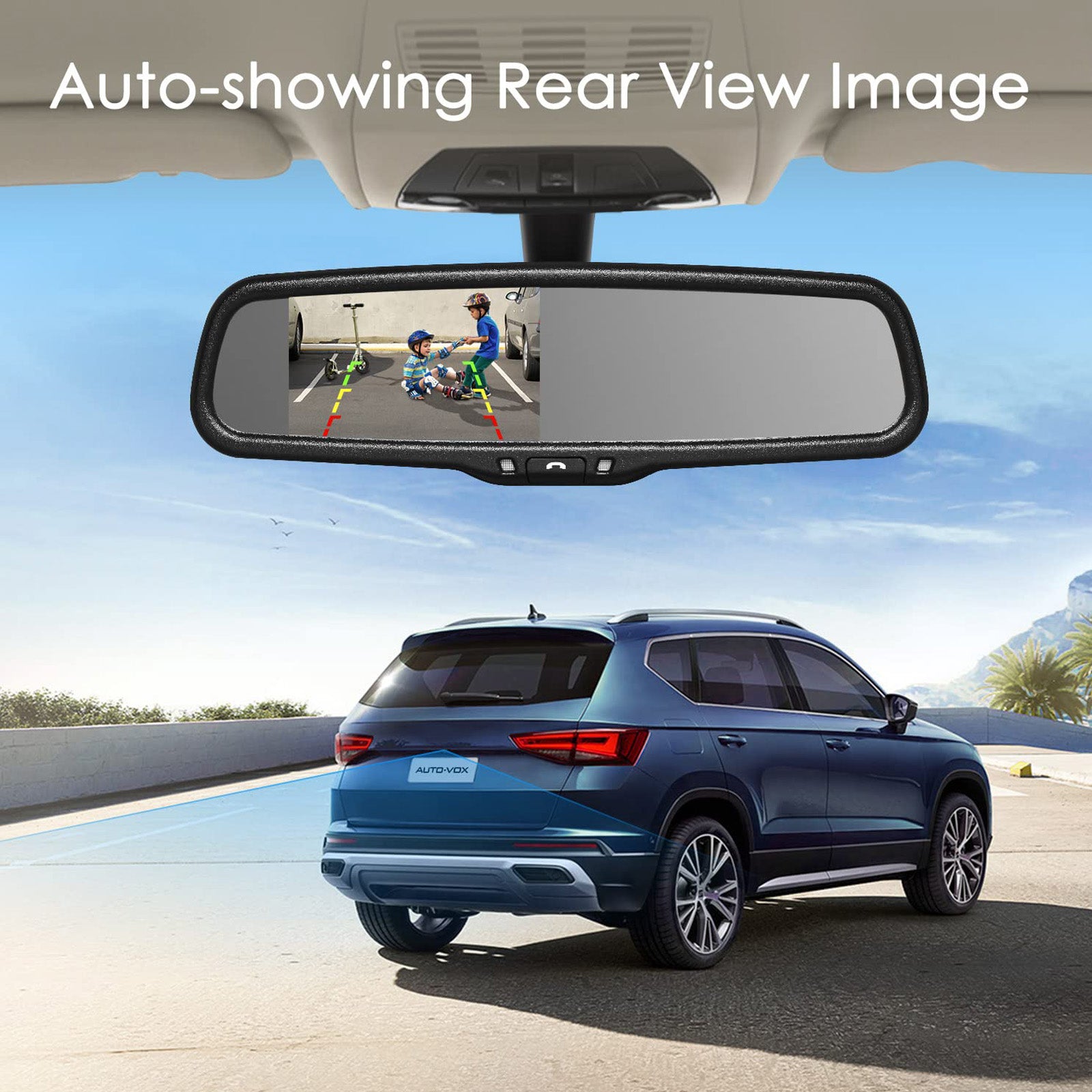 Auto-Vox T2 Backup Camera OEM Rear View Mirror Monitor Kit, with IP68 Waterproof Rear View Camera, Super Night Vision for Parking & Reversing enables you to drive on foggy, rainy, or snowy days without worries about camera water damage. 6 LED lights to Enhance the Night Vision. LED lights turn on automatically in a low-light environment, providing you with a clear image at night. Single Cable Installation, the screen is powered by the reverse light without a car charger, for keeping the vehicle’s internal environment clean and tidy. Instantly Show, Rear View Image Making the reversing like a breeze. Applicable for most car models, the equipped 3 brackets ensure that T2 can fit 90% of mainstream vehicles in the U.S.