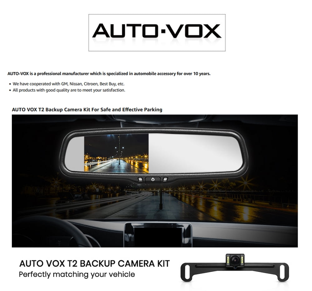 AUTO-VOX T2 Backup Camera for Car/Trucks, OEM Look Rear View Mirror Camera Monitor can show HD parking image even in dark areas with the help of 6 Led lights.