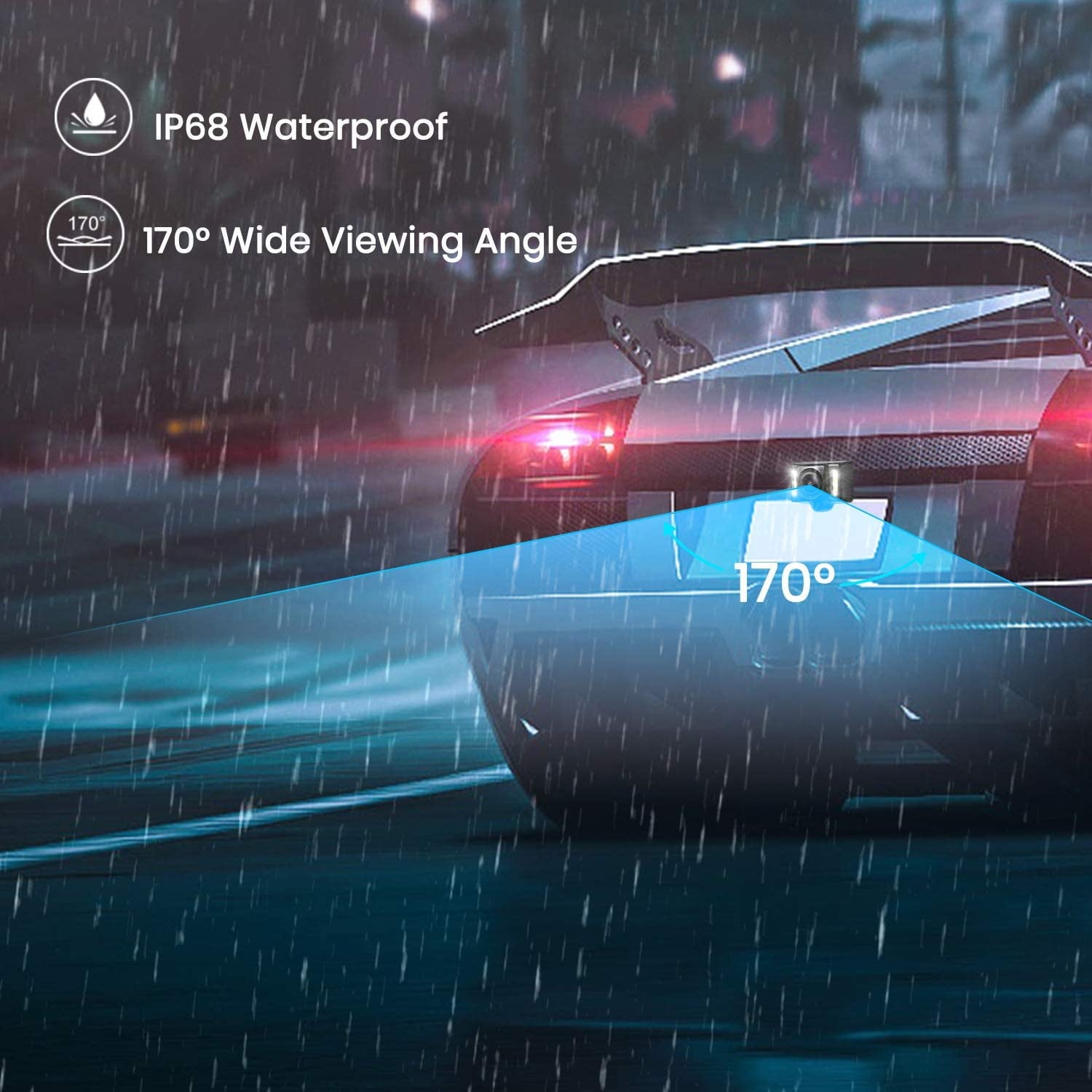 IP68 Waterproof Backup camera: Due to the fully sealed glue-filling craft and sturdy construction, the back up camera systems for car will never be foggy after the rain or car wash.
