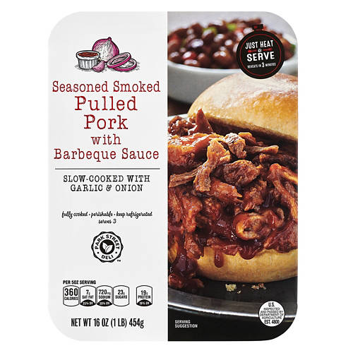 Take the guesswork out of tonight’s dinner with this Park Street Deli BBQ Pulled Pork! The seasoned and smoked pulled pork has been slow cooked with garlic and onion for a burst of flavor in every bite. Team yours with a toasted bun, baked beans, and creamy mac ‘n’ cheese for the perfect barbecue meal!
