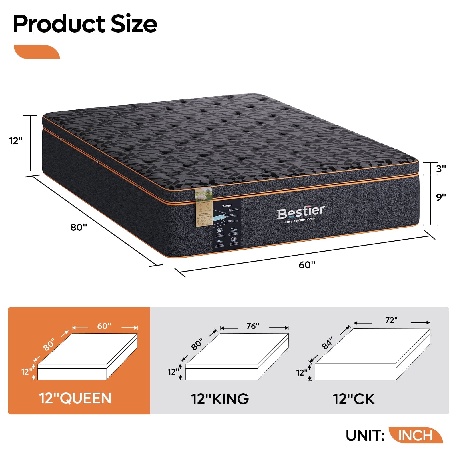 Elevate your sleep with the Bestier 12-inch Queen Size Plush Mattress. Designed with 11 luxurious layers, including organic wool and a plush detachable pillow top, this mattress delivers the perfect balance of comfort, support, and cooling technology. Whether you’re a side sleeper, a couple, or someone who needs extra cooling, we’ve got you covered.
