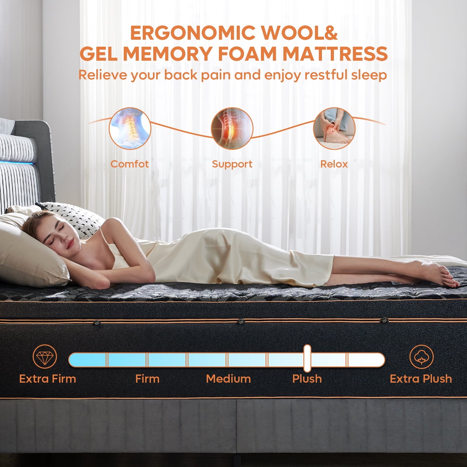1. Luxury Comfort & Pressure Relief: Plush pillow top and organic wool provide cloud-like comfort and body-conforming support, perfect for side sleepers.