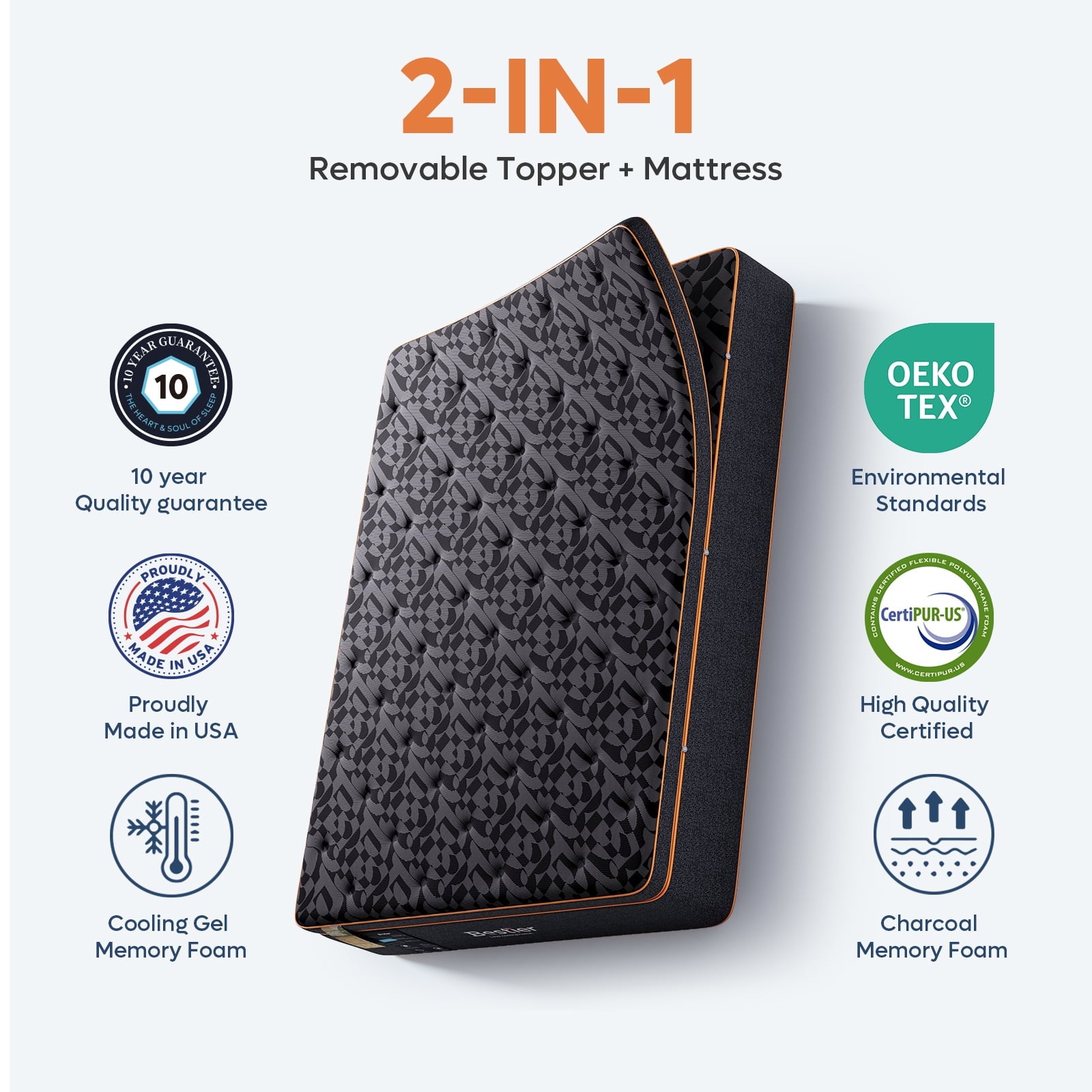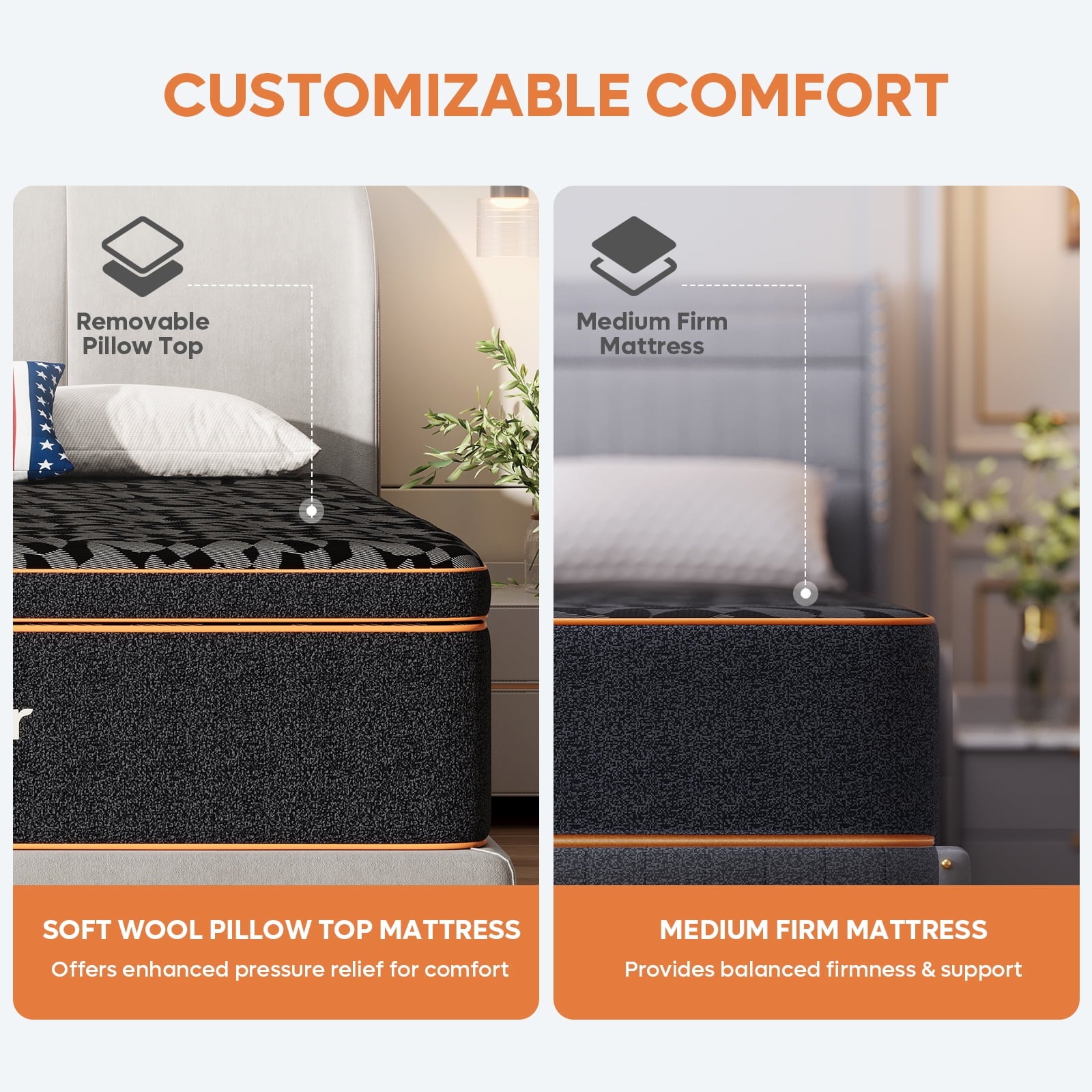 - 【Detachable Pillow Top】Customize your comfort level with the 3-inch plush detachable topper, allowing you to adjust the mattress to your preferred level of softness.