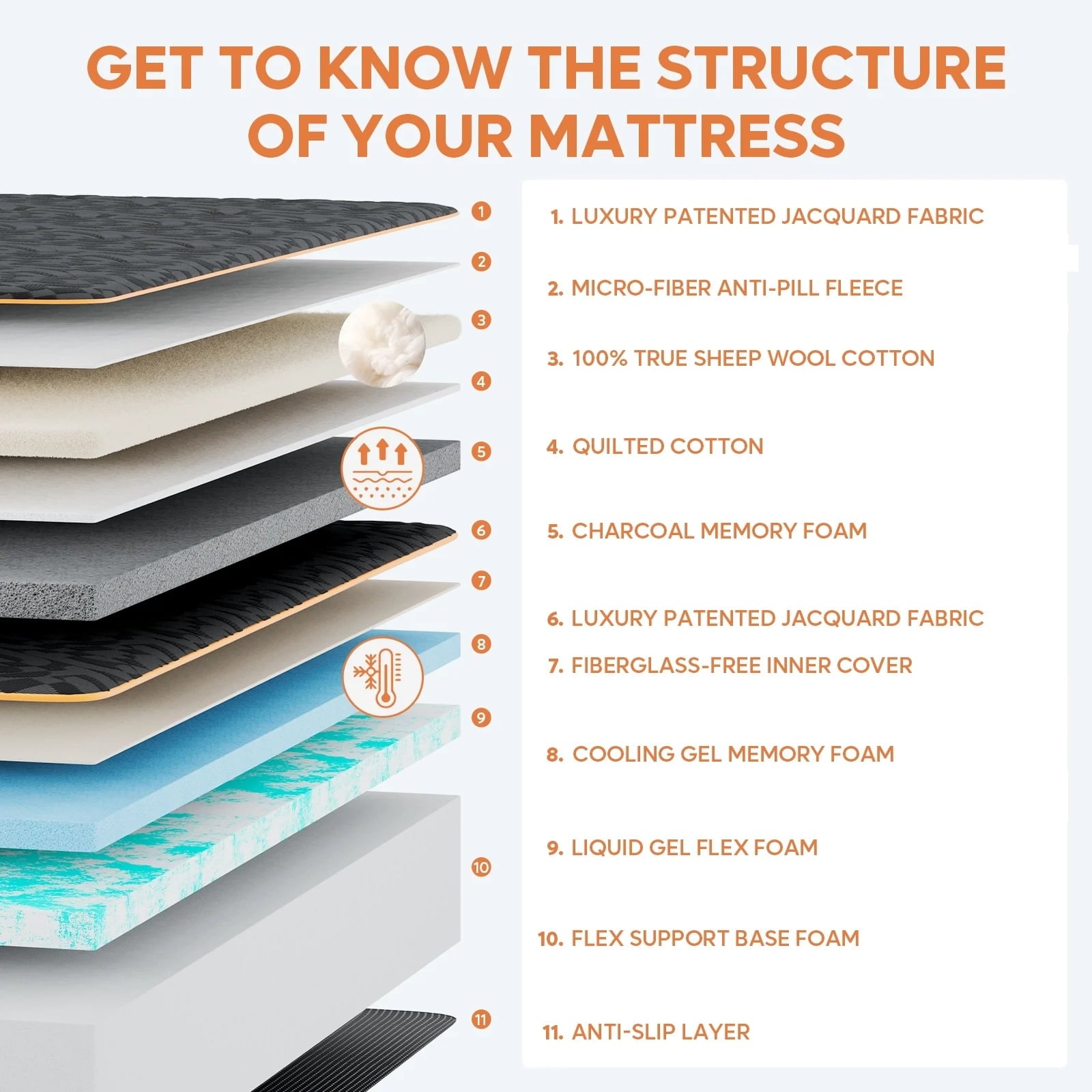 - 【Organic Mattress Layer】Experience the natural breathability and eco-friendliness of organic wool, ethically sourced from humane US farms, which enhances the mattress’s softness and comfort.