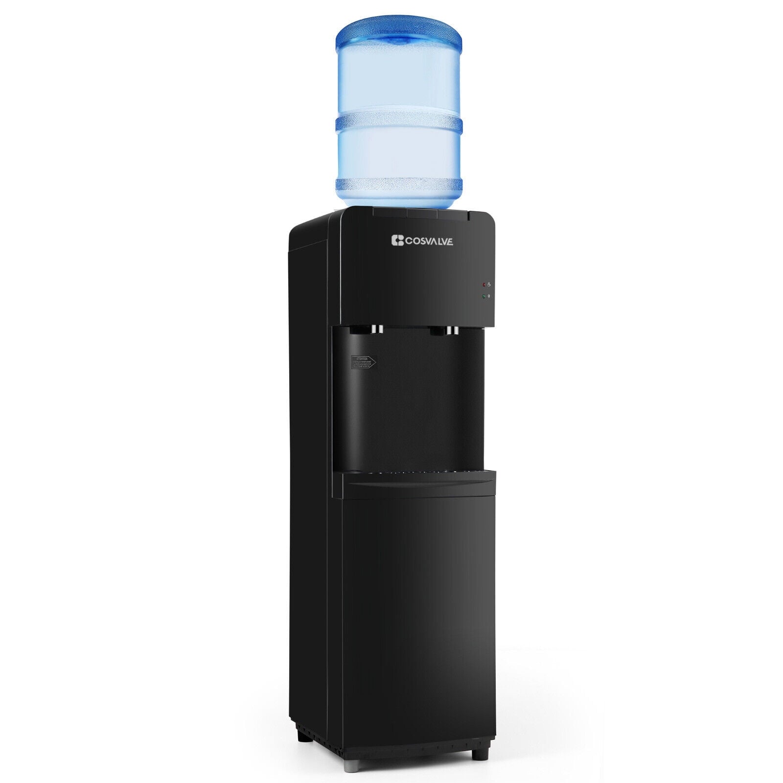 - COMPRESSOR REFRIGERATION – Equipped with a high-quality and energy-efficient compressor, this top loading water dispenser fits for 3 to 5 gallon water bottles and provides access to ice-cold or piping hot water in an instant with push button controls.
