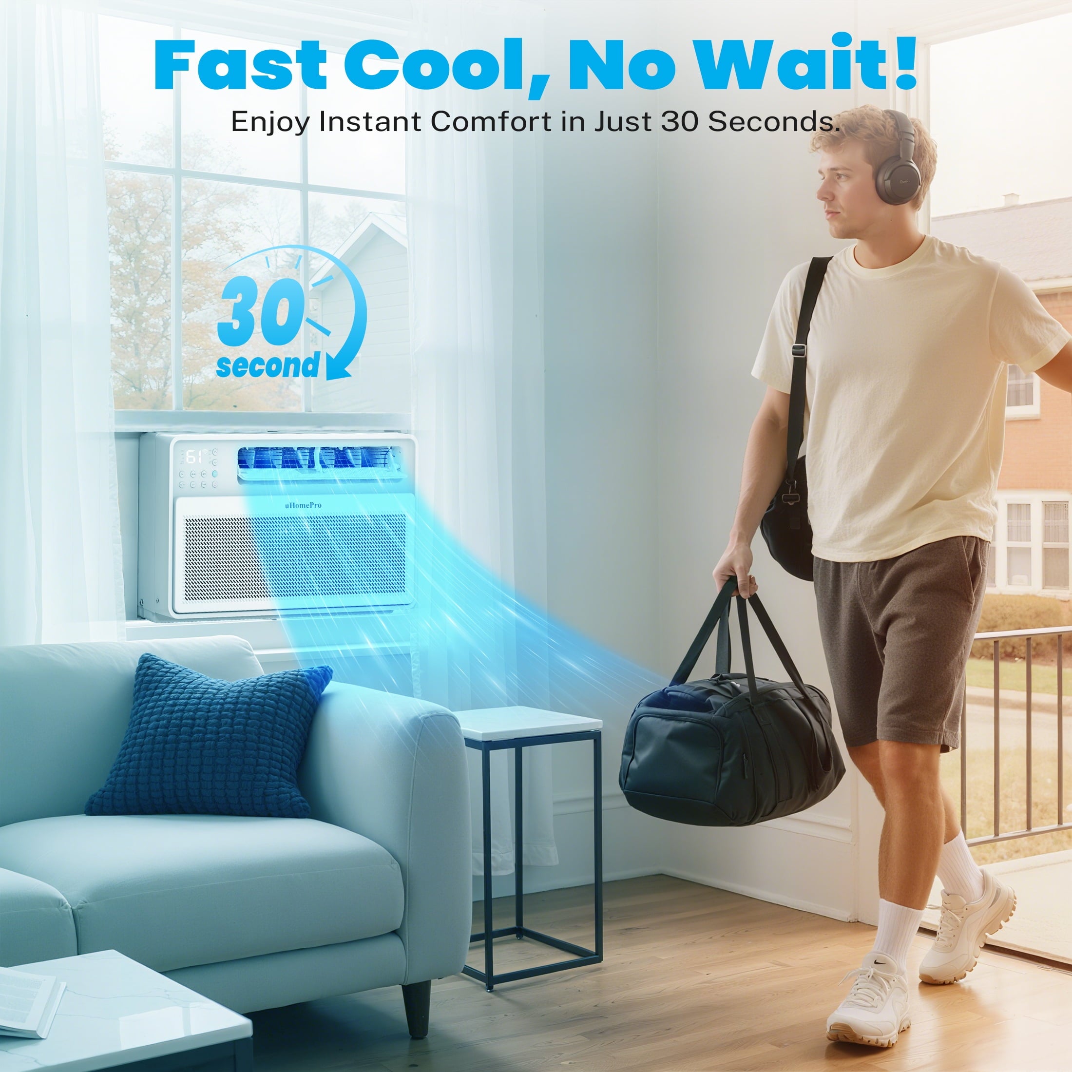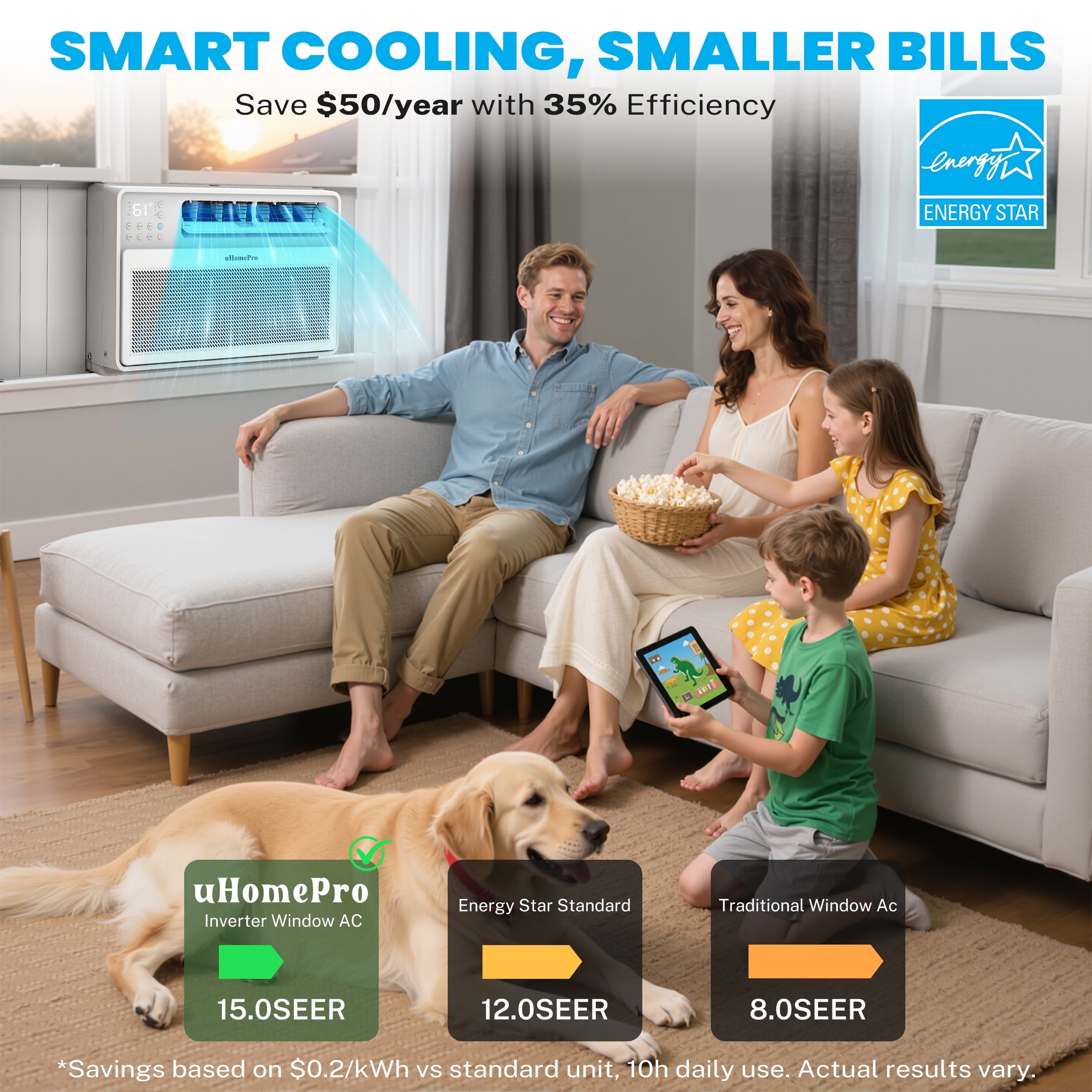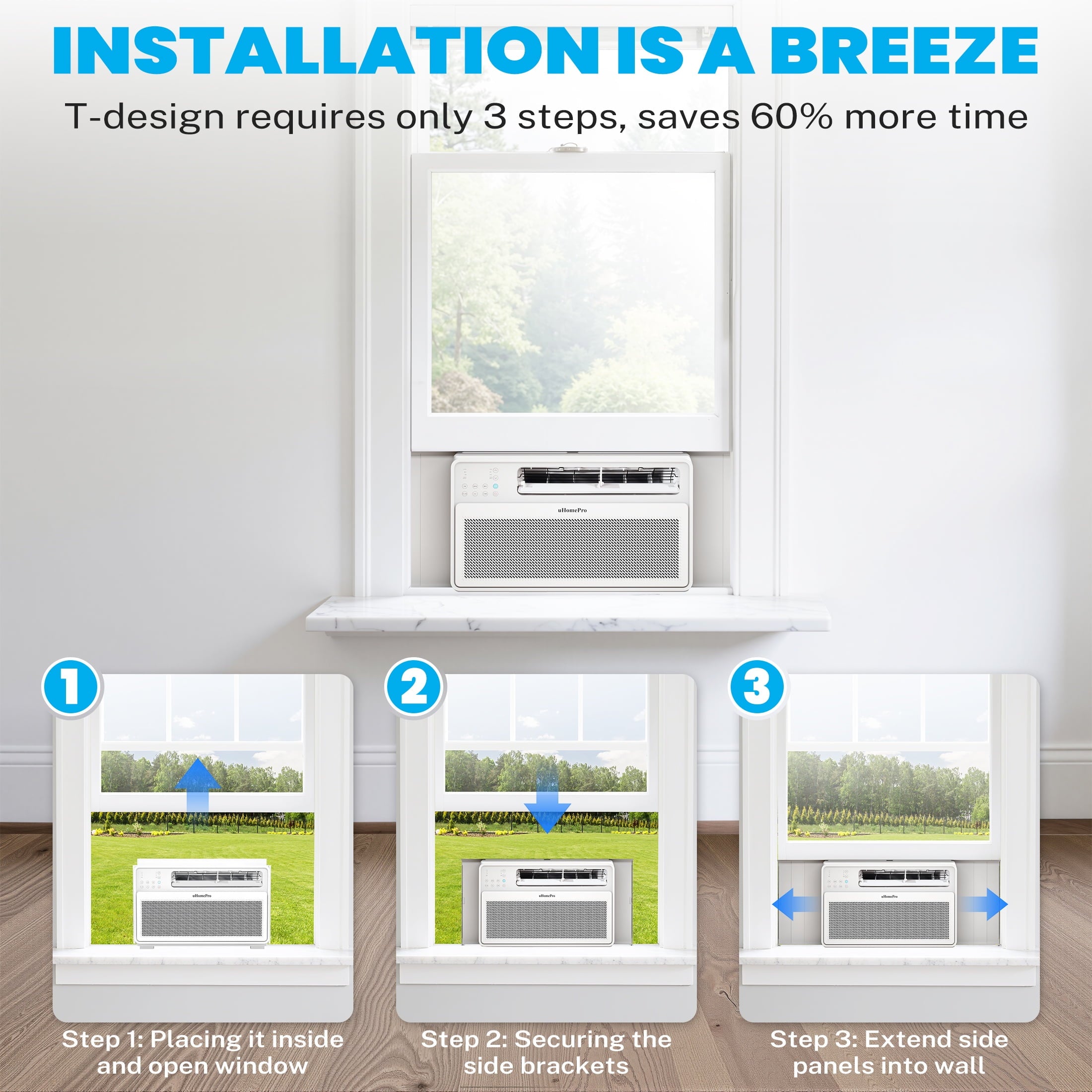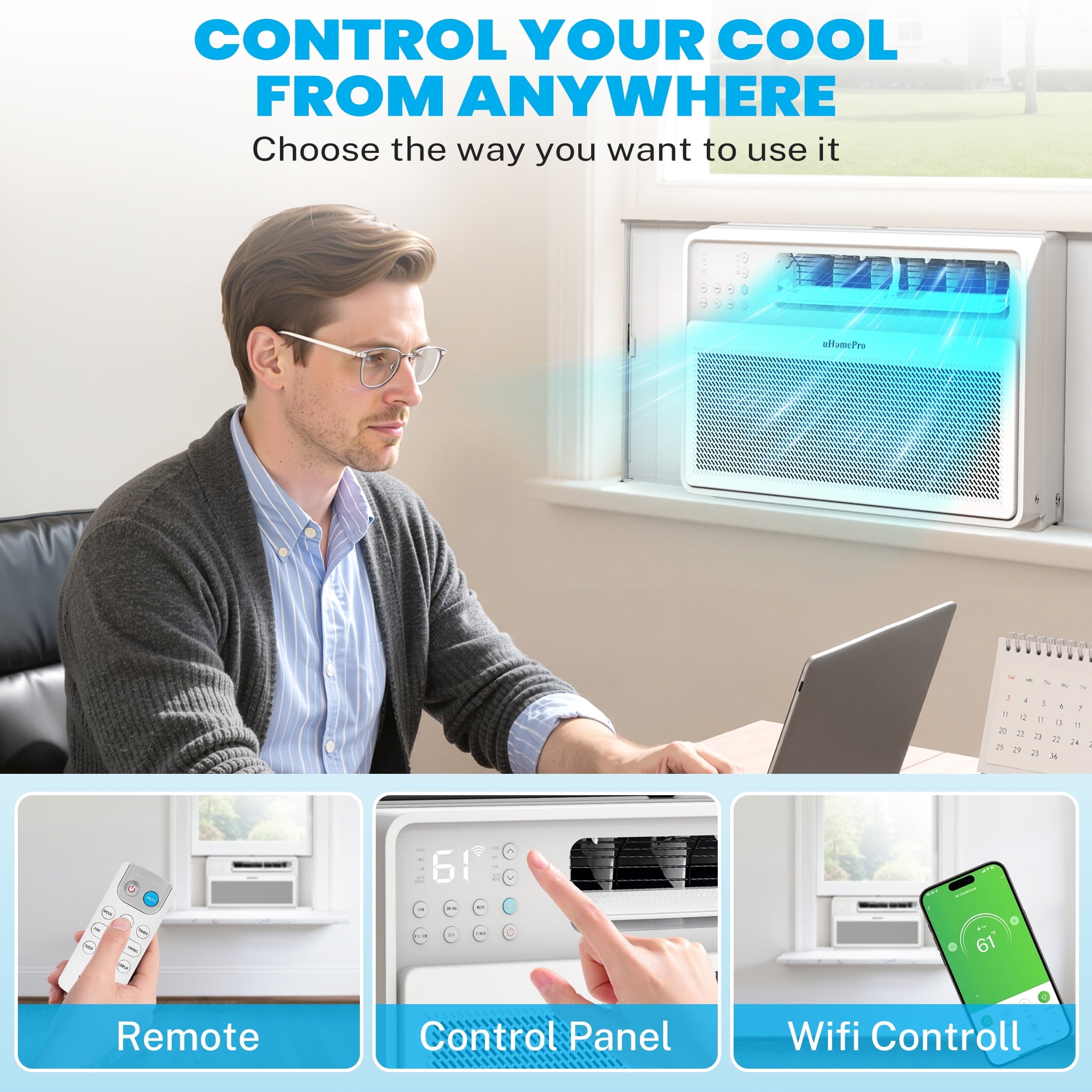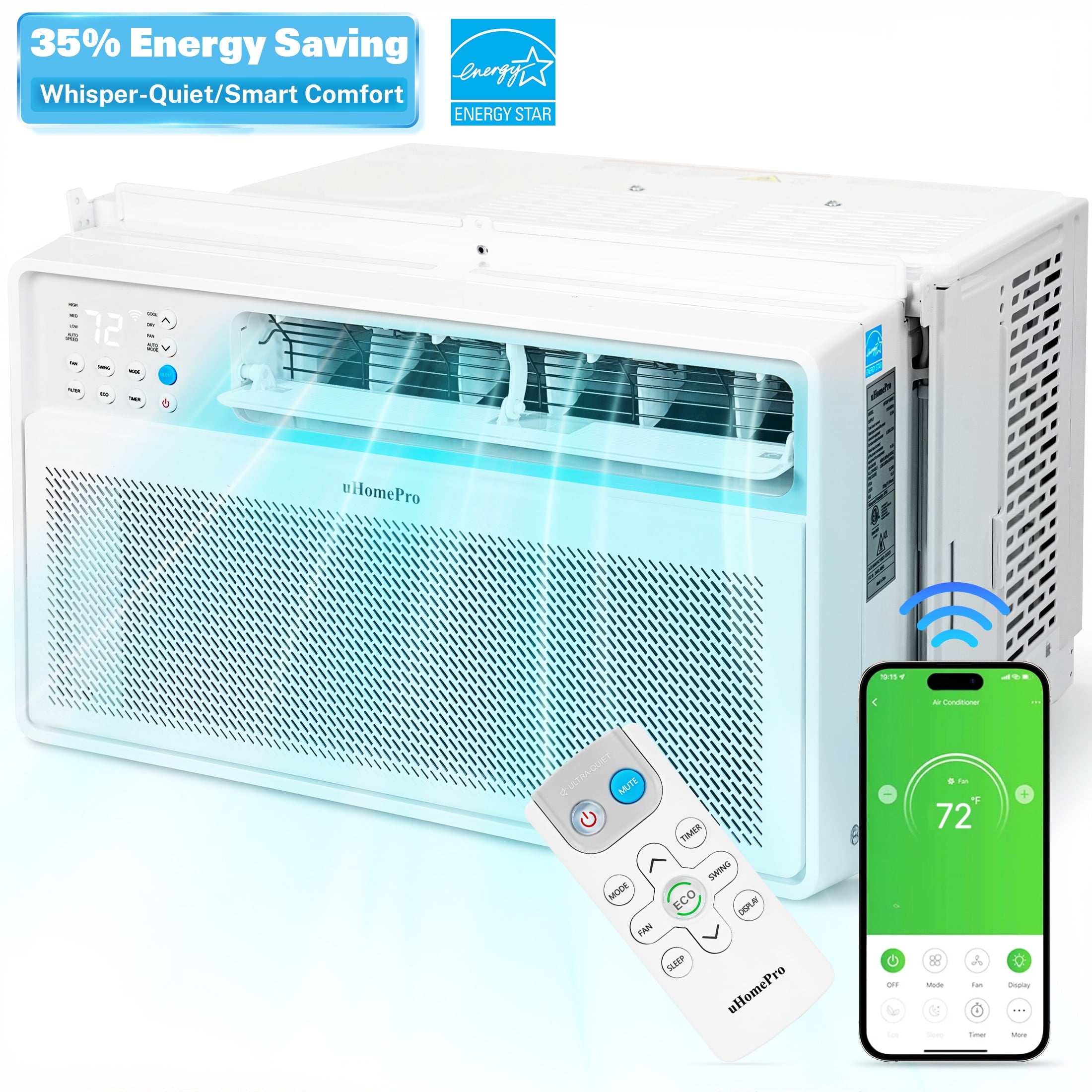The uHomePro 8000 BTU smart inverter window air conditioner is your ideal indoor air conditioning choice. The window AC unit has multiple modes: cooling, drying, fan, Auto, ECO & sleep mode. Whether it’s a standalone apartment, bedroom, kitchen, dormitory, or a living room of about 300-350 square feet, you can get faster and more efficient air cooling. Advanced variable frequency technology can eliminate the waste operation of 8000 BTU air conditioners by precisely controlling the speed of the compressor & motor to keep the room at the desired temperature, saving at least 35% of electricity compared to others! In addition to panel control, this window air conditioner can also be remotely controlled. Choose this 8000 BTU window air conditioner to bring a cool life to the hot Summer!!
