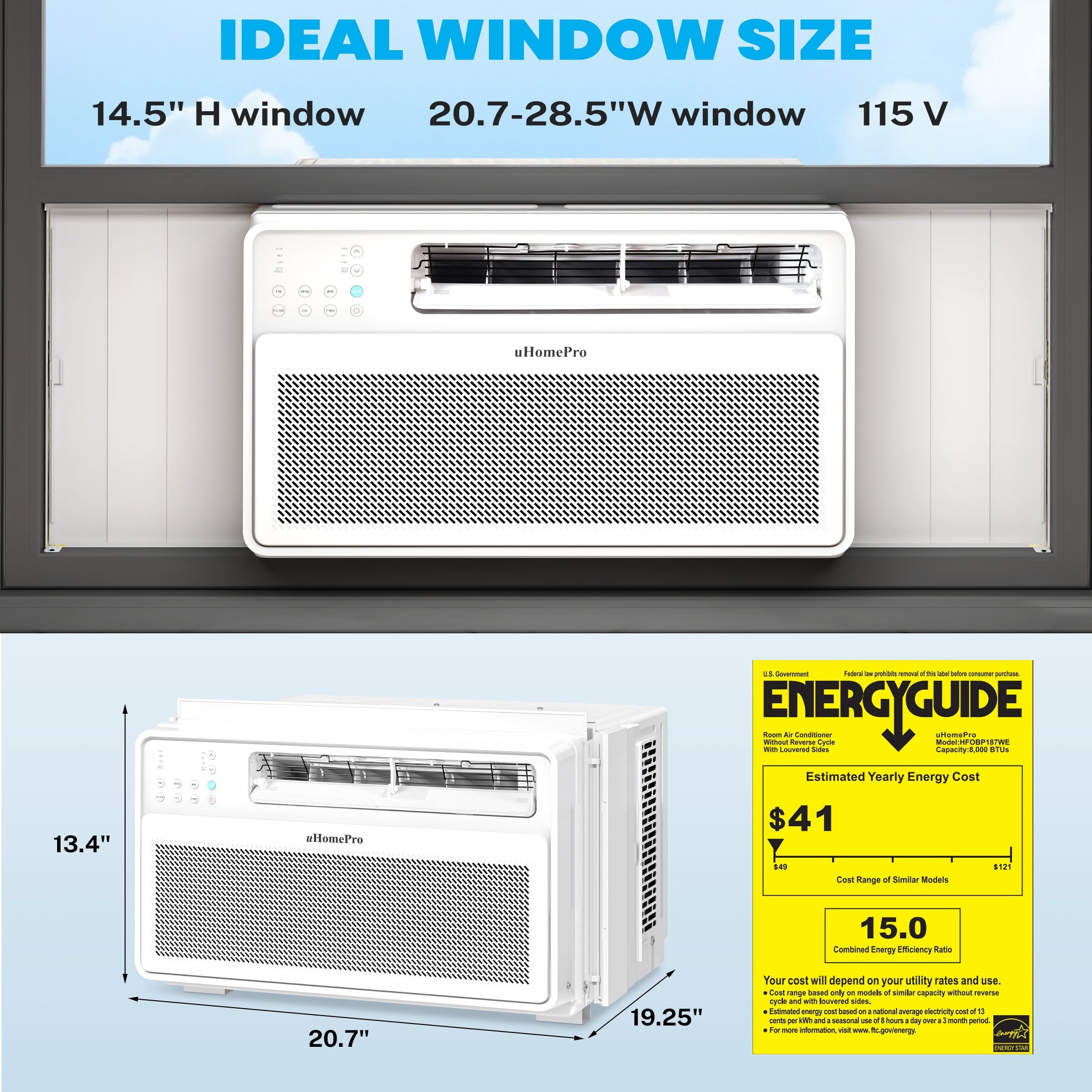 - AC Dimension: 20.7″ x 19.25″ x 13.4″ (L x W x H)