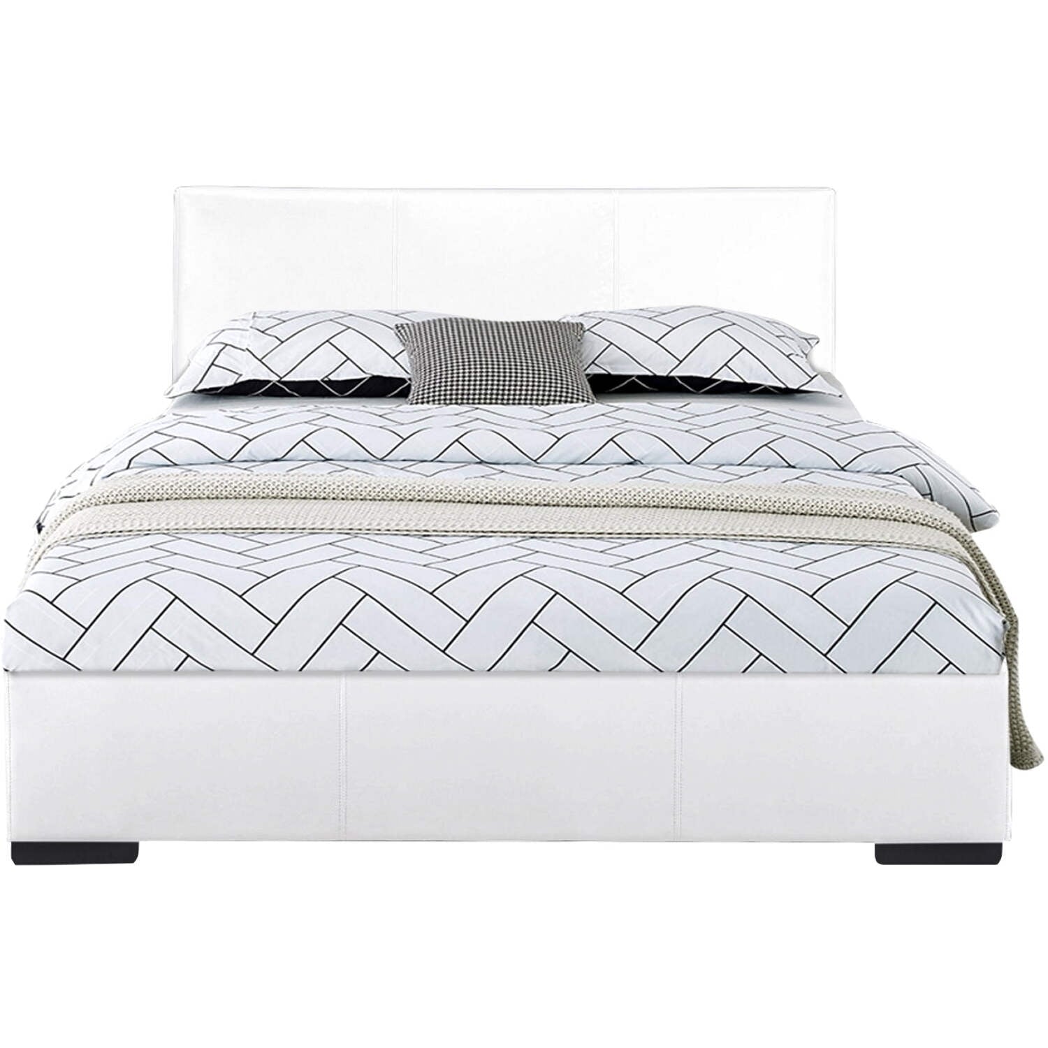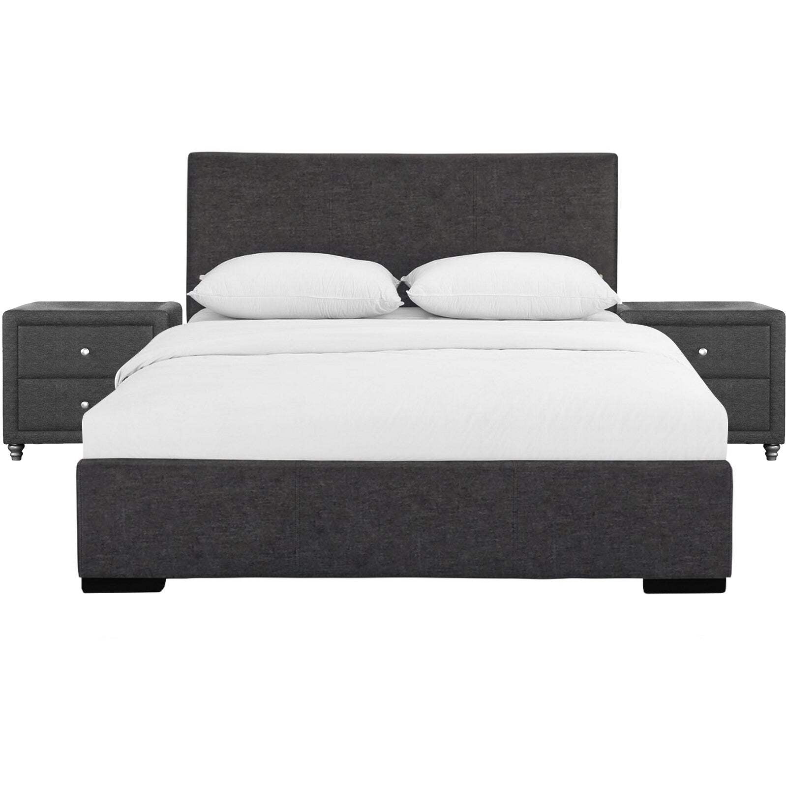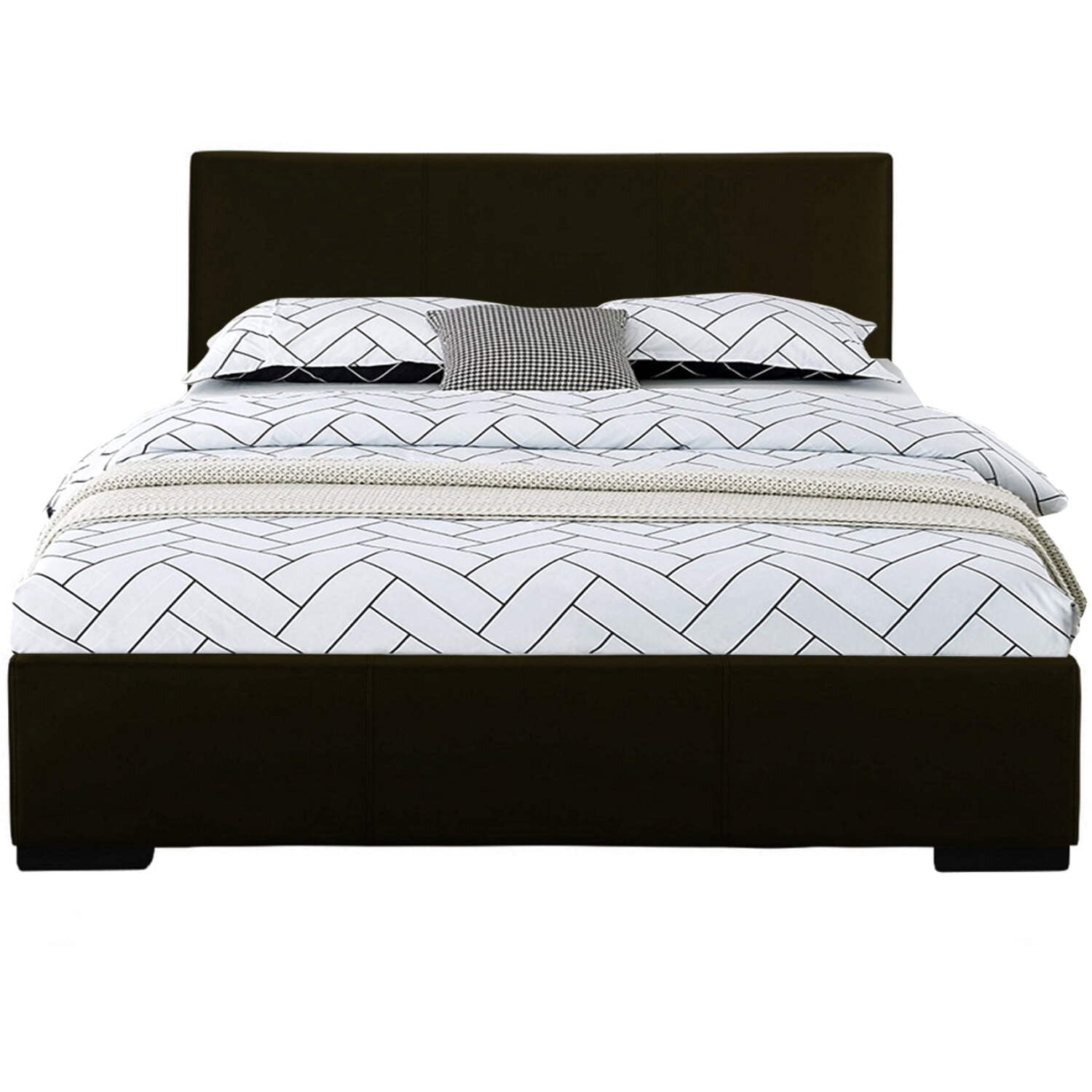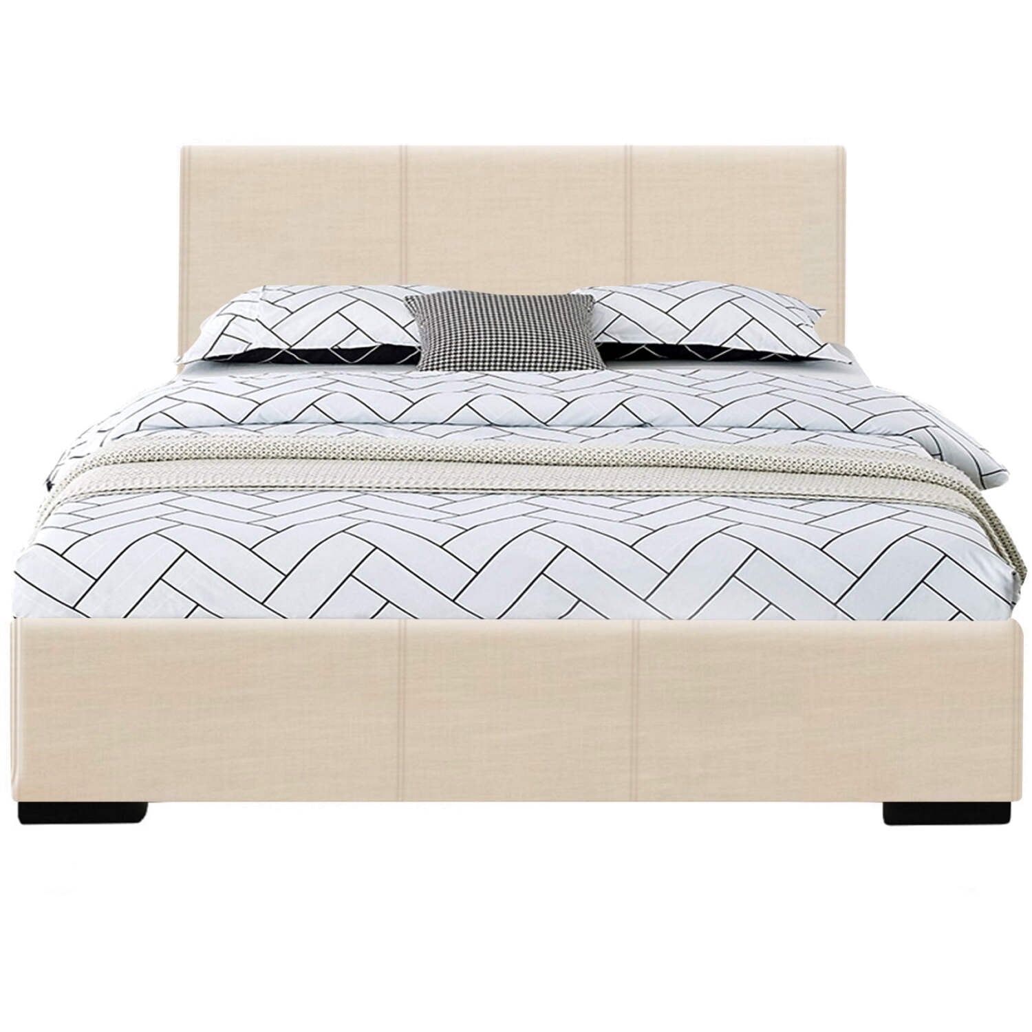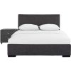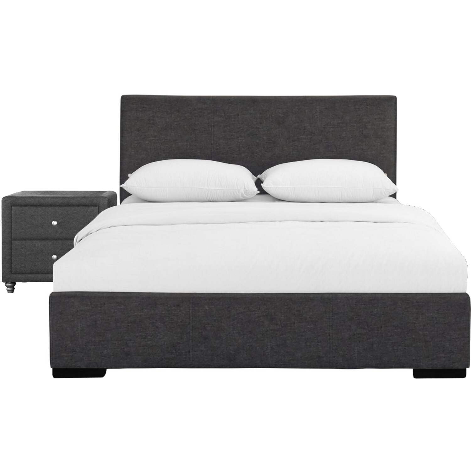 102133 Abbey Platform Bed, Black, King The Abbey Upholstered Bed is plush and soft and provides a modern look to any bedroom. The low profile adds extra flexibility to the user’s mattress height preference. A box spring or additional foundation is not needed but can be used to adjust height further.