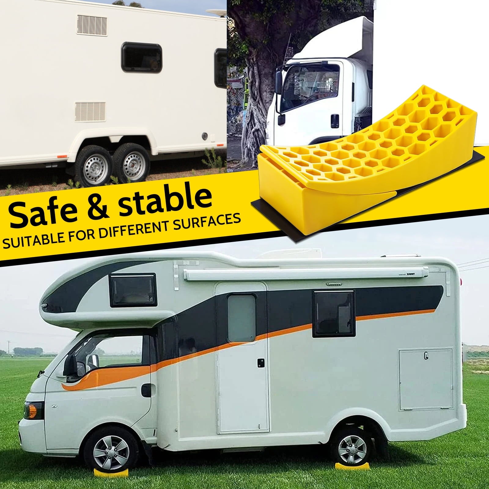 Take your RV adventures to the next level with the Aiqeek Leveling Blocks Kit, perfectly tailored for your camper and RV. This kit includes two robust leveling blocks, each with a capacity of up to 35,000 lbs, ensuring your vehicle’s stability on any terrain. Measuring 15.6 inches by 6 inches by 4.6 inches, these blocks offer an adjustable range from 1/2 to 4 inches for precise leveling. The set also features rubber mats for added grip and wheel chocks for security. For your convenience, everything comes in a carry bag, making the Aiqeek Leveling Blocks Kit an essential companion for every road trip.