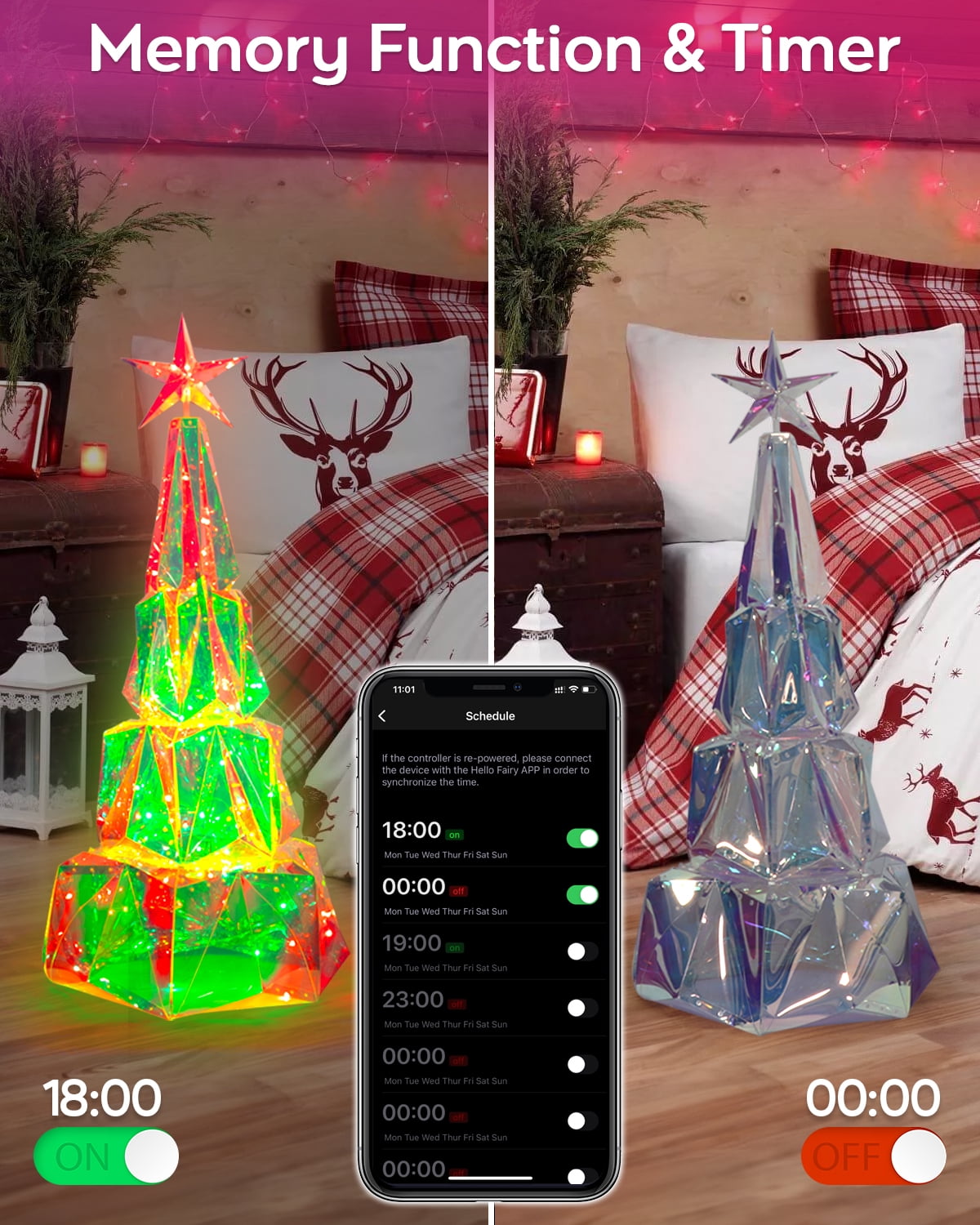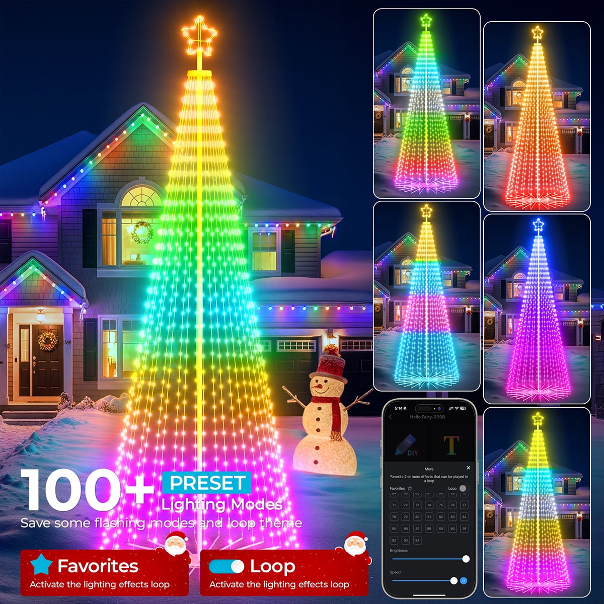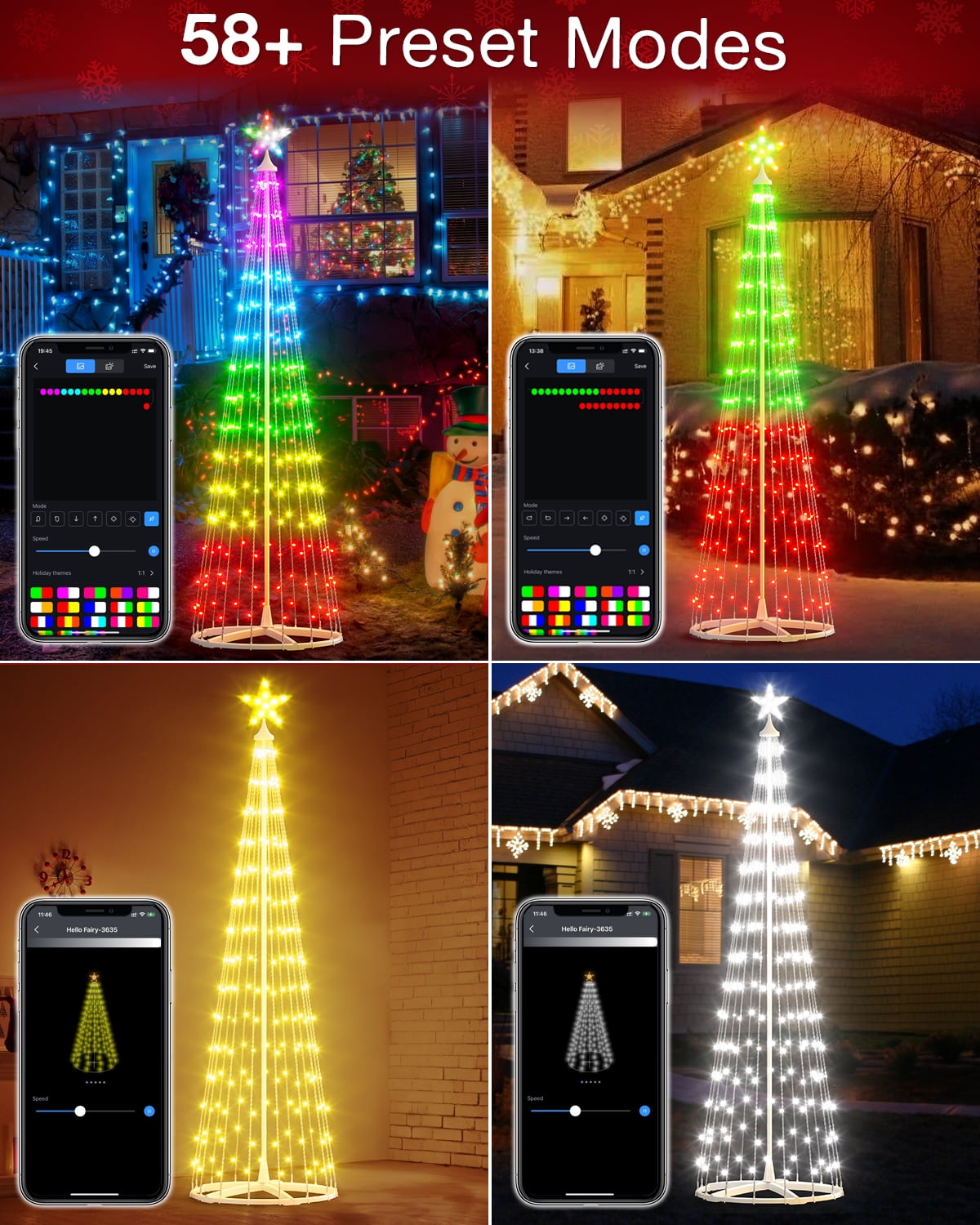 - [🎄 2025 Upgrade – Dual Control Options]– Control your LED cone tree via the “Hello Fairy” Bluetooth app or the included remote. Instantly switch between colors, effects, and scene modes for Halloween, Thanksgiving, Christmas, New Year, birthdays, weddings, and more. Your stunning display will be the talk of the neighborhood.