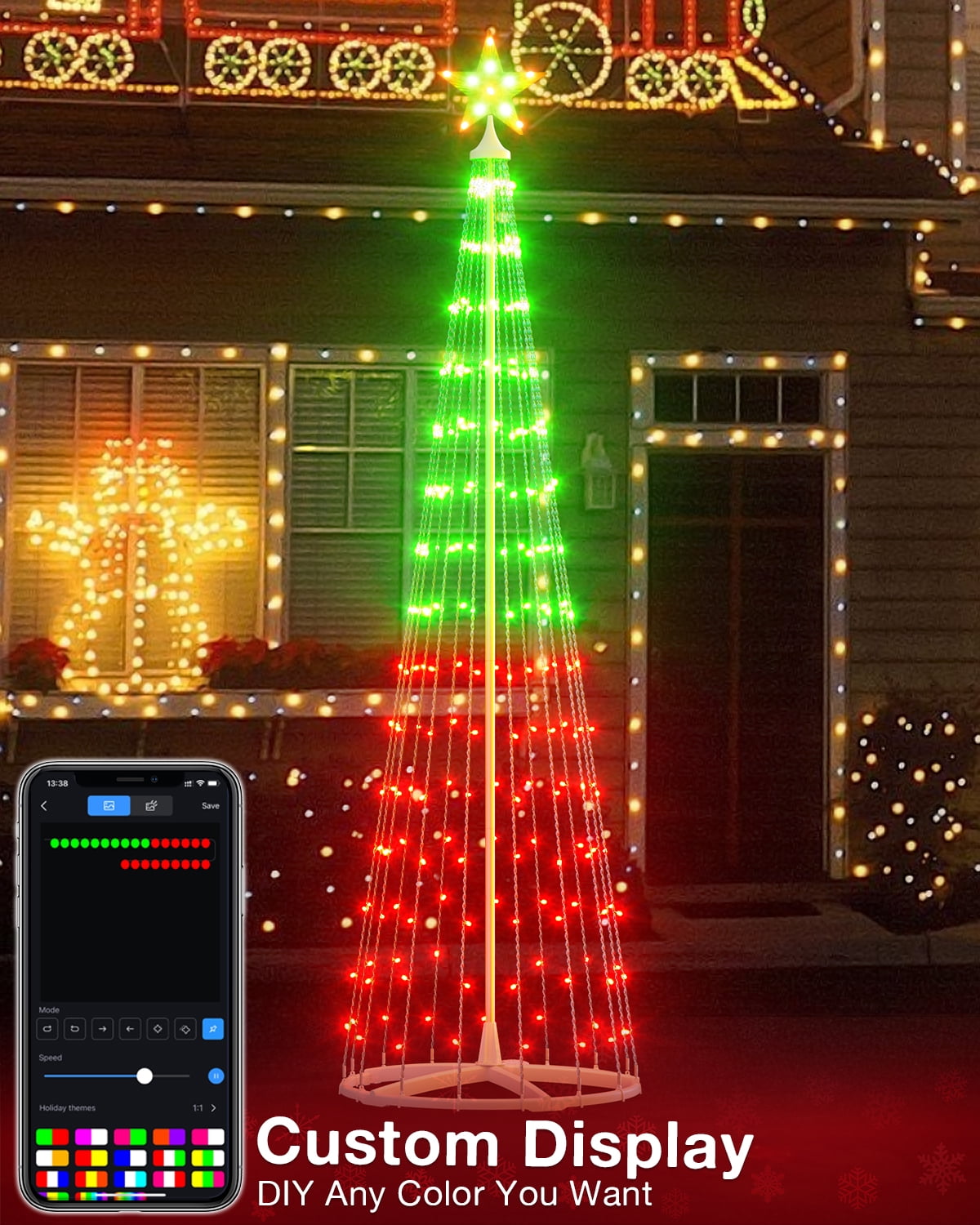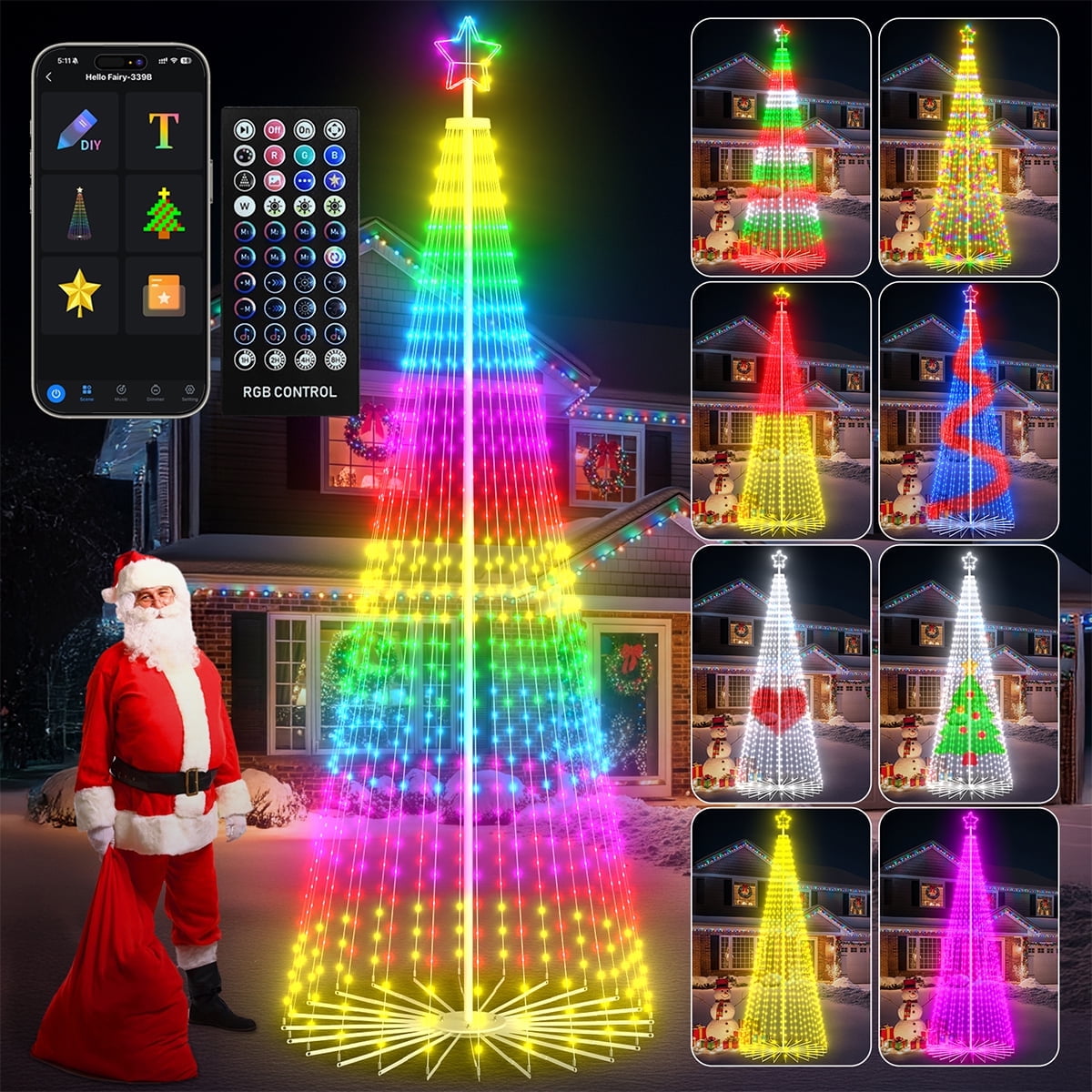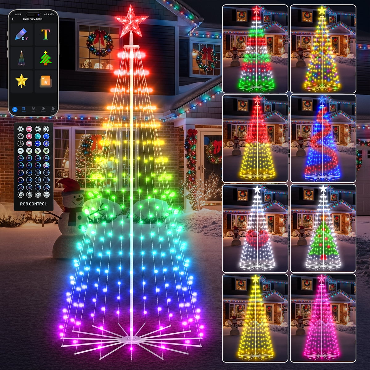 Transform Your Holidays with the 2025 Upgraded Avatar Controls LED Cone Tree Light.Brighten every celebration with the Avatar Controls Smart Christmas Cone Tree Light. Featuring 16 million vivid colors, 39 pre-set scene modes, and 4 dynamic music sync options, this upgraded LED cone tree delivers show-stopping holiday magic indoors or outdoors. Effortlessly control your lights via Bluetooth “Hello Fairy” app or included remote — adjust brightness, switch colors, change effects, and even sync to music with its built-in high-sensitivity microphone. Ideal for Christmas, New Year, weddings, birthdays, or year-round garden décor, this collapsible cone tree assembles in minutes, stores easily, and brings vibrant festive cheer to any space.