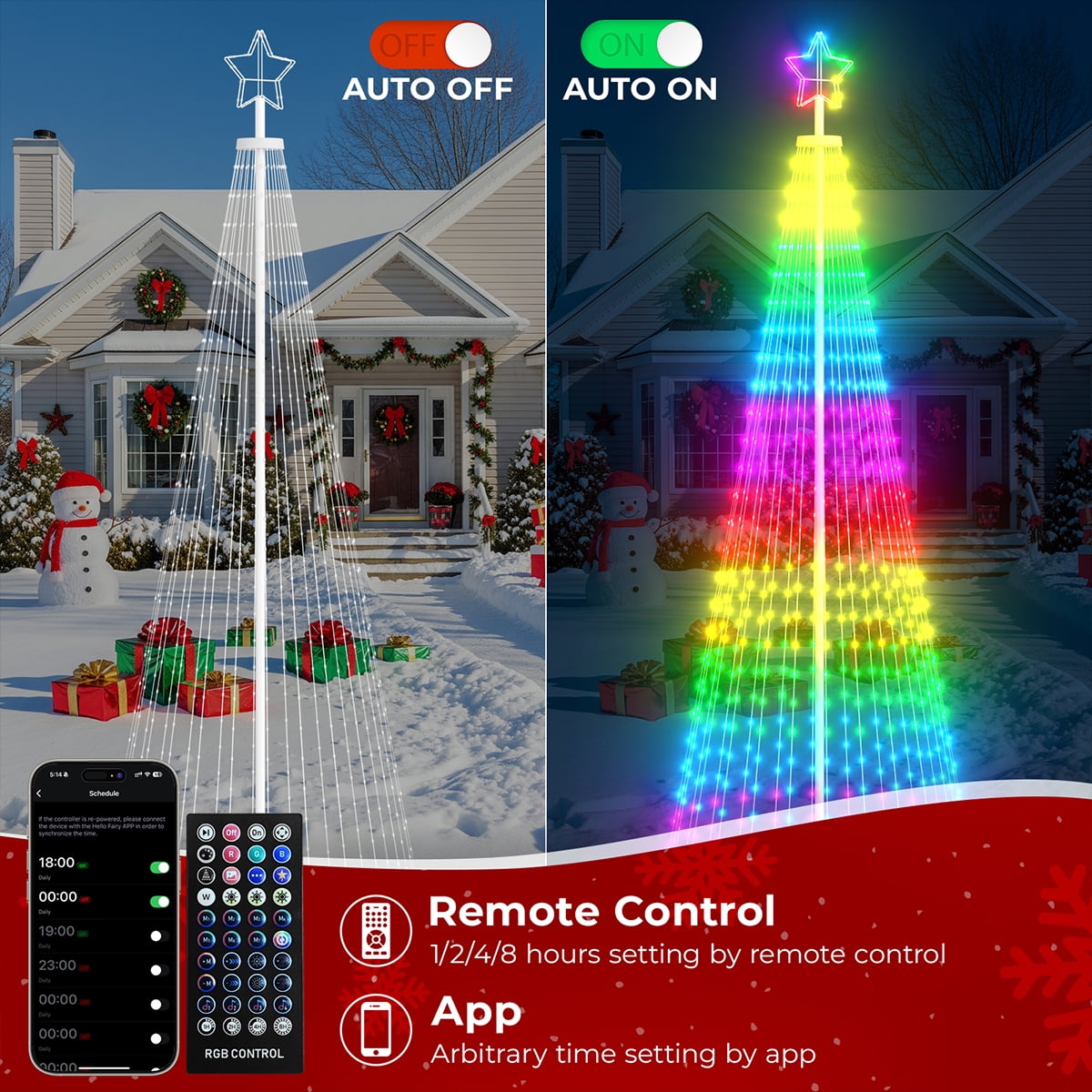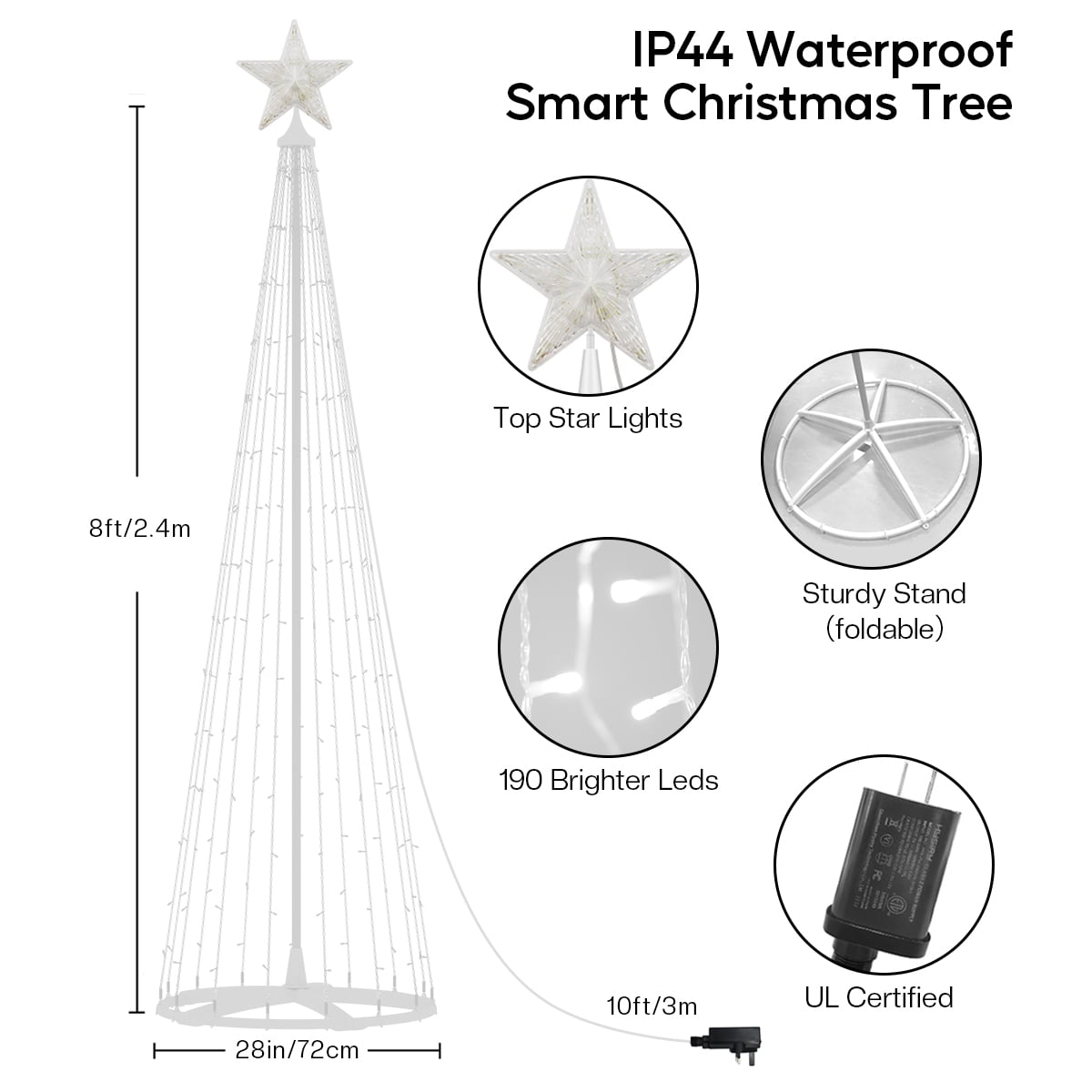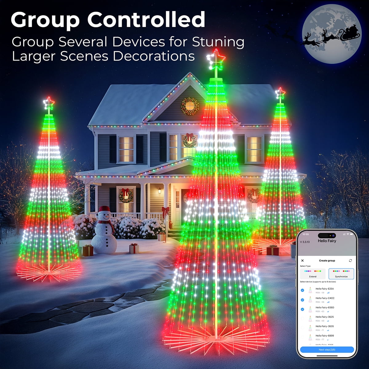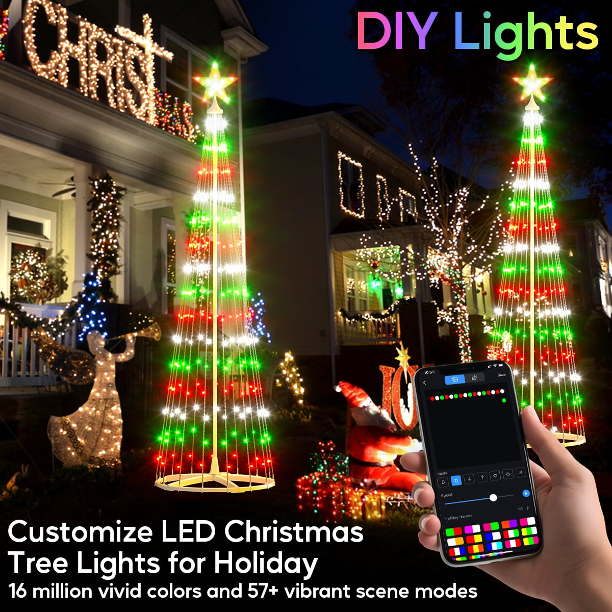 Transform Your Holidays with the 2025 Upgraded Avatar Controls LED Cone Tree Light.Brighten every celebration with the Avatar Controls Smart Christmas Cone Tree Light. Featuring 16 million vivid colors, 39 pre-set scene modes, and 4 dynamic music sync options, this upgraded LED cone tree delivers show-stopping holiday magic indoors or outdoors. Effortlessly control your lights via Bluetooth “Hello Fairy” app or included remote — adjust brightness, switch colors, change effects, and even sync to music with its built-in high-sensitivity microphone. Ideal for Christmas, New Year, weddings, birthdays, or year-round garden décor, this collapsible cone tree assembles in minutes, stores easily, and brings vibrant festive cheer to any space.