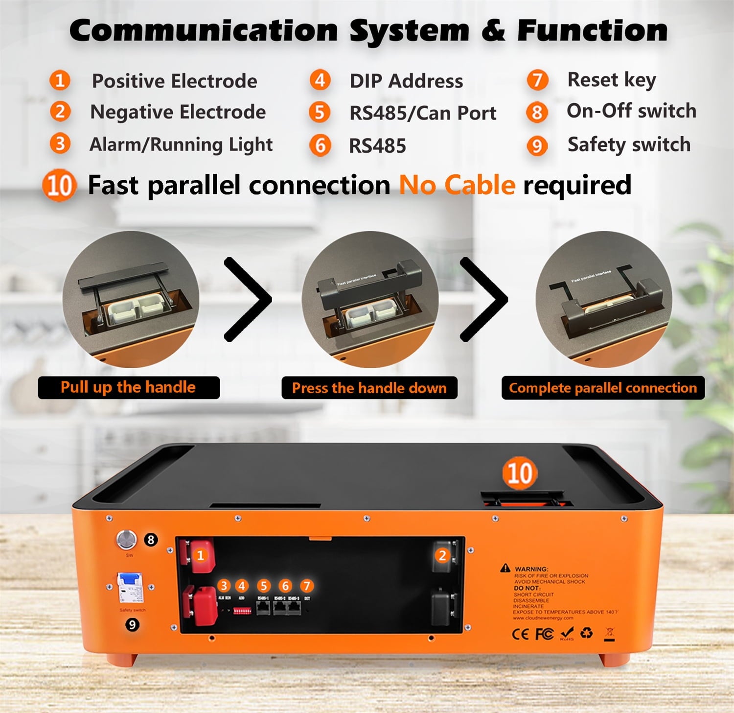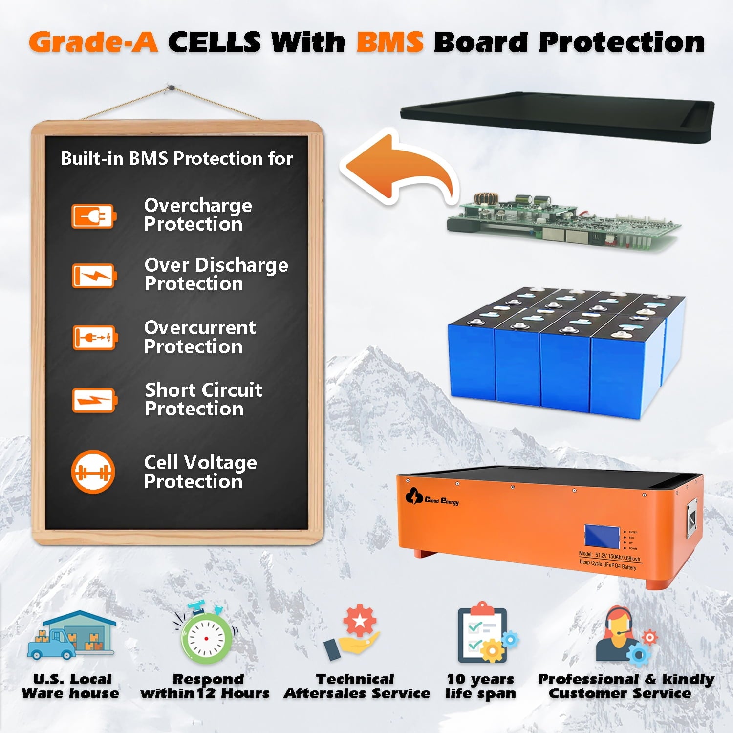 - 【Built-in BMS】Cloud energy LiFePO4 battery has a built-in BMS High temperature resistance can reach 75℃,The built-in high temperature cut-off function prevents charging at temperatures above 75℃,Can prevent short circuit, over charge, over discharge, over current.
